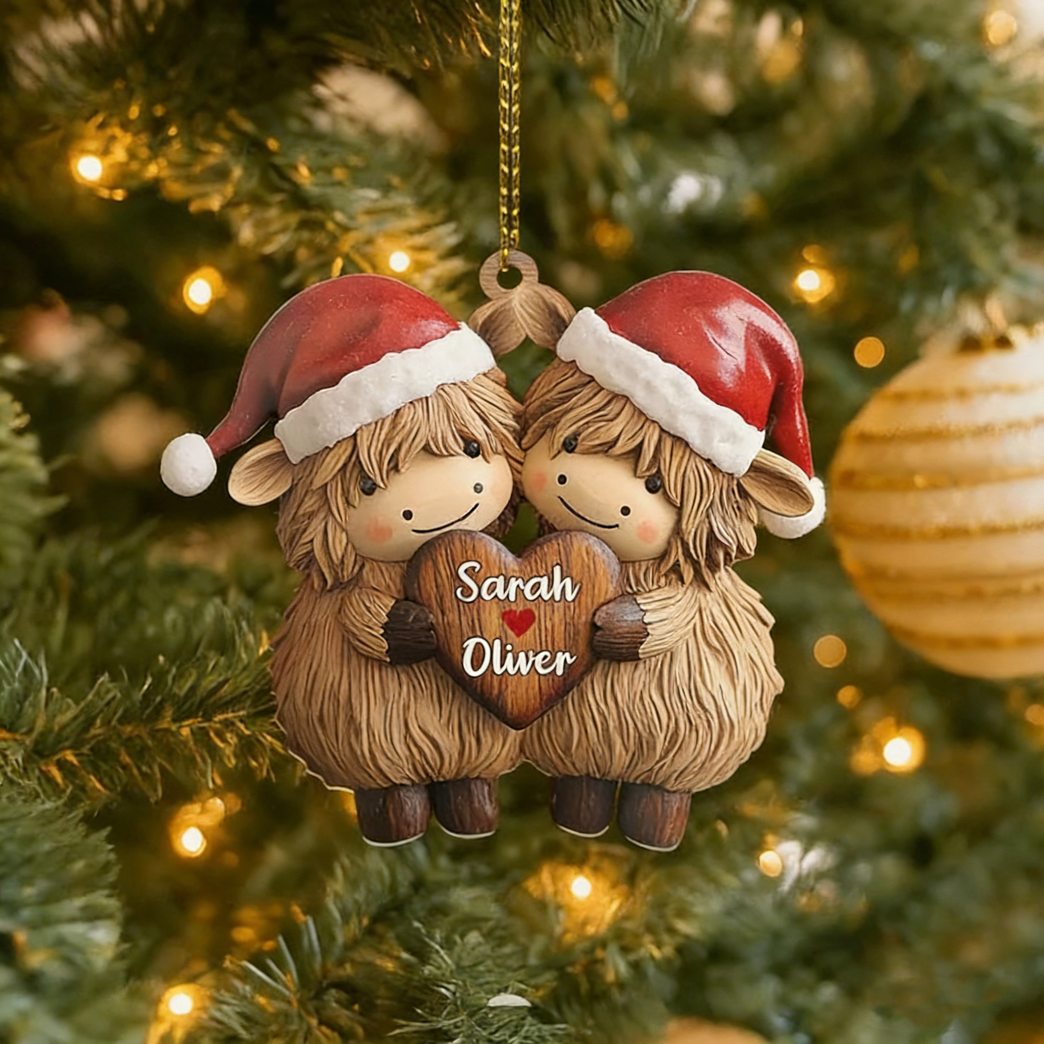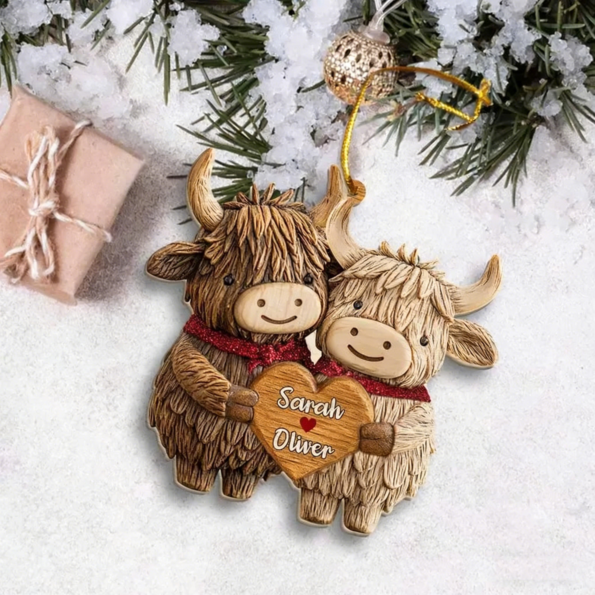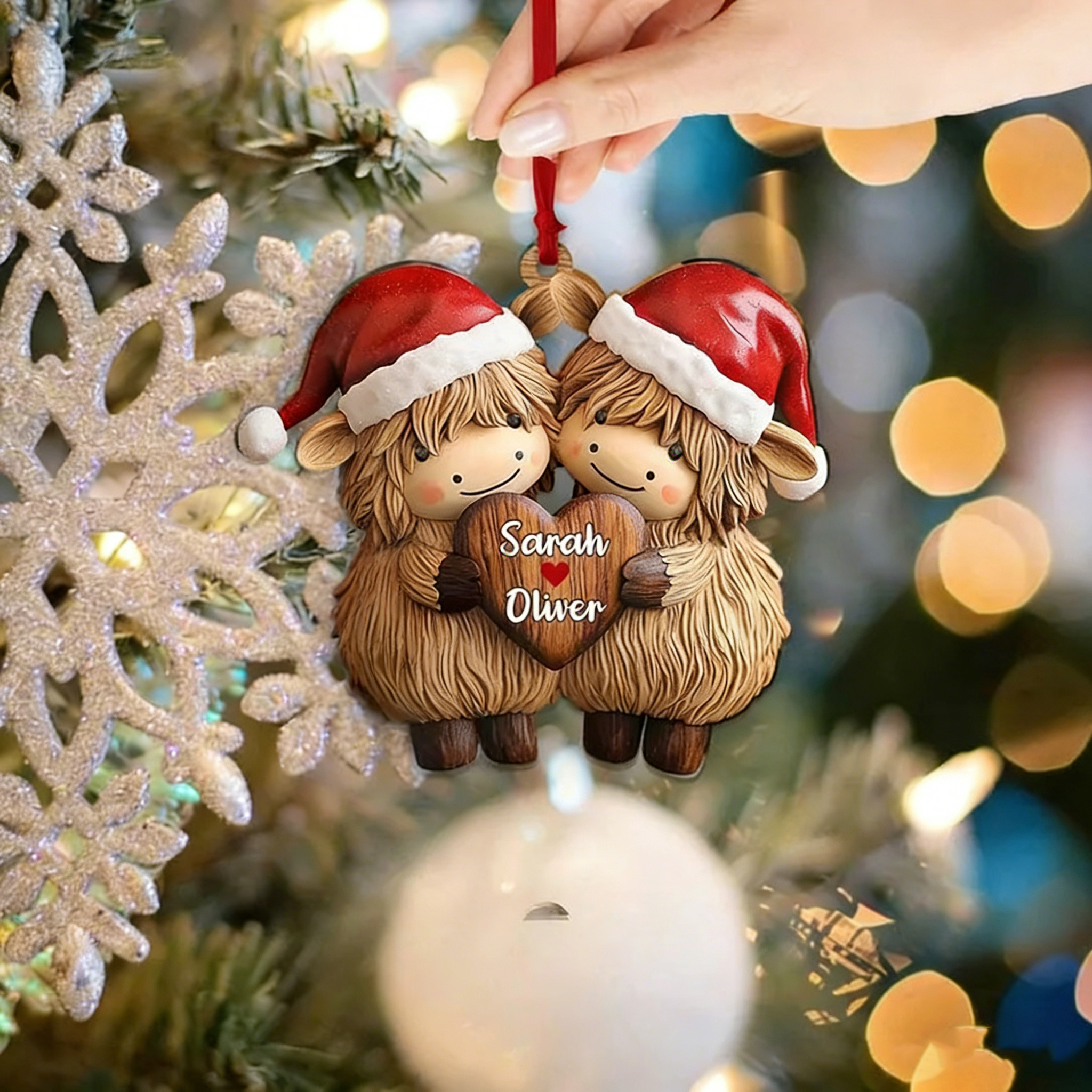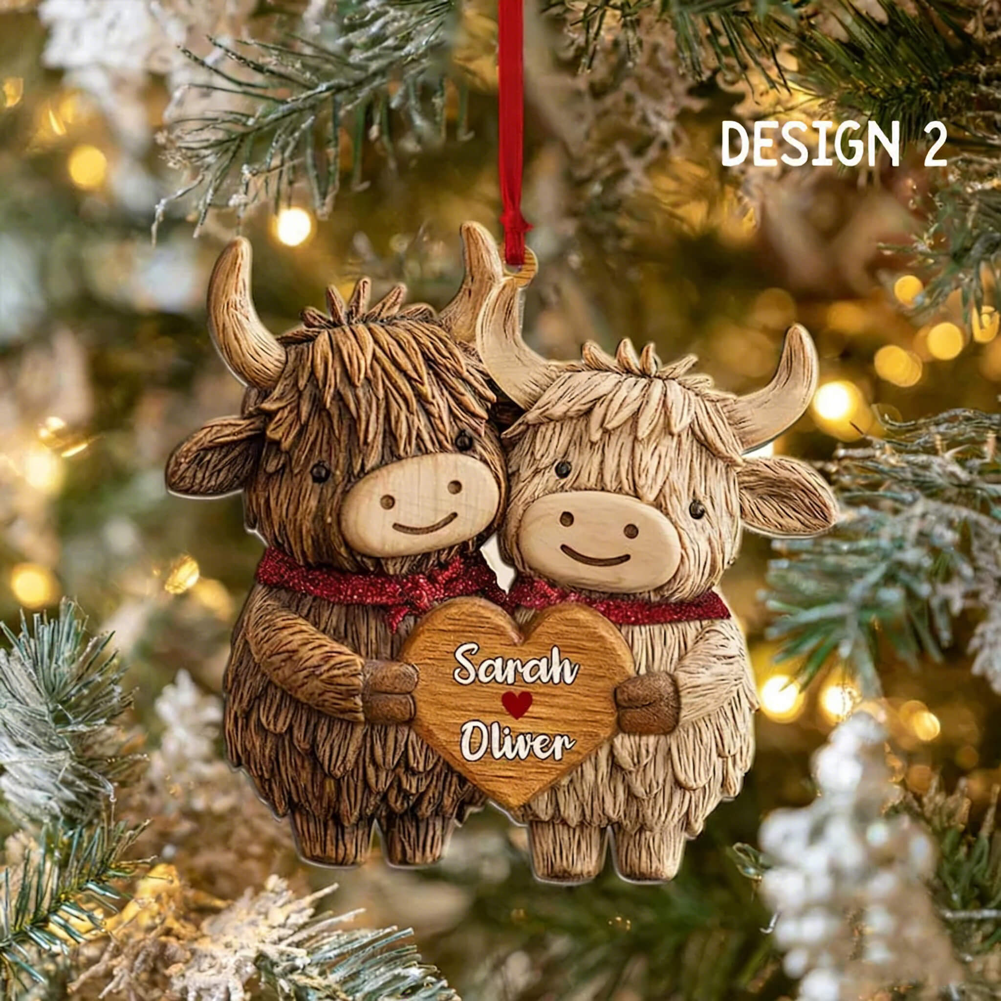 2D Personalized Highland Cow Couple Ornament | Custom Name Christmas Gift for Couple | Cute Farm Animal Ornament | Rustic Love Keepsake 2025
