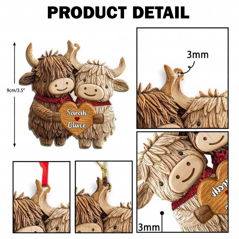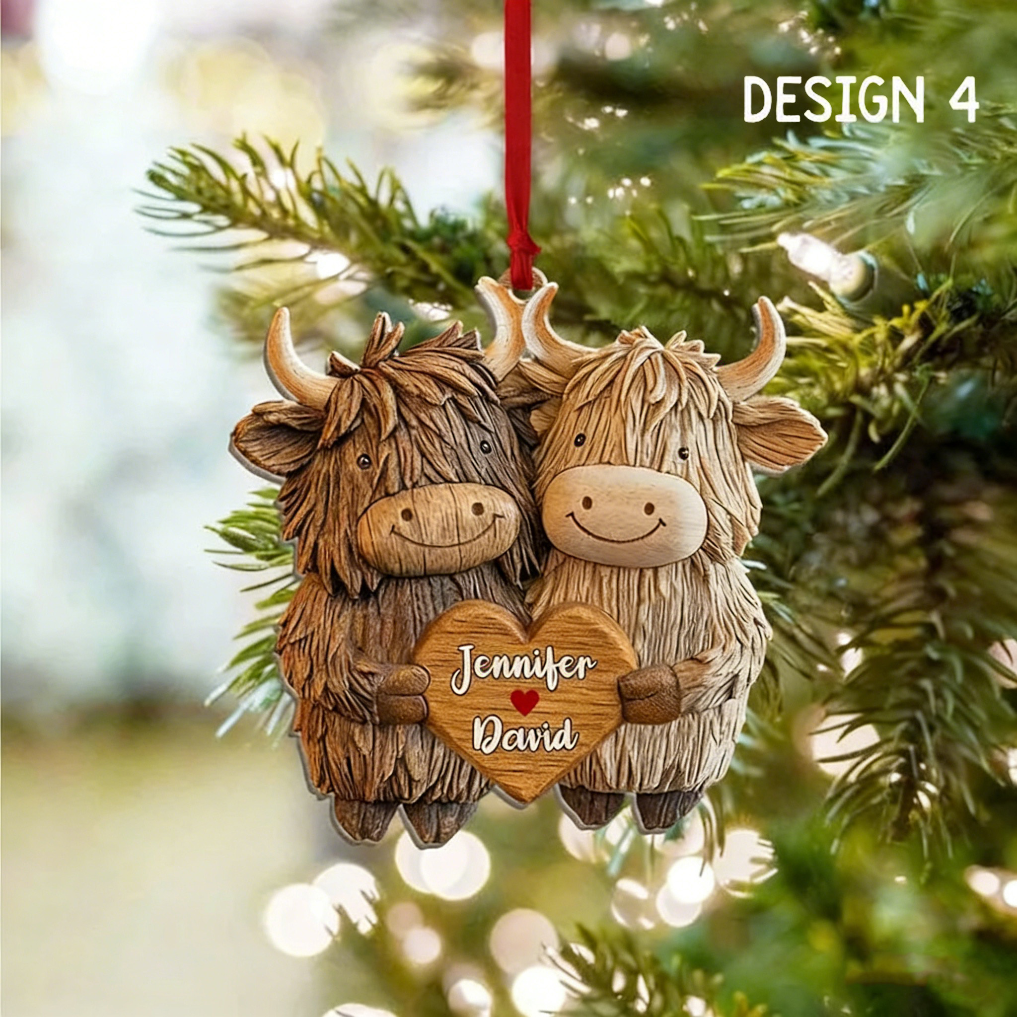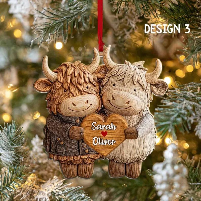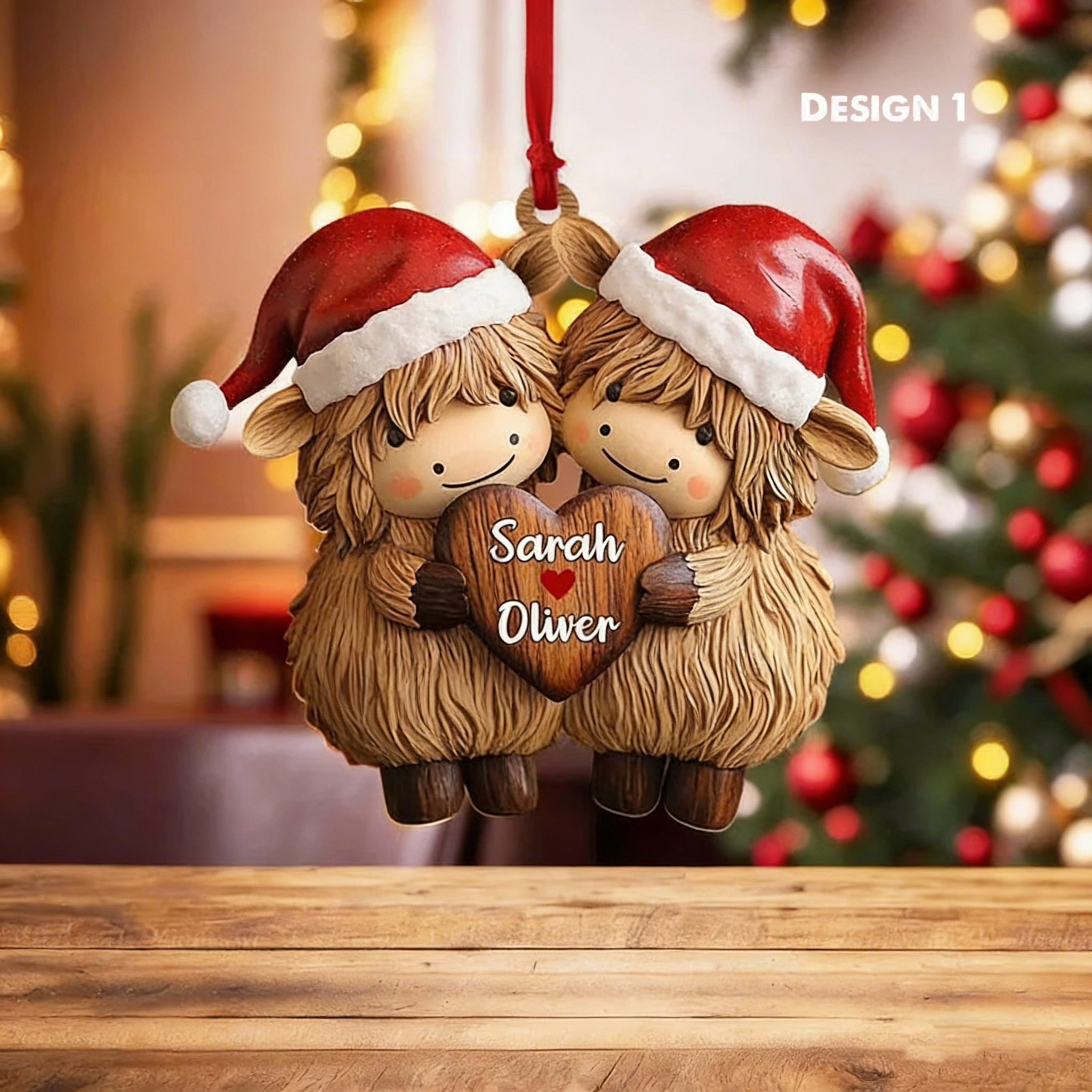 2D Personalized Highland Cow Couple Ornament | Custom Name Christmas Gift for Couple | Cute Farm Animal Ornament | Rustic Love Keepsake 2025
