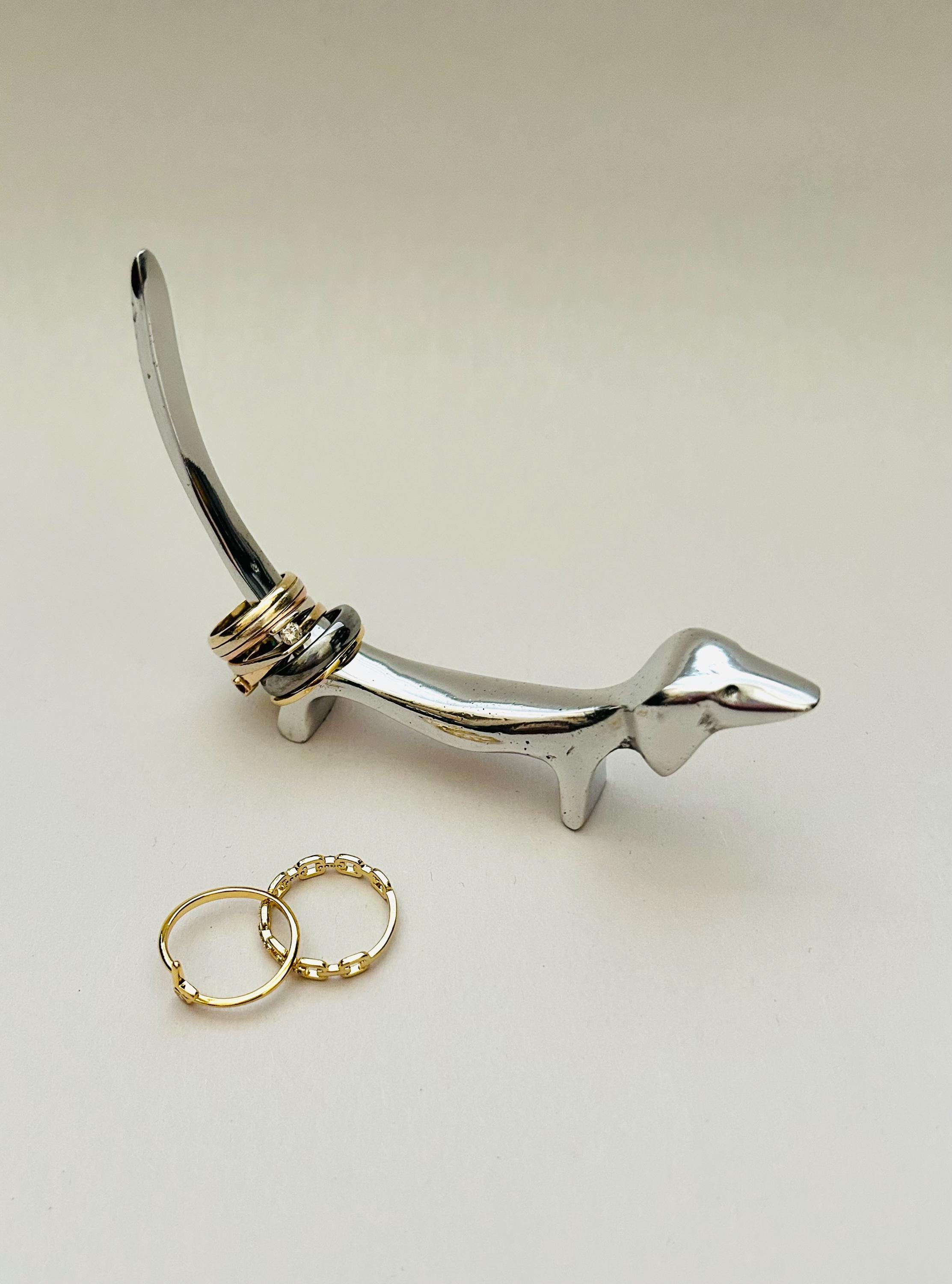 Keep your rings safe and stylish with this adorable dachshund ring holder.
