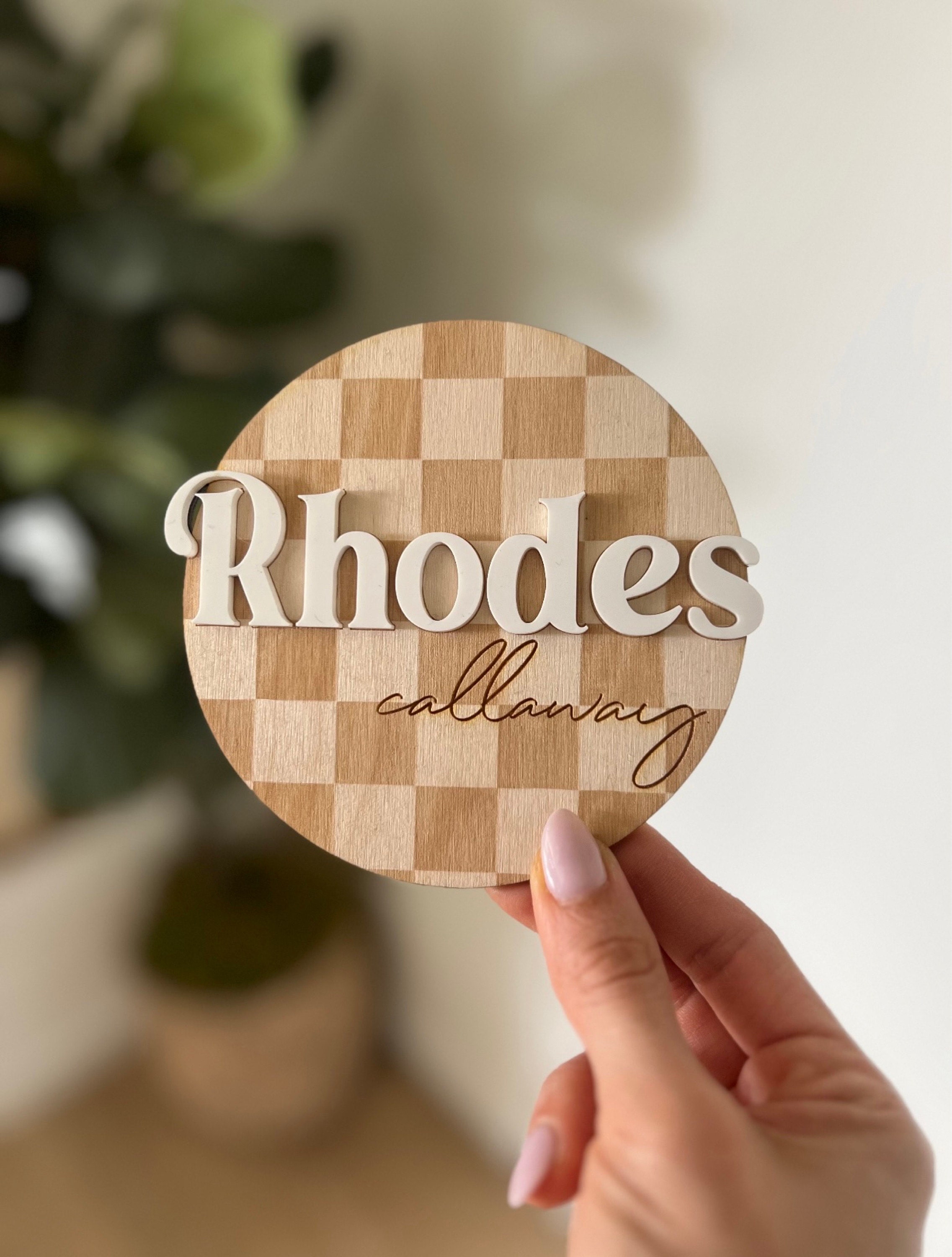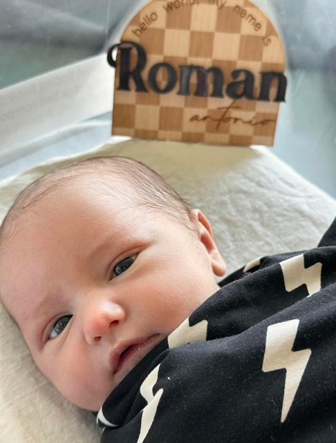 👶 Introducing our Baby Birth Announcement Sign Checkered Birth Sign Arch Wood Name Sign, perfect for capturing and sharing your baby's special moment!
