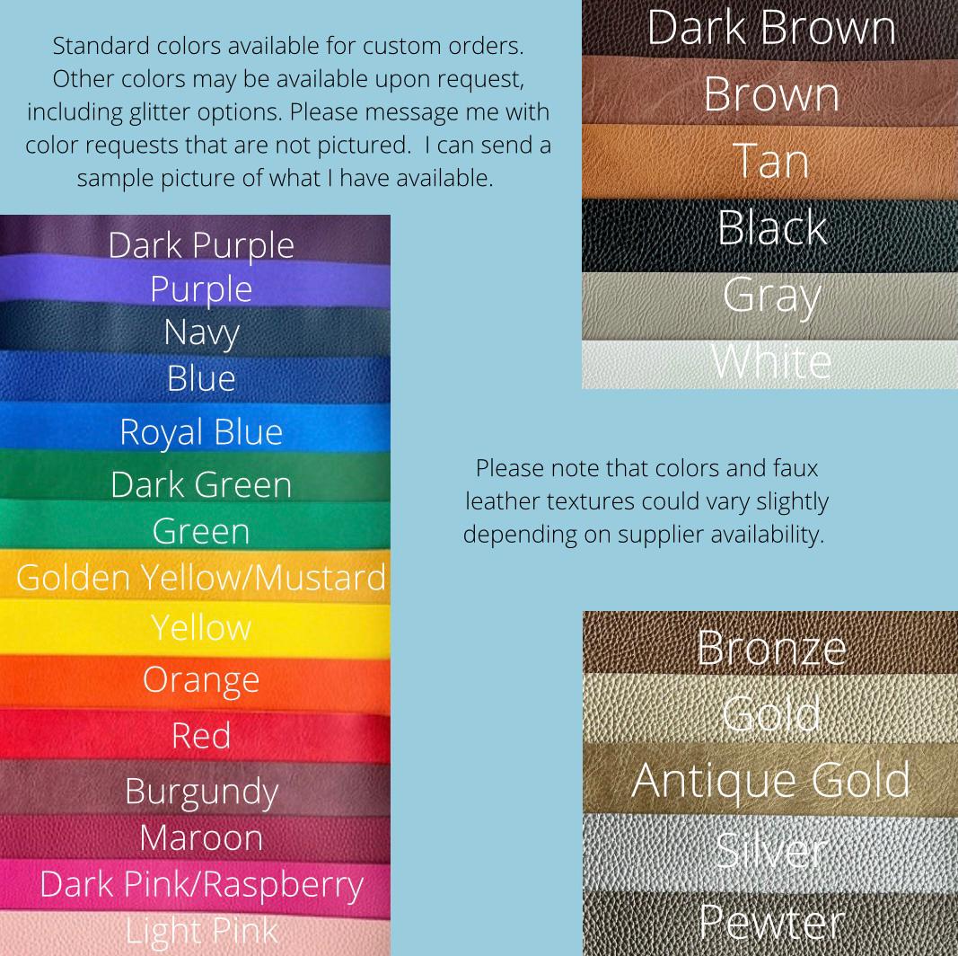- Faux leather is backed by vinyl for a more finished look