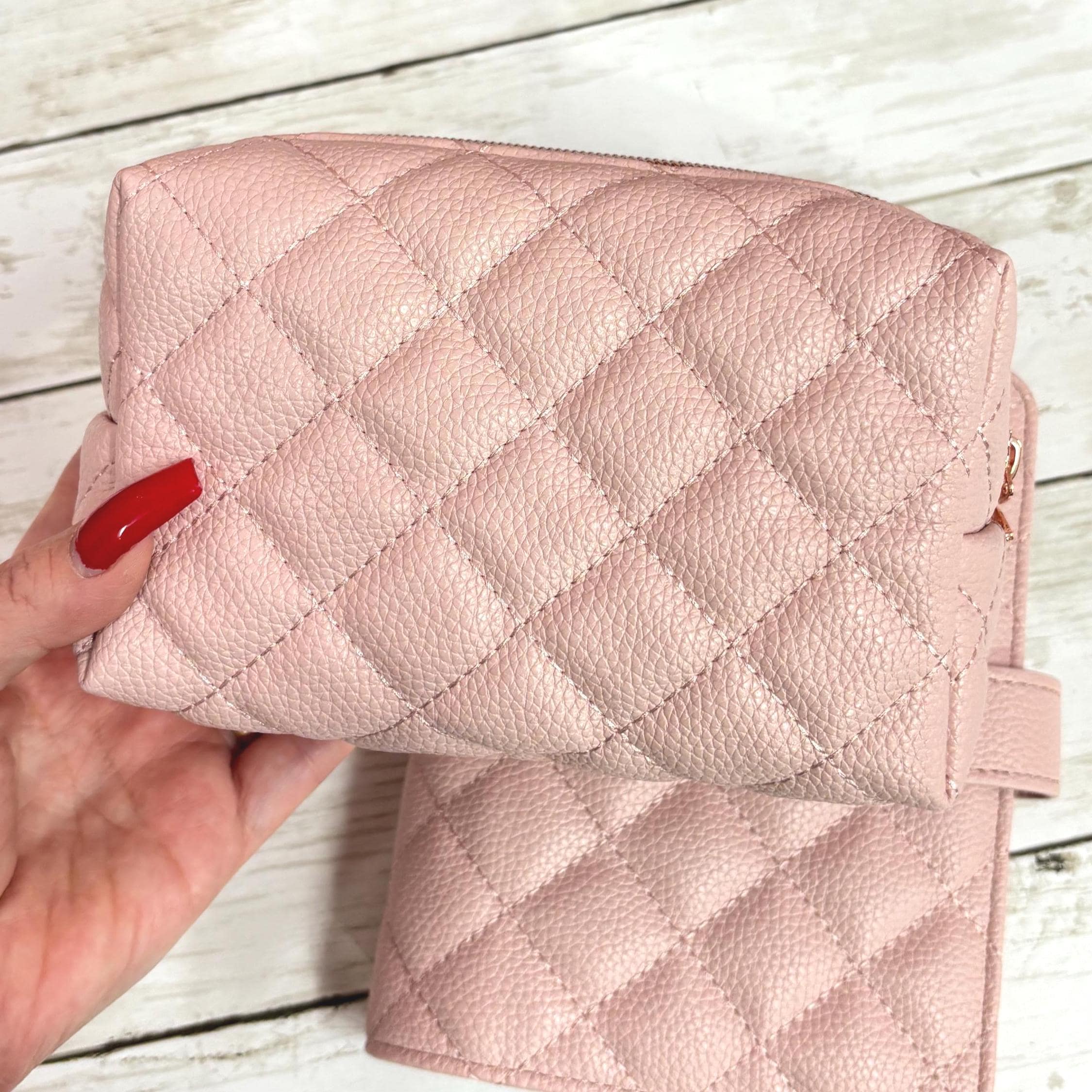 Stay organized in style with this blush pink quilted personal size budget binder and matching zip pouch. Chic, functional, and perfect for cash stuffing, sinking funds, or everyday planning.