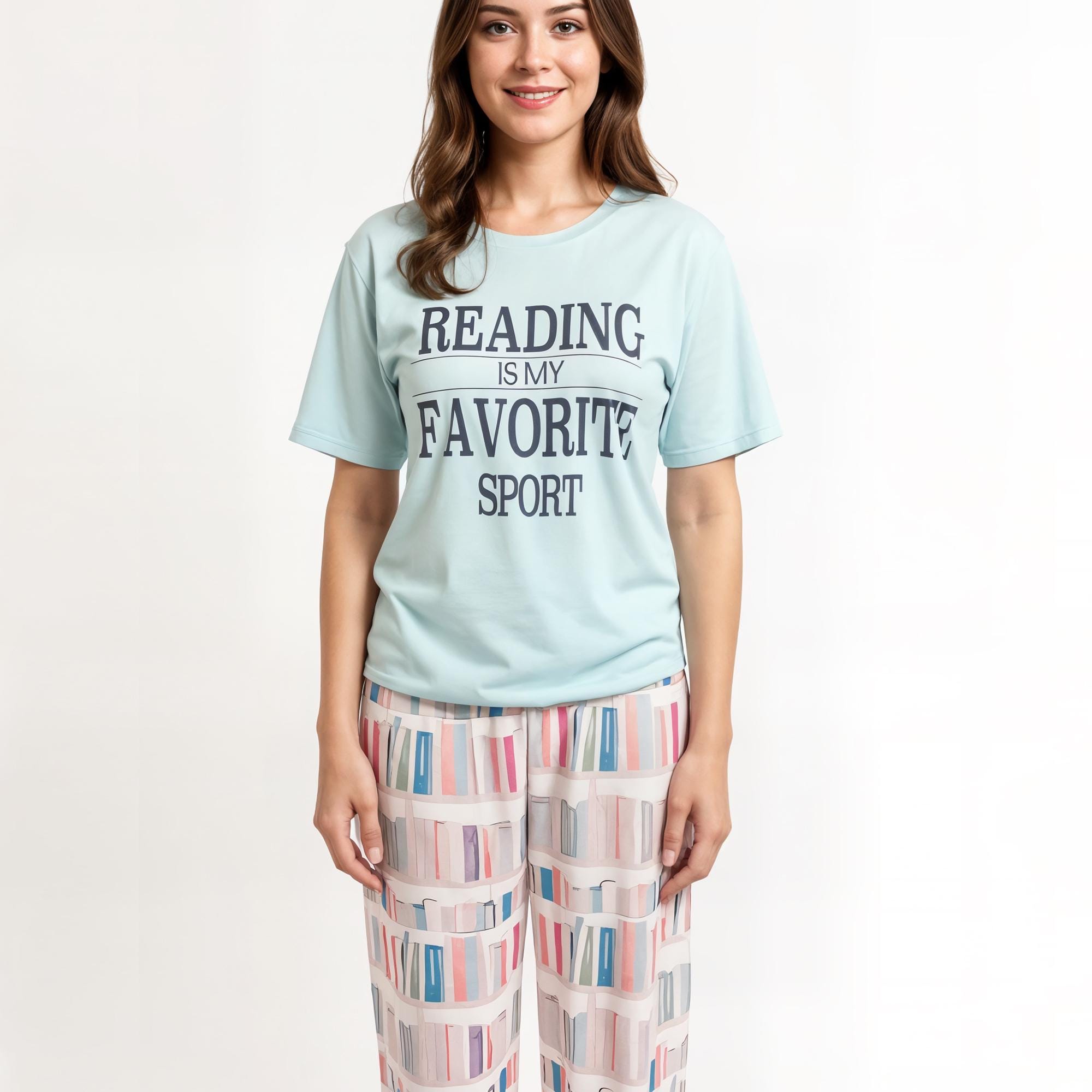 These pajama pants have are silky soft outside with a cozy lining. They feature a bookshelf print. Add an optional reading t-shirt.