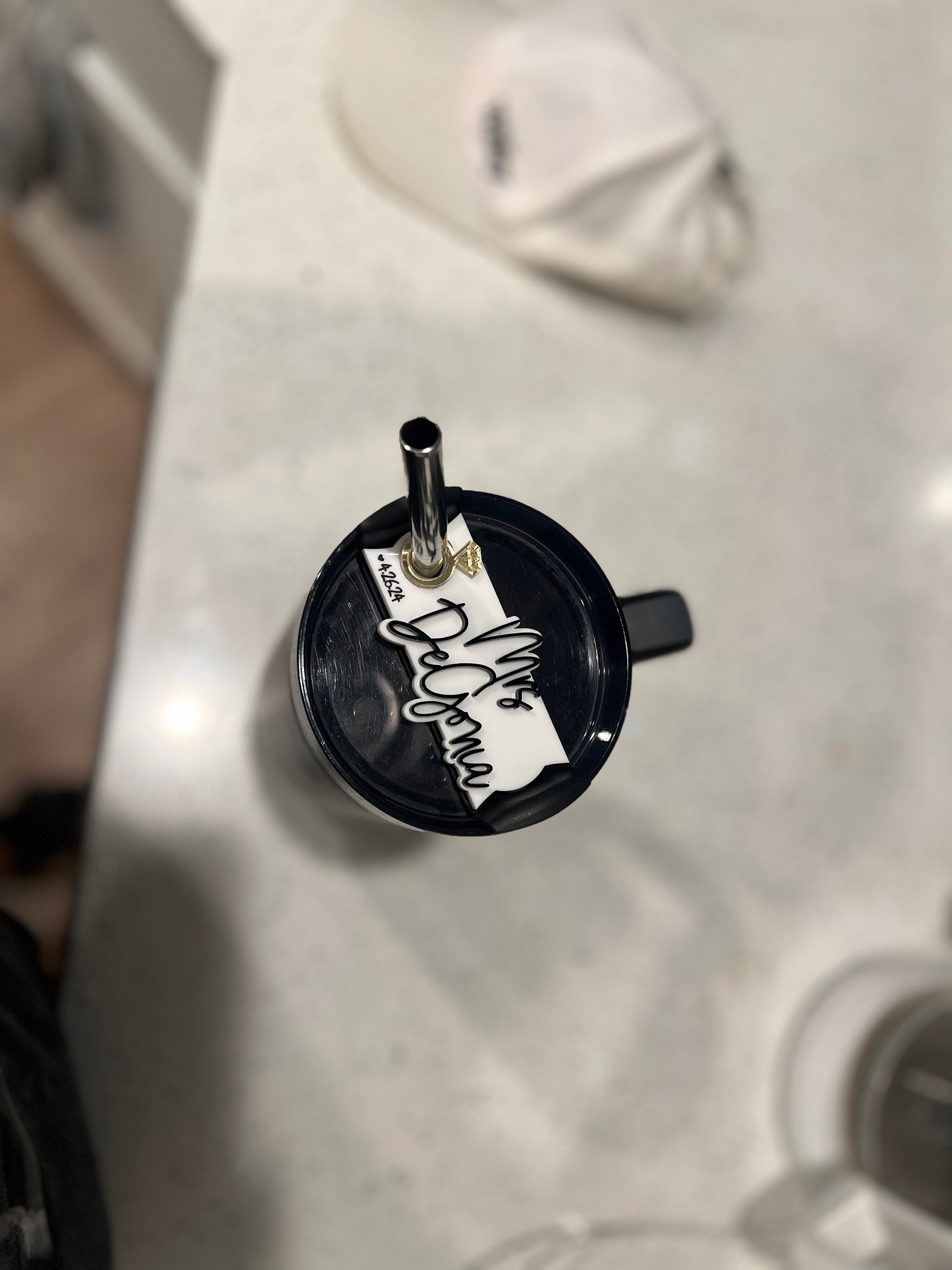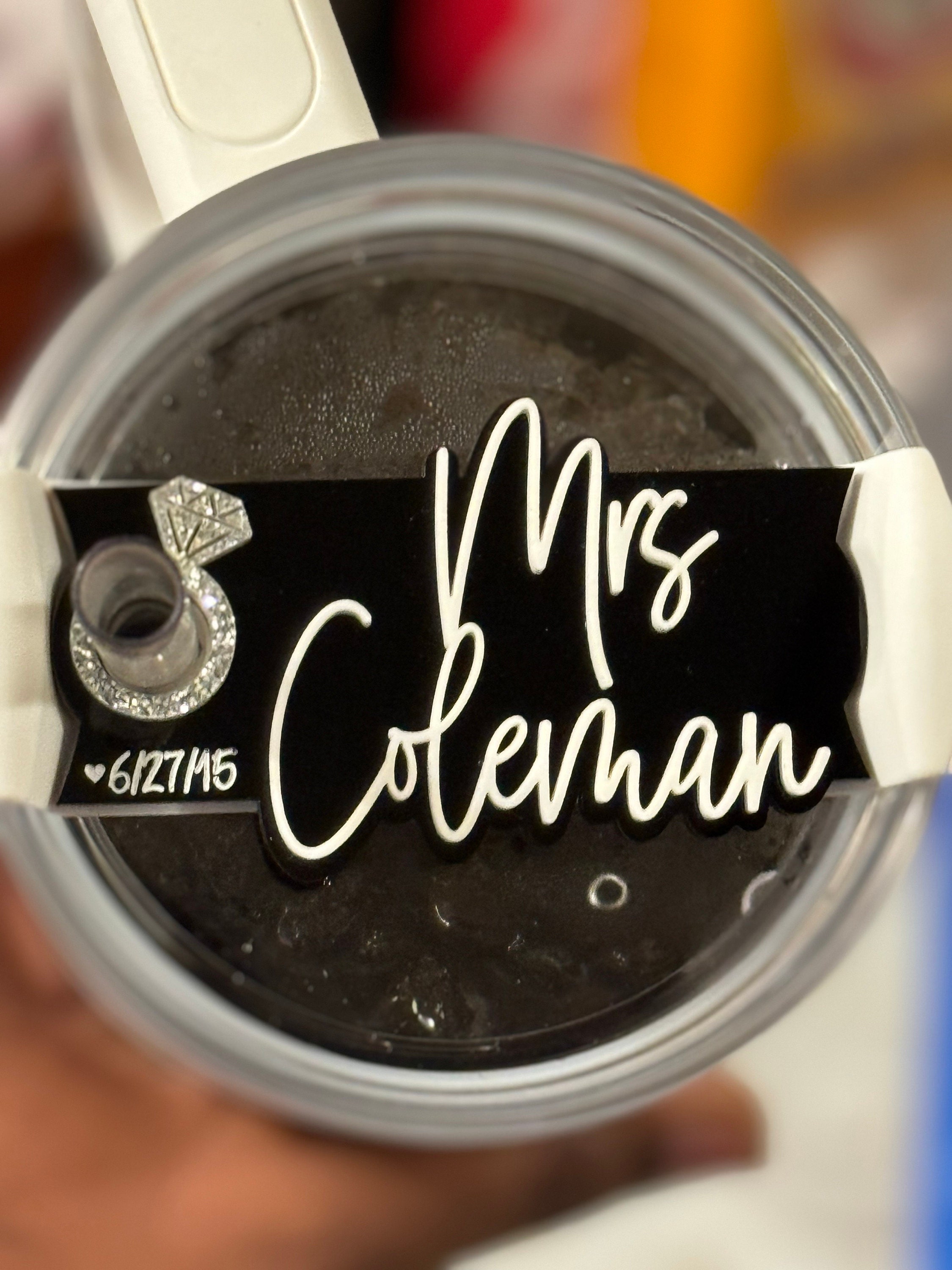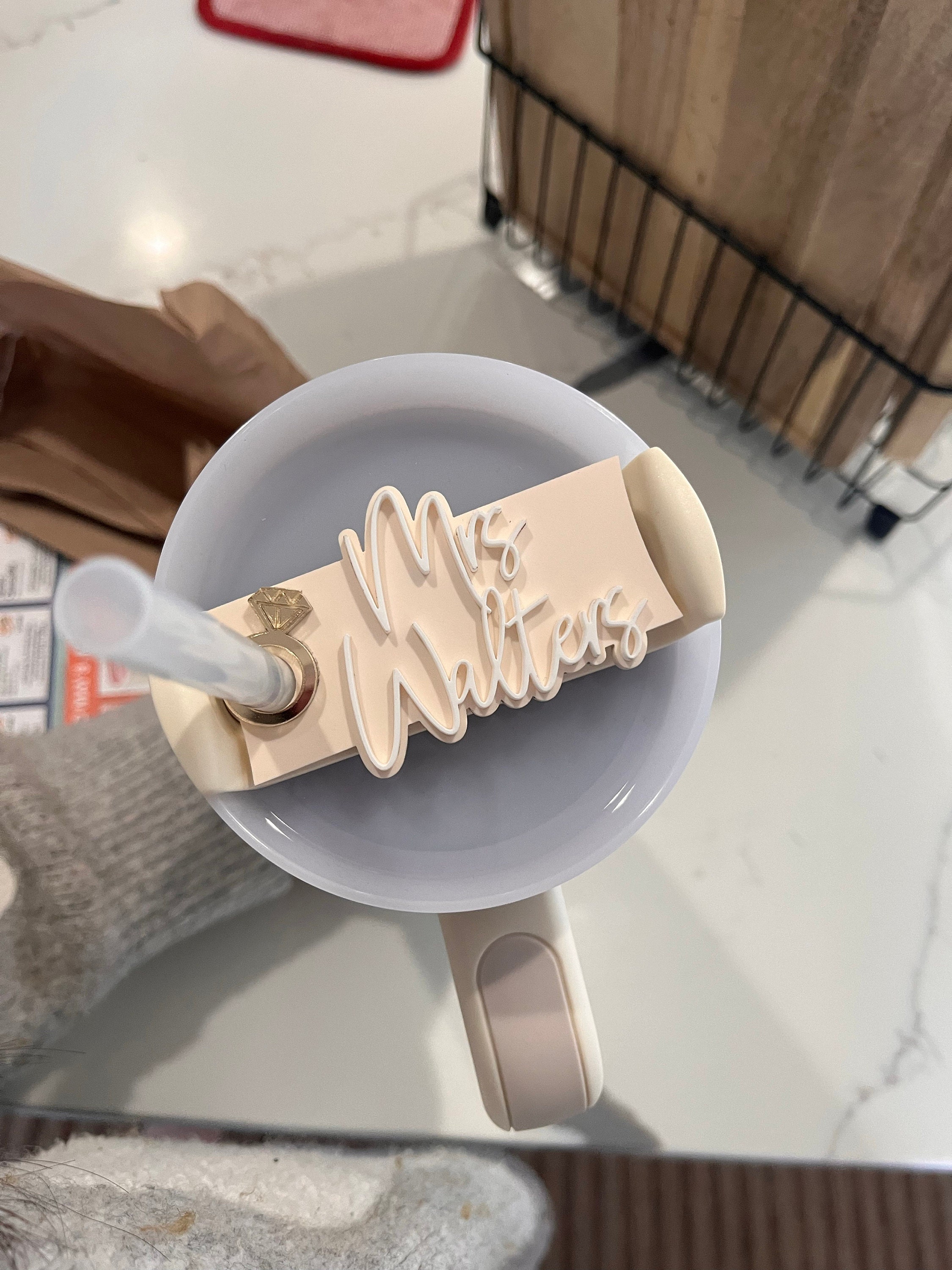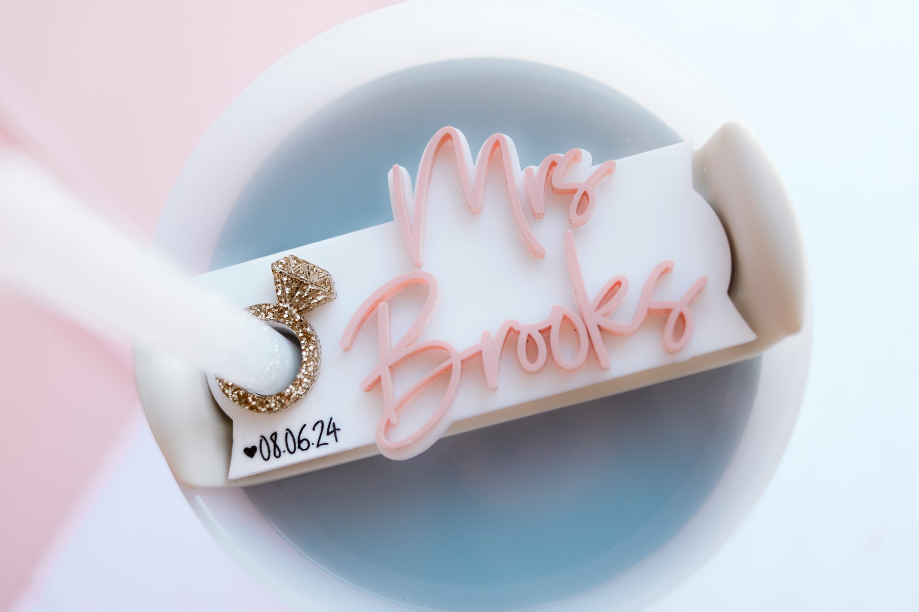 - Customize it with her future last name or any desired text, creating a unique and stylish nameplate that attaches to her favorite tumbler.