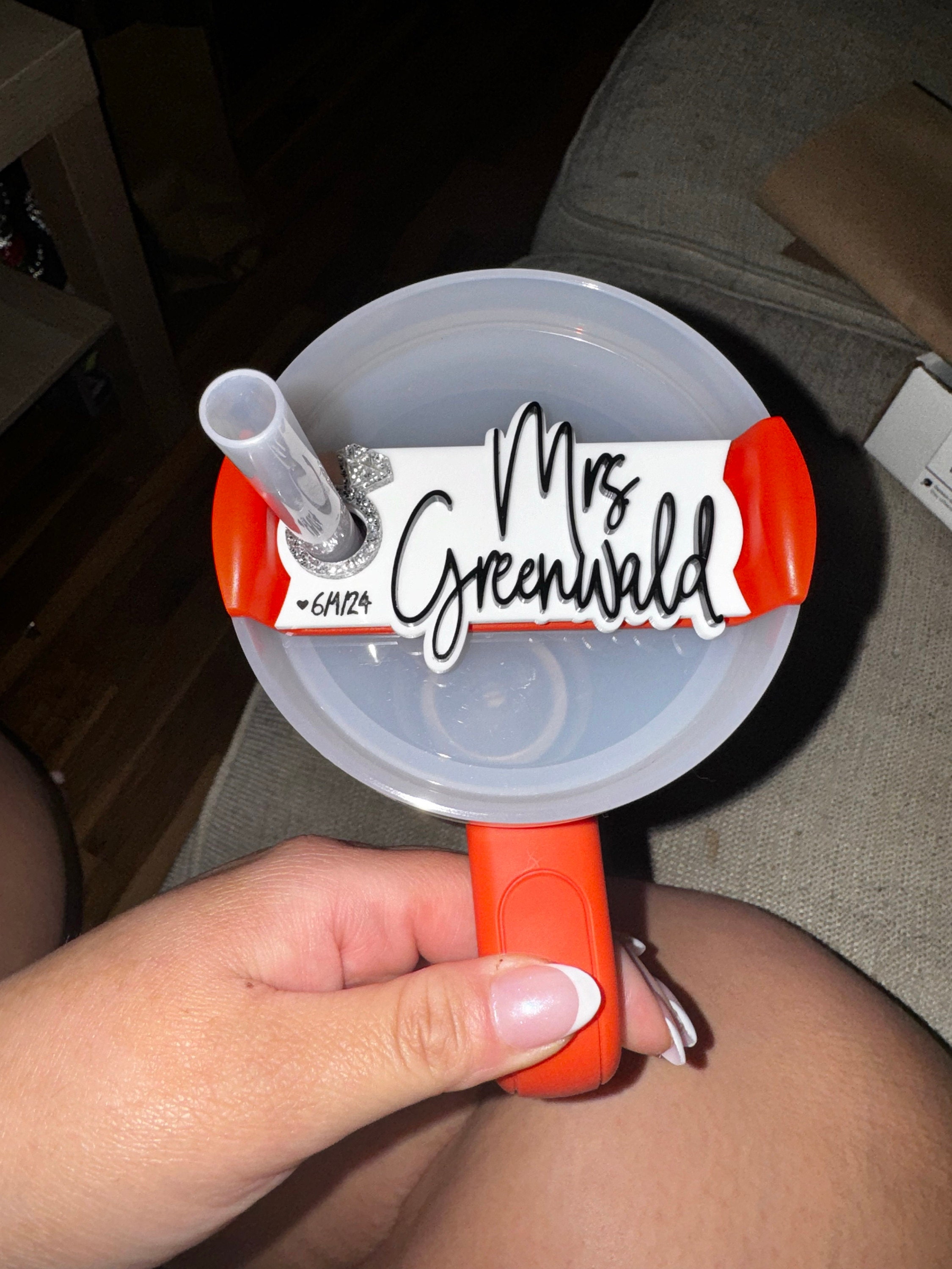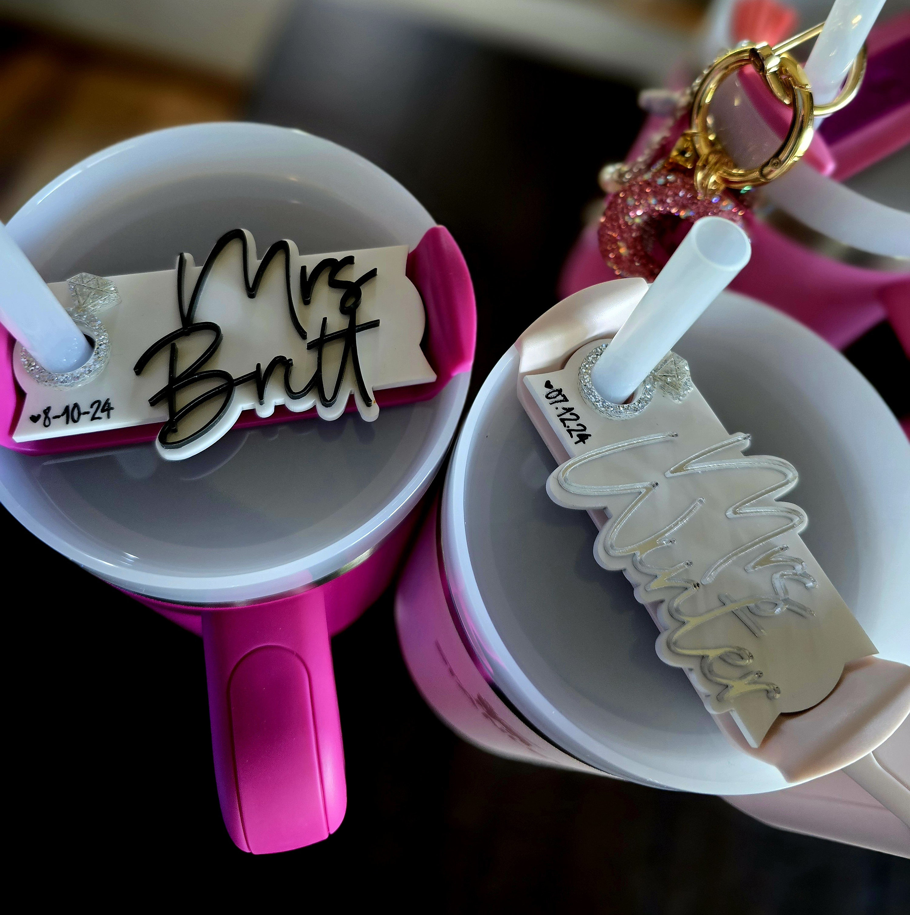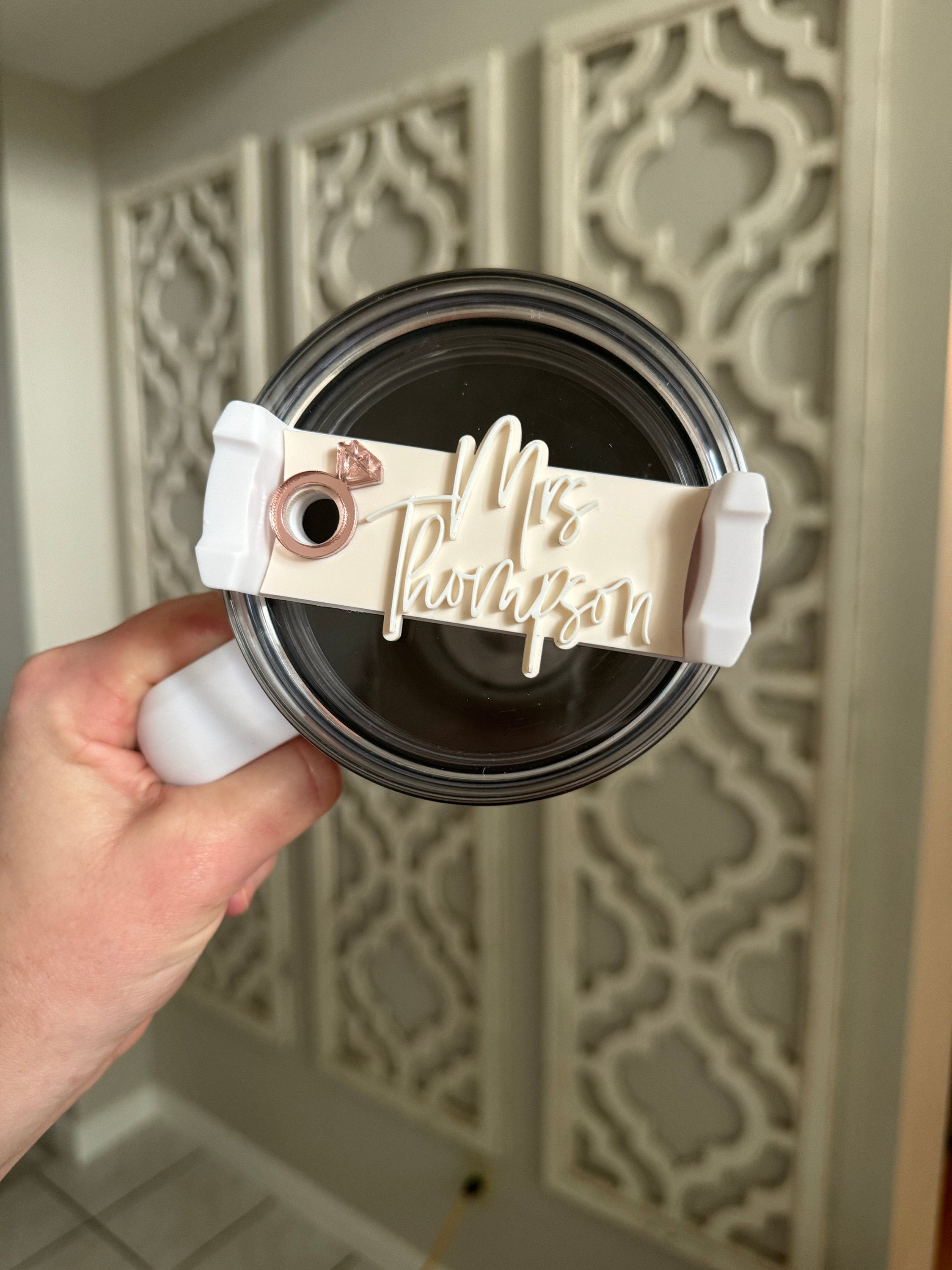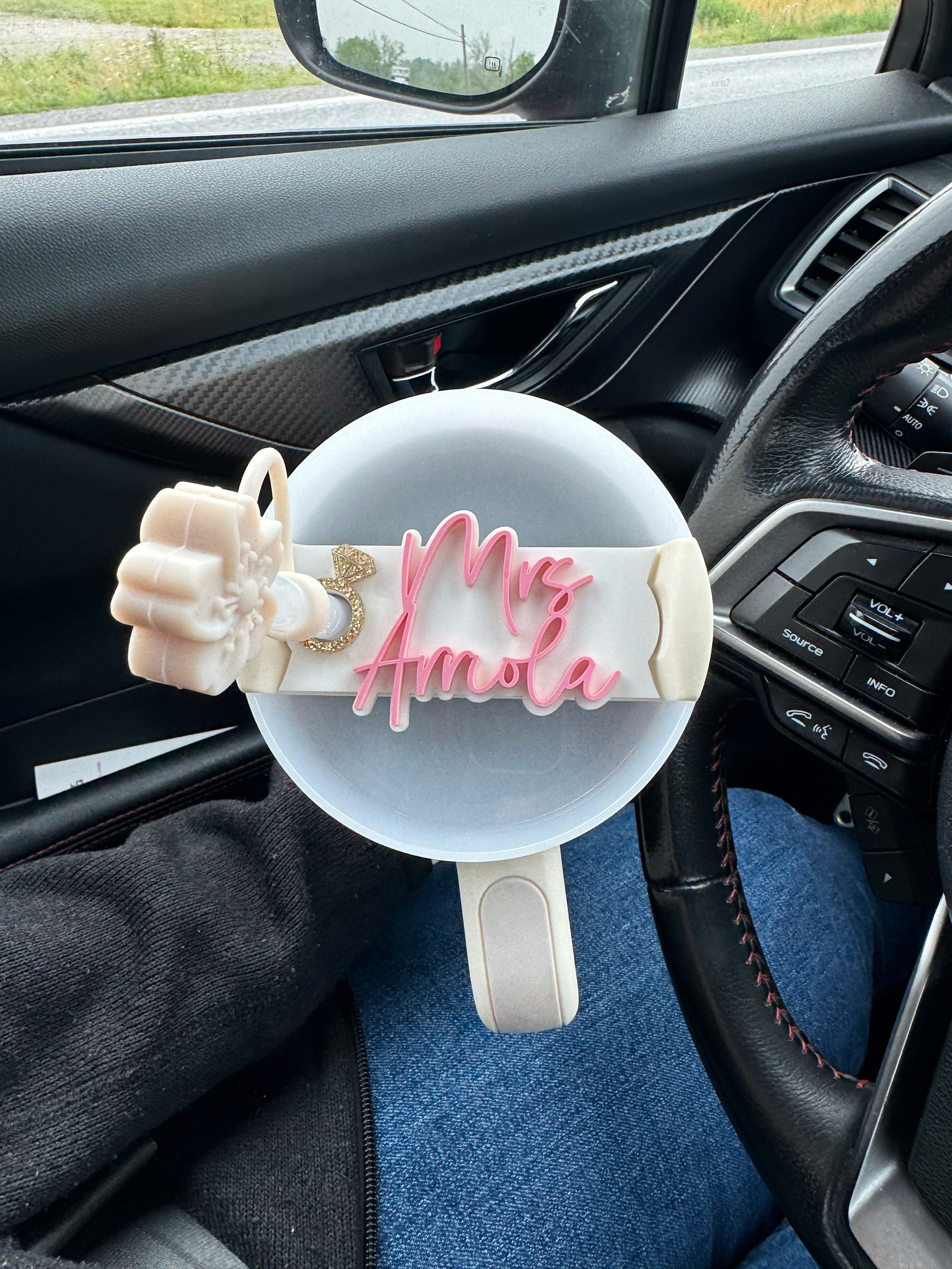 - Customize it with her future last name or any desired text, creating a unique and stylish nameplate that attaches to her favorite tumbler.