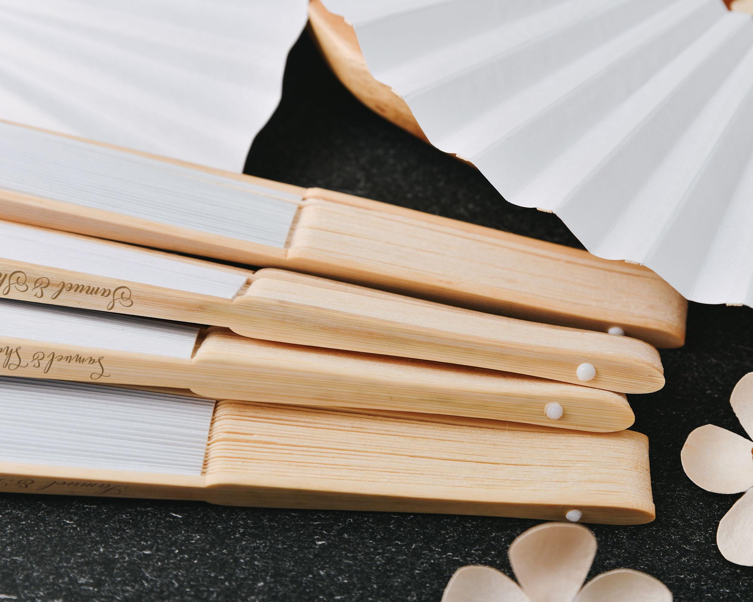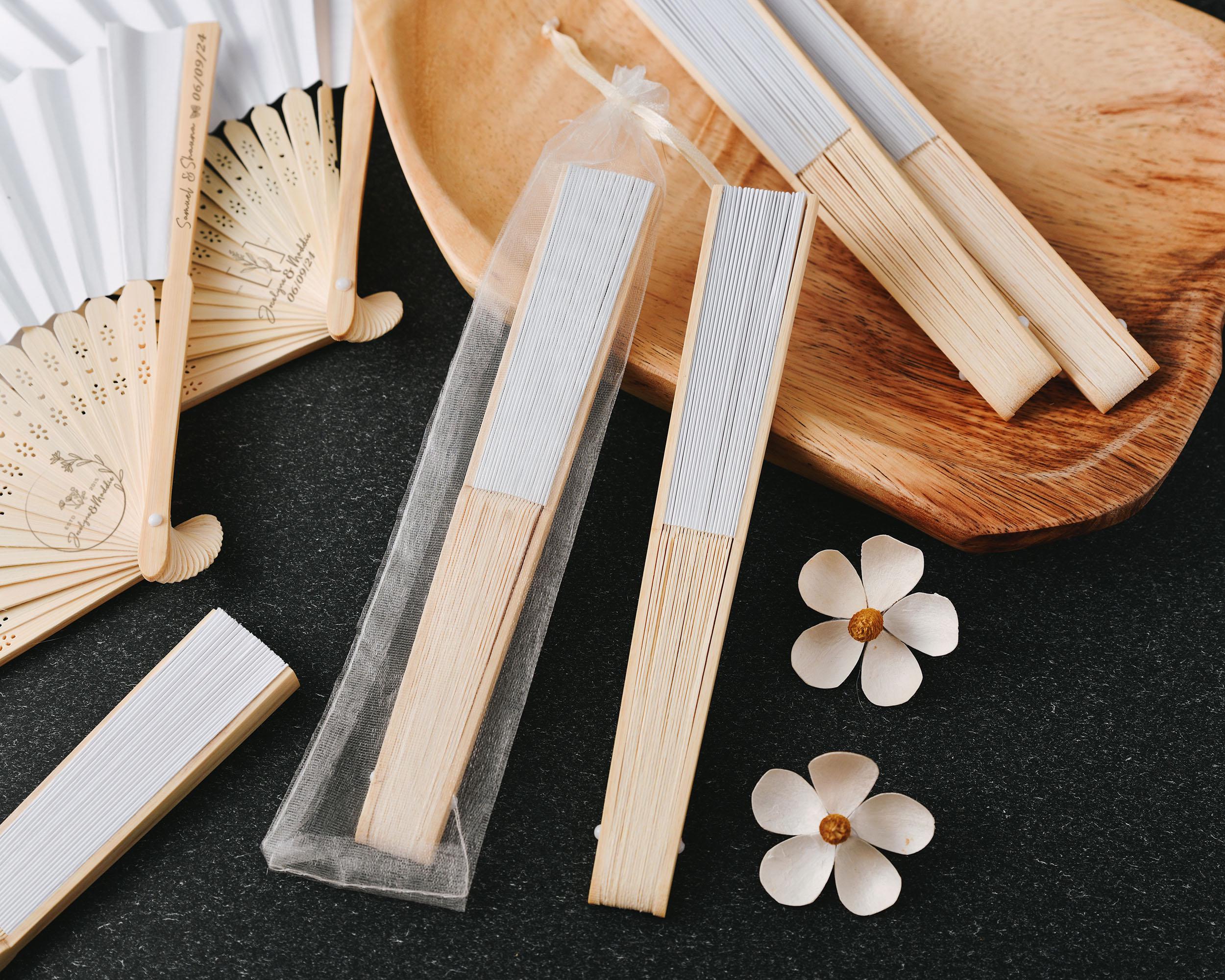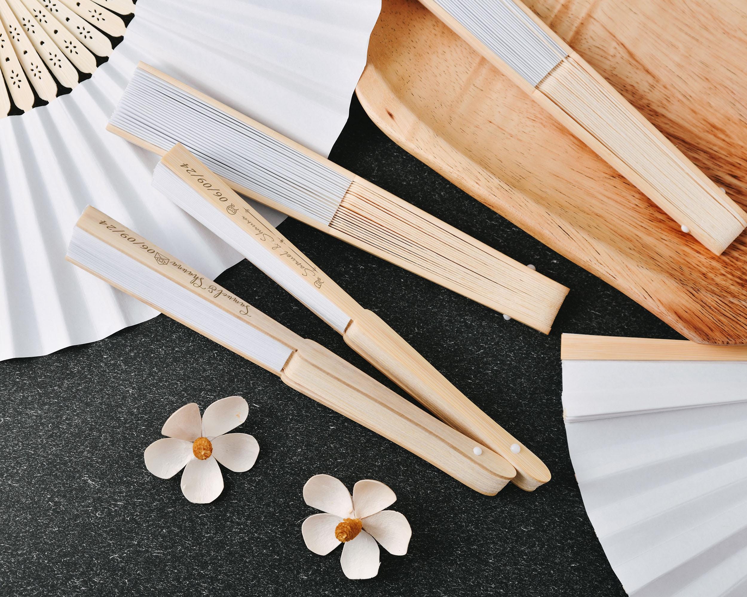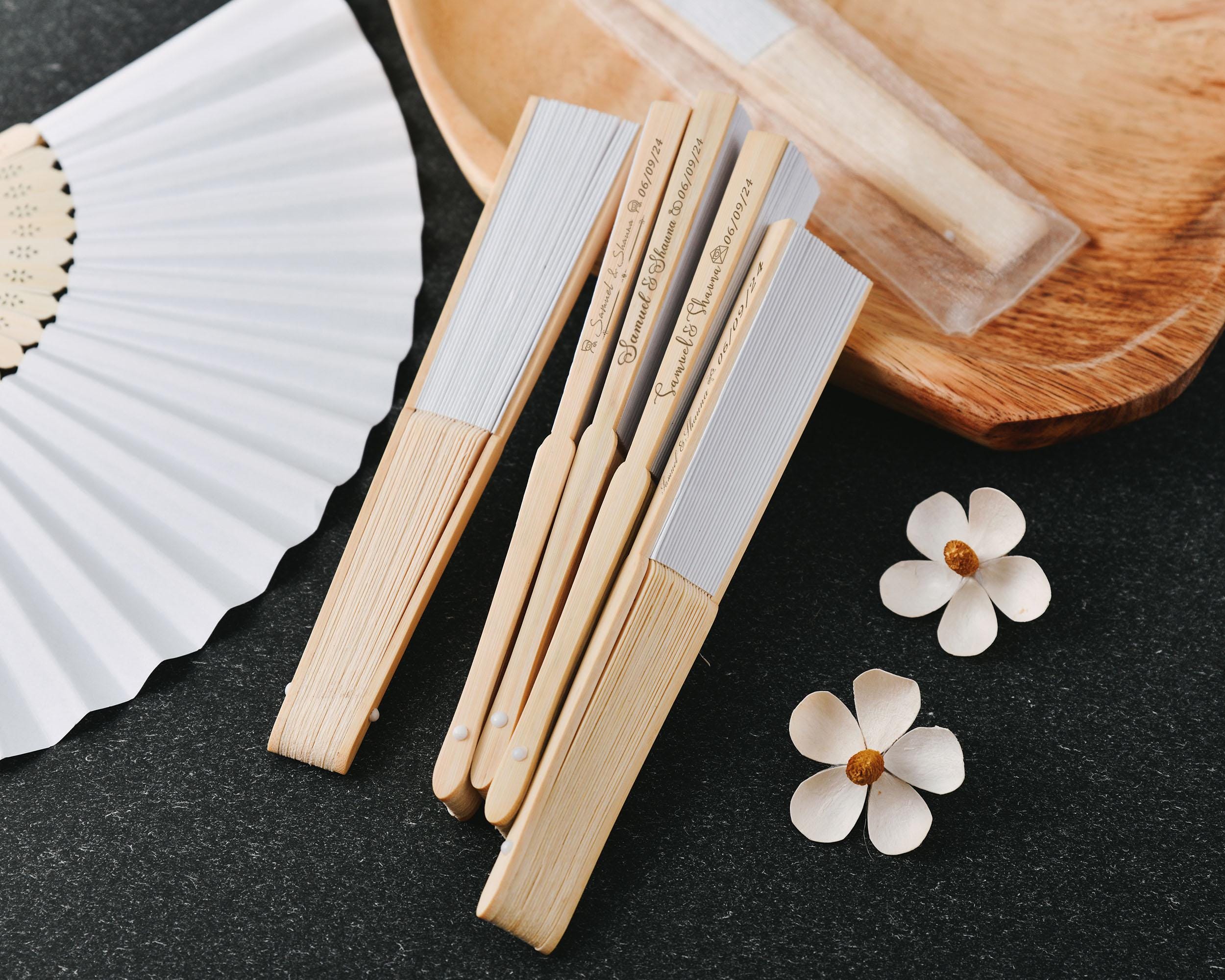 These Silk White Carved Personalized Wooden Wedding Paper Fans are the ultimate combination of elegance and personalization for your special day. Made from premium wood with intricate cutout designs, these hand fans are the perfect accessory for your wedding, bridal shower, or any other event.