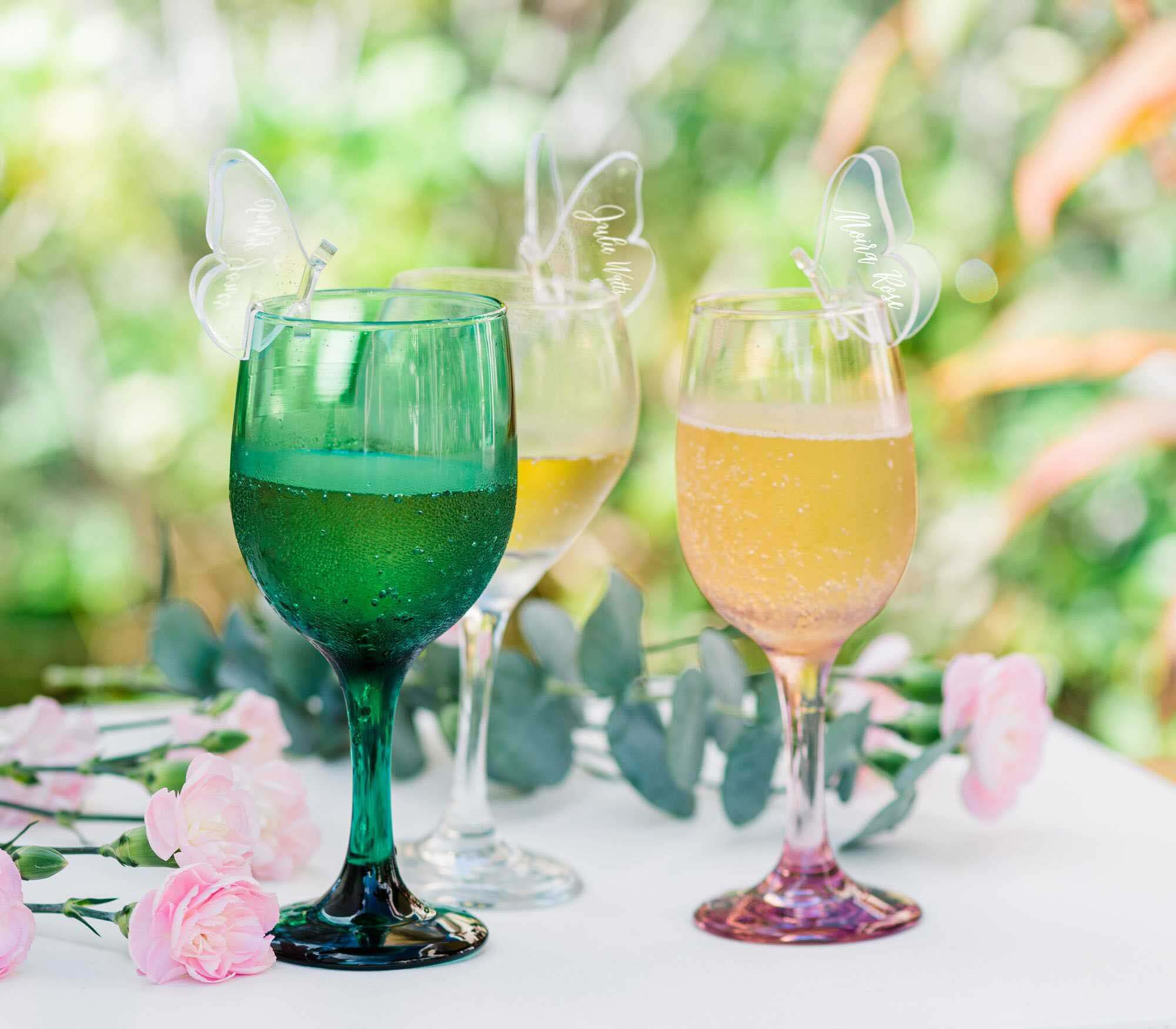 Adaptable to fit any glass size, our drink tags are perfect for all types of events, such as weddings, birthdays, bridal showers, baby showers, Christmas parties, or dinner parties. They also make the perfect gift for all your loved ones! Don't settle for boring drinkware at your next gathering.