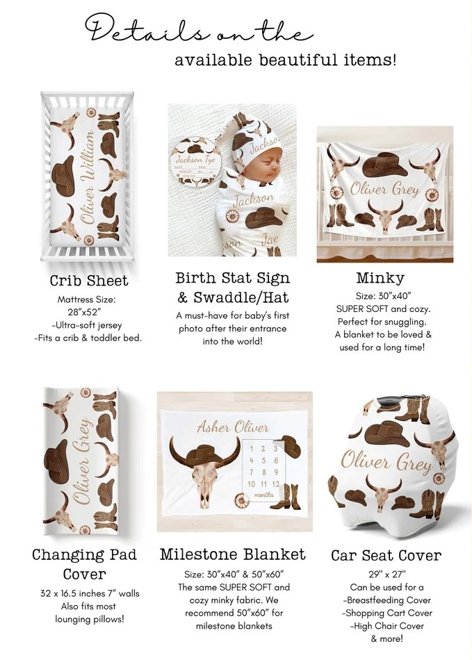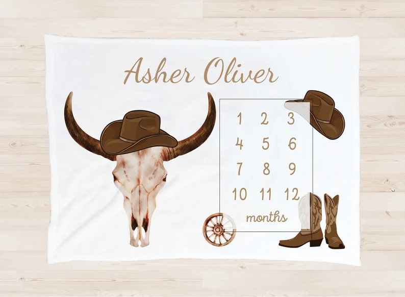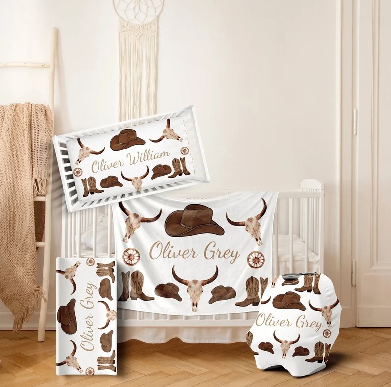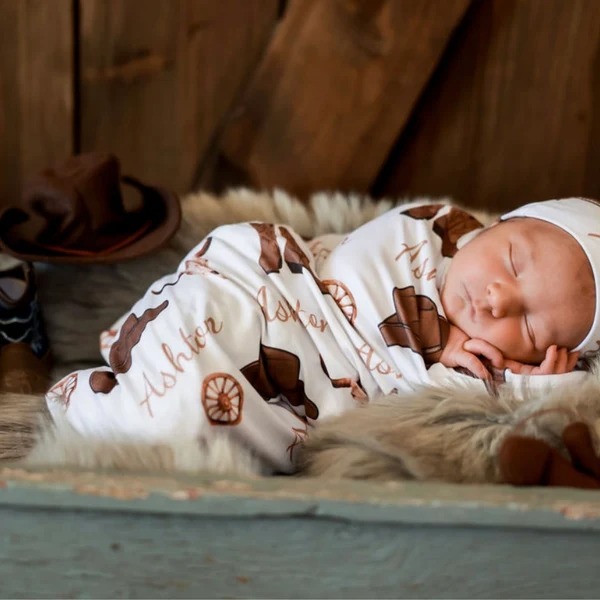 Gift COWBOY Hat Name Blanket Baby Boy Personalized Shower Gift Cow Swaddle Newborn Ranch Coming Home Outfit Hospital Cowboy Boots Hat Deer Set