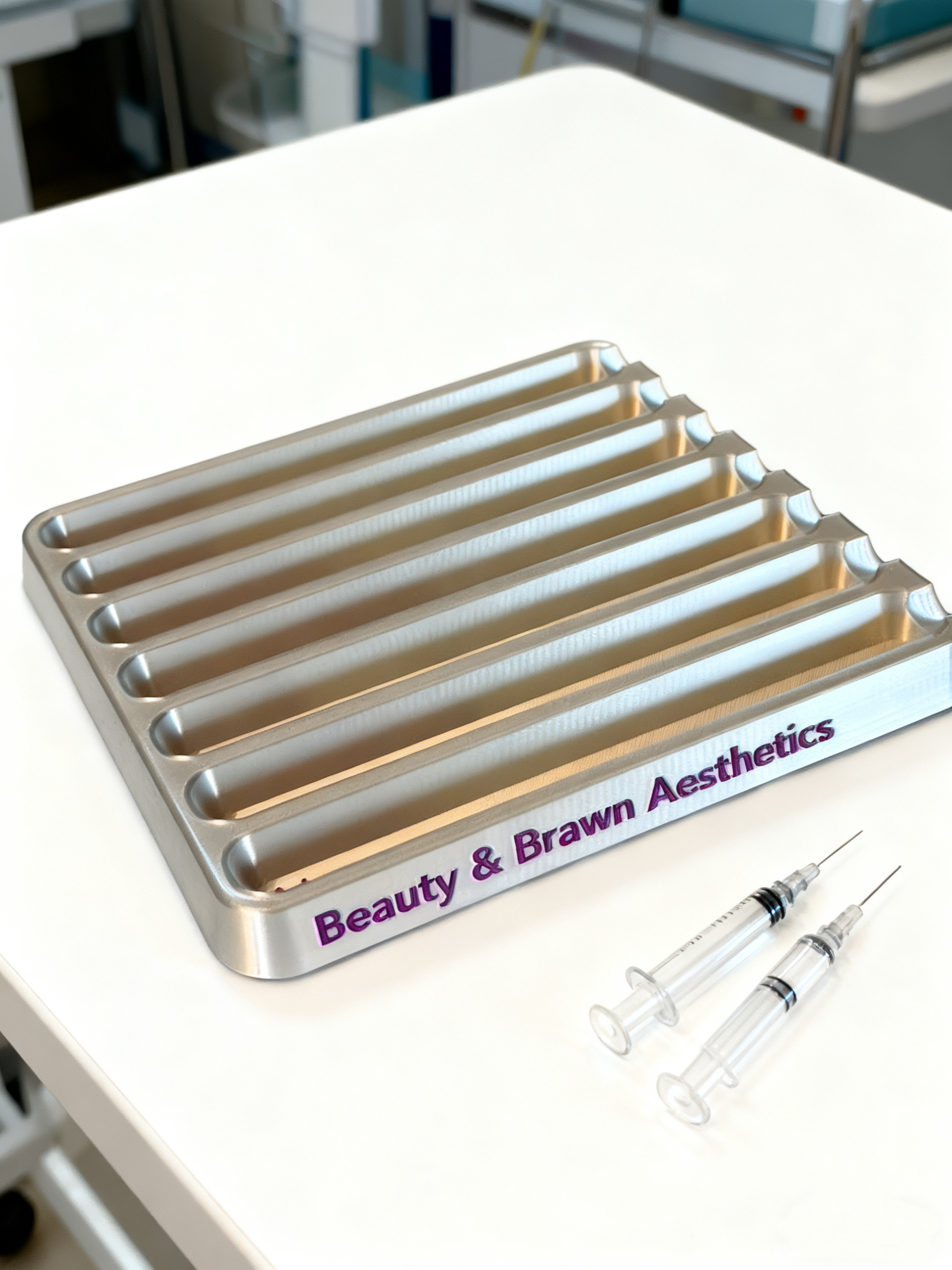 Keep your workspace organized and exude professionalism with our Custom Syringe Tray designed specifically for aesthetic practitioners. This tray not only enhances the organization but also instills confidence in your clients, showcasing your commitment to cleanliness and precision.