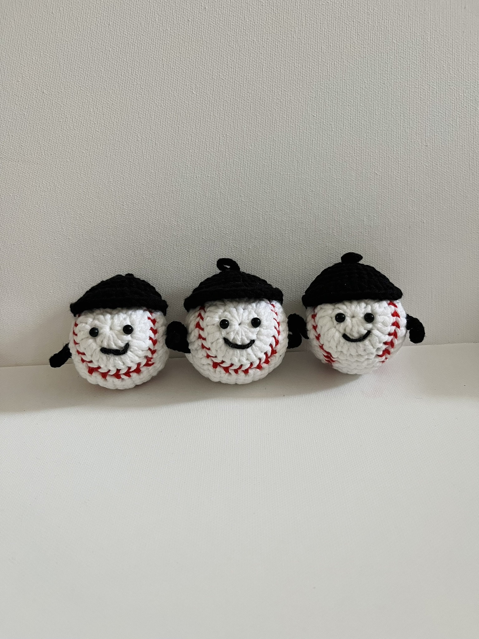 Add some personality to your style with these adorable Crochet baseball keychains. Made with love and care, they are sure to brighten up anyone's day. So why wait? Grab yours now!