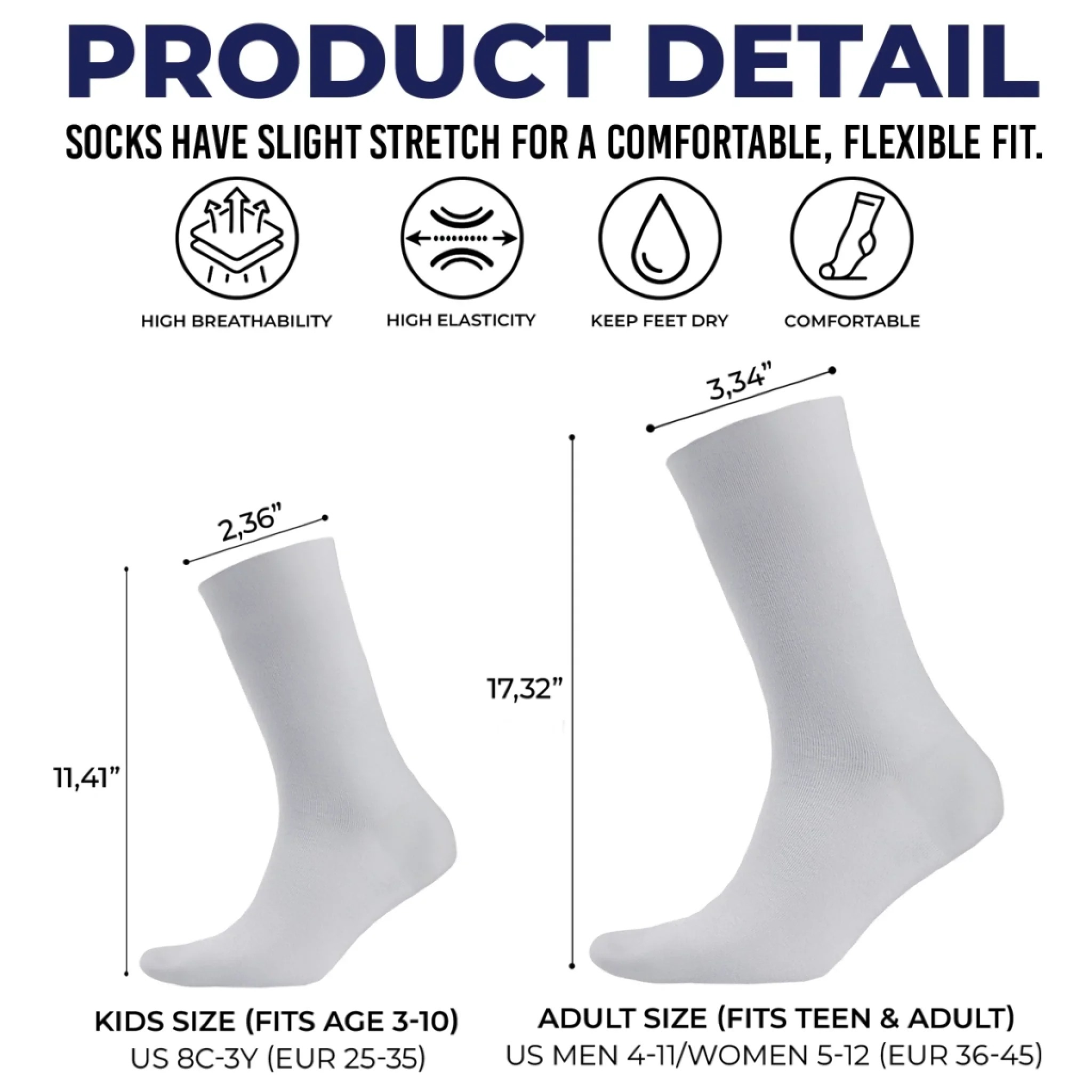 These customized crew socks are a way to add fun to your everyday outfits. They are the perfect choice for everyone, a must-have in every season and day. Whether you're running, working out, engaging in outdoor activities, or playing various sports, they are the perfect way to protect yourself and keep your feet warm. This is the perfect gift for anyone, suitable for all occasions: birthdays, holidays, anniversaries, graduations, Valentine's Day, Mother's Day, Father's Day, and just because! Whether for friends, family, or that special someone, this versatile gift is guaranteed to bring joy and make lasting memories.