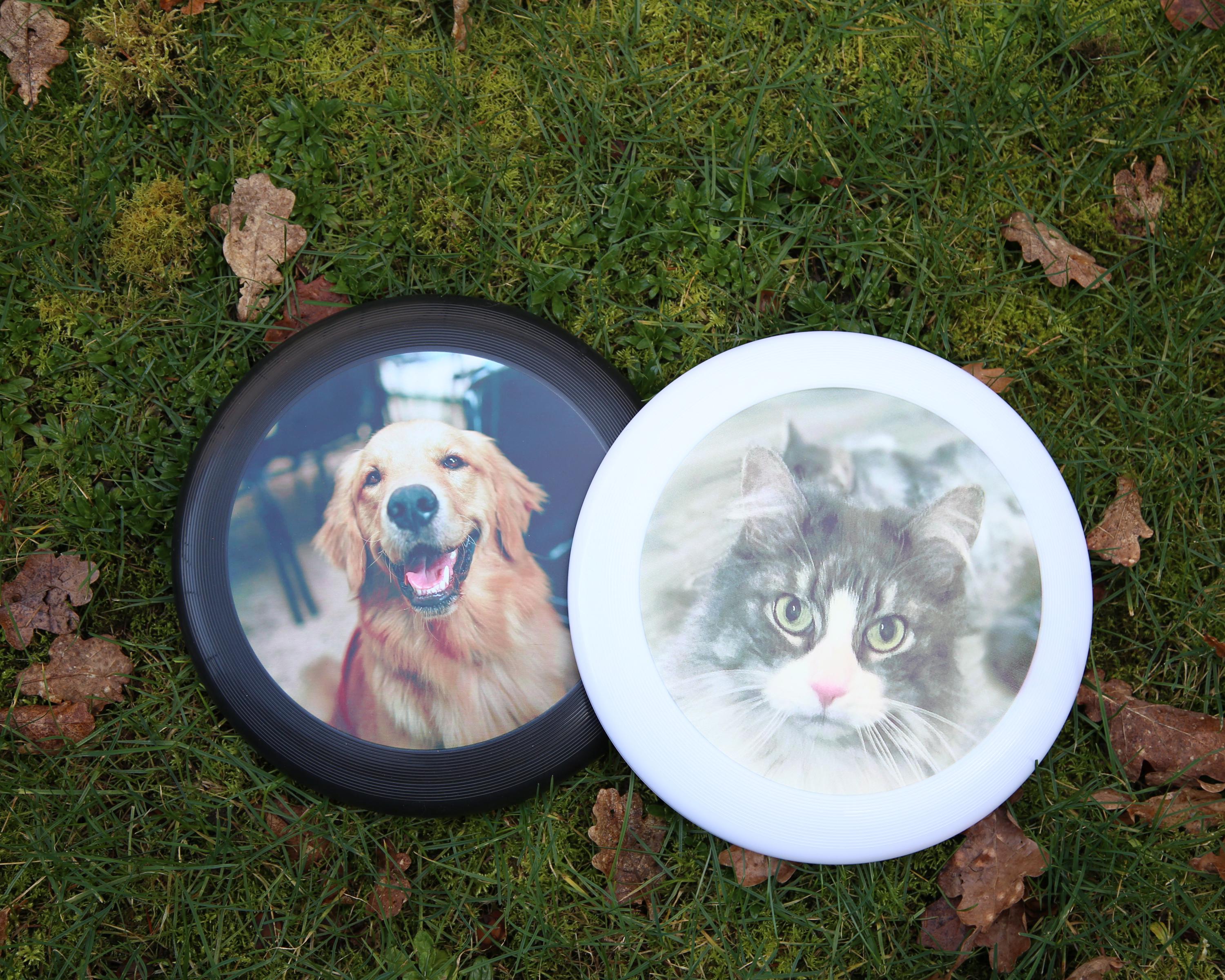 Bring your furry friend's likeness into your next game of disc golf or flying disc with this custom pet photo frisbee. Featuring a high-definition, durable print of your pet’s photo along with an optional name or text, this frisbee adds a personal touch to your outdoor activities. Choose from a variety of colors and sizes (27.5cm diameter with an 18cm printed area), ensuring your pet stays in the spotlight wherever you play. Whether it's for fun or as a gift for any pet lover, this custom frisbee will become a cherished item for outdoor enthusiasts and pet owners alike!