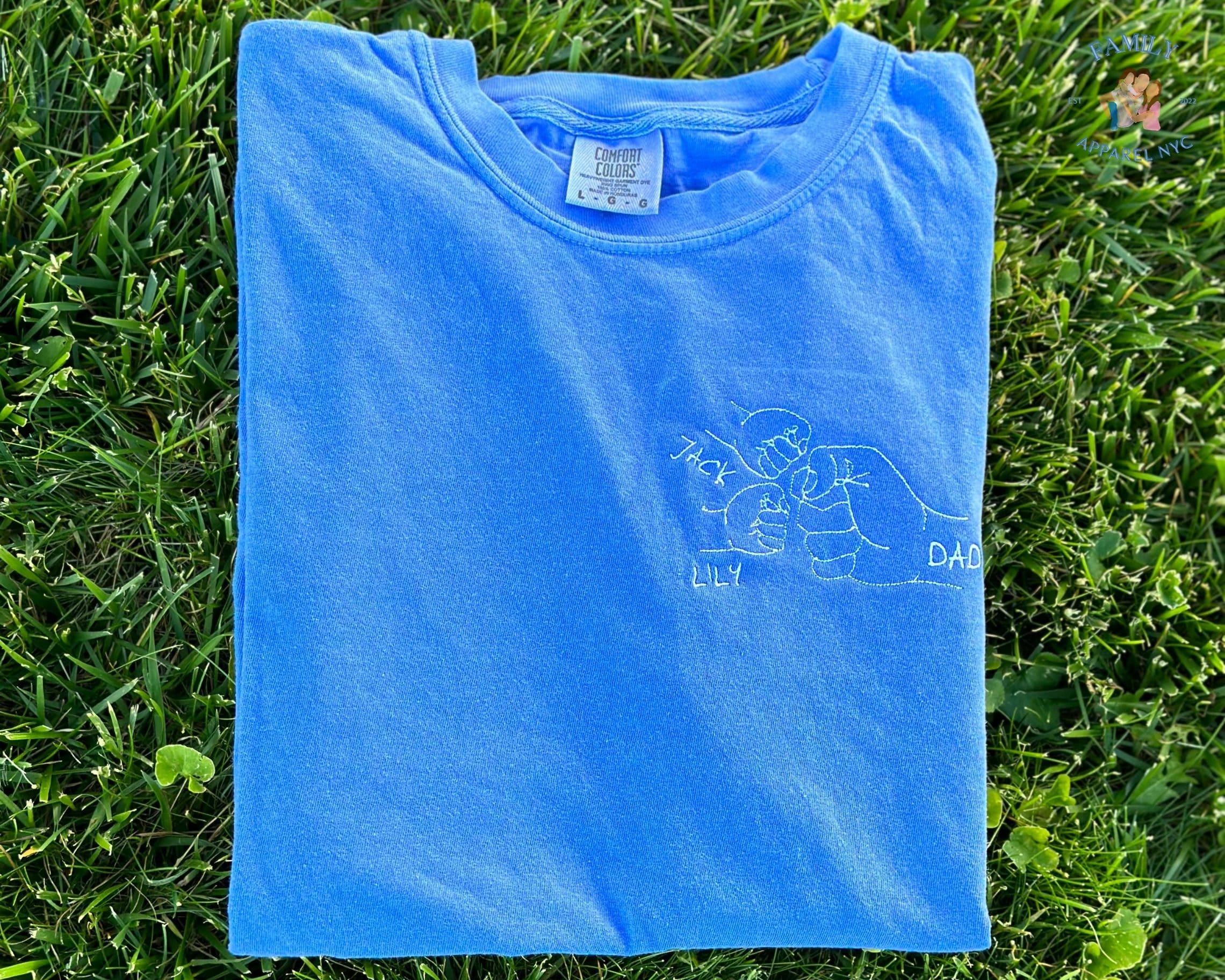 Custom Embroidered Dad Fist Bump Shirt with Kids Names, Embroidered Personalized Family T-Shirt, Father's Day Personalized Gift Tee