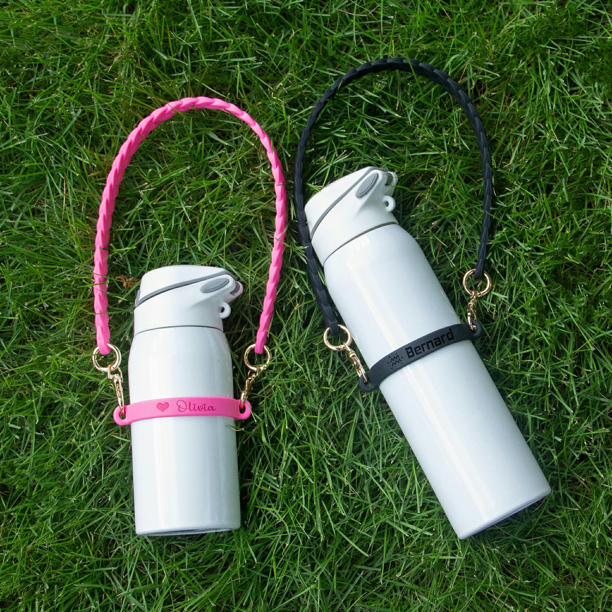 Transform your water bottle with our Custom Engraved Silicone Bottle Band with Strap. Crafted from flexible and durable silicone, this band provides a secure, anti-slip grip and strong load-bearing capacity. The versatile strap allows for effortless carrying by hand, slinging over your shoulder, or attaching to your backpack, keeping your hands free. Available in five vibrant colors - Hot Pink, Purple, Black, Orange, and Blue - it's perfect for the gym, office, or on-the-go.
