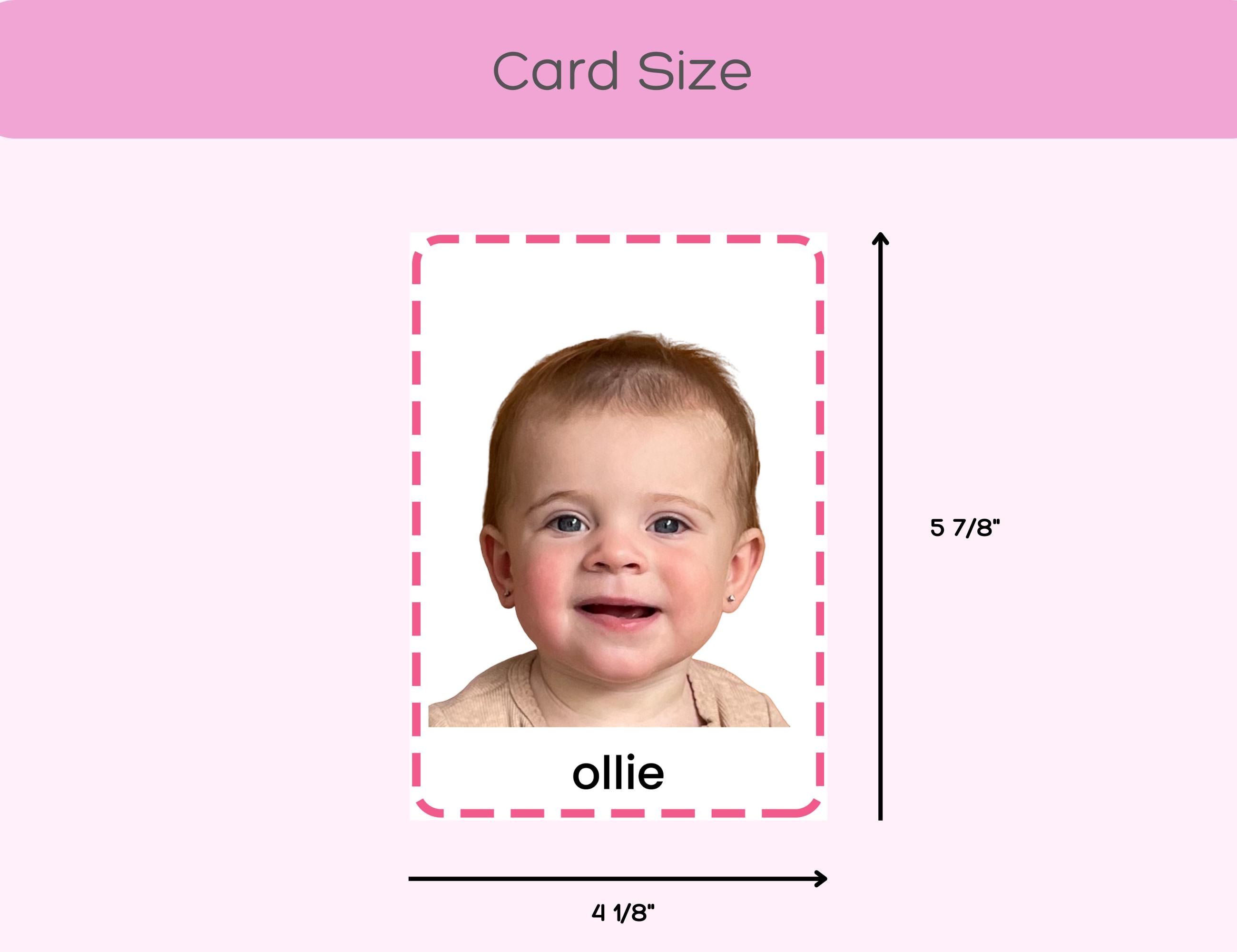 Familiar Face Cards - Our flashcards are the perfect size - big enough for little hands to hold and see (and read!). We print all our flashcards on A6 paper (4-1/8 x 5-7/8 inches or 105 x 148 mm).