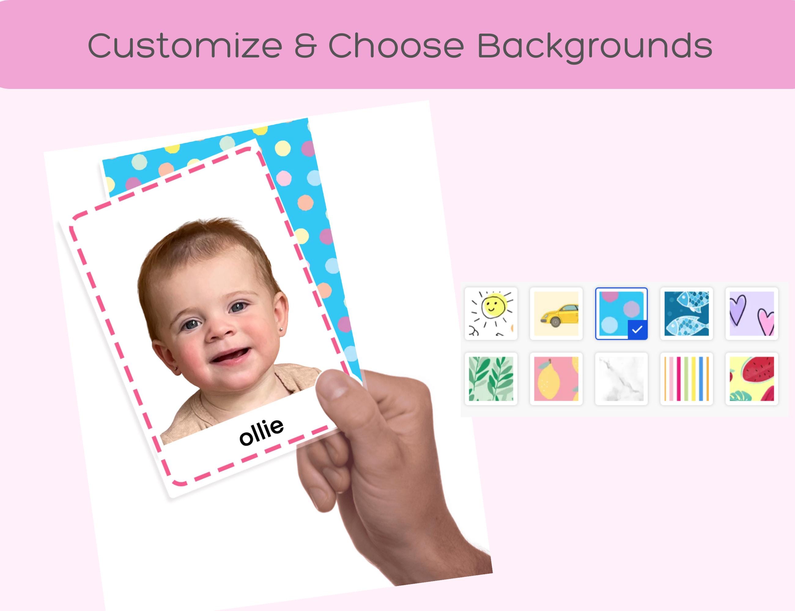 Flashcards for Kids - Upload your own image and choose a design and one line of text. Your little one will LOVE seeing their loved ones on flashcards - second only to actually being together in person.