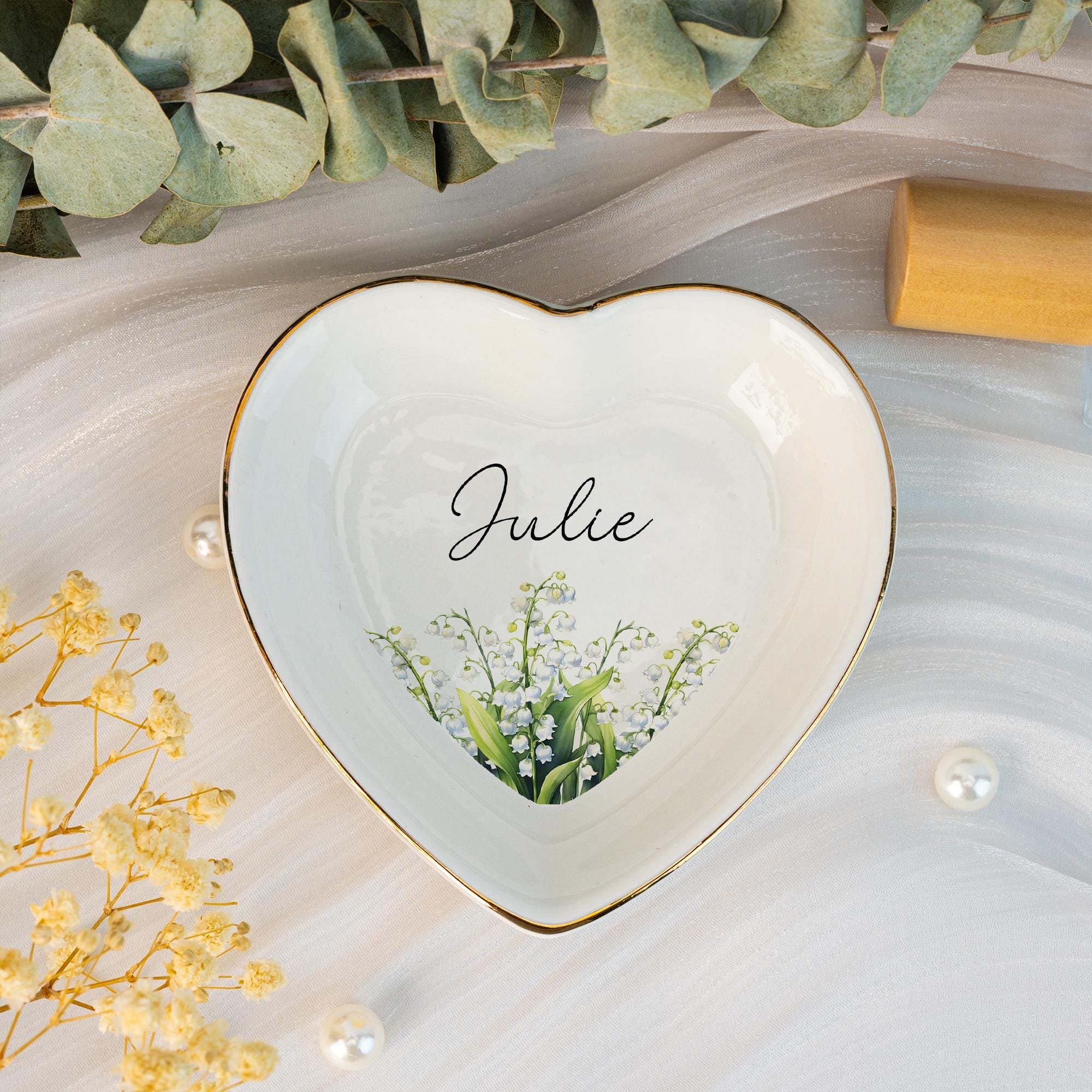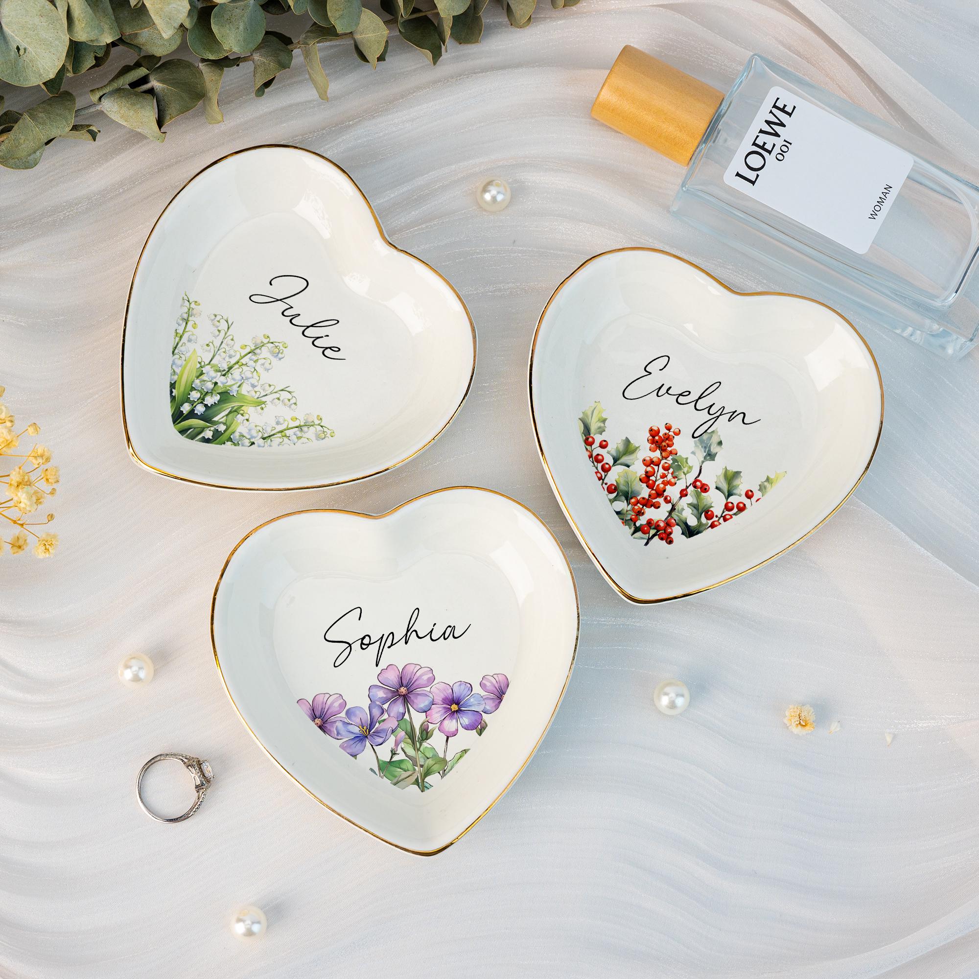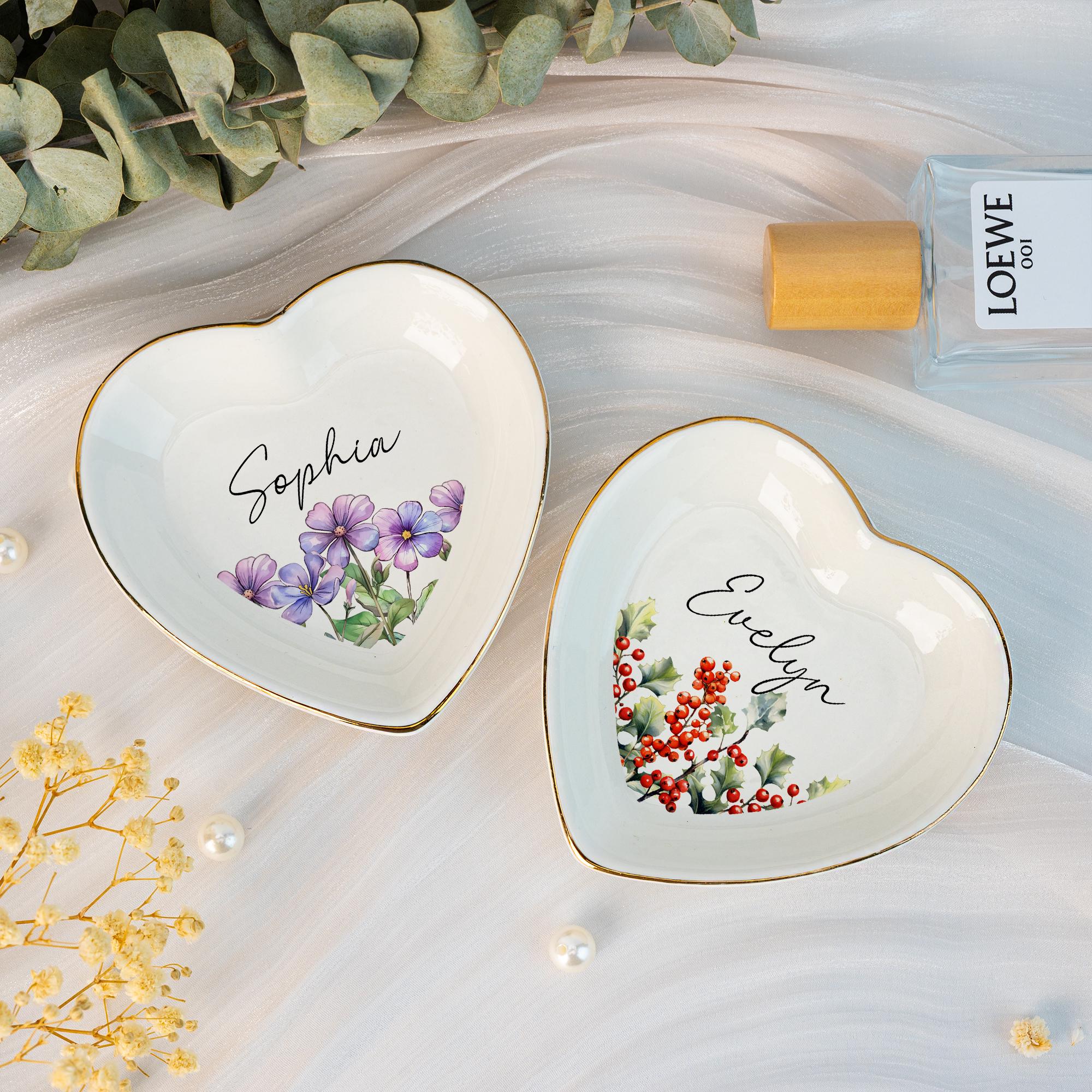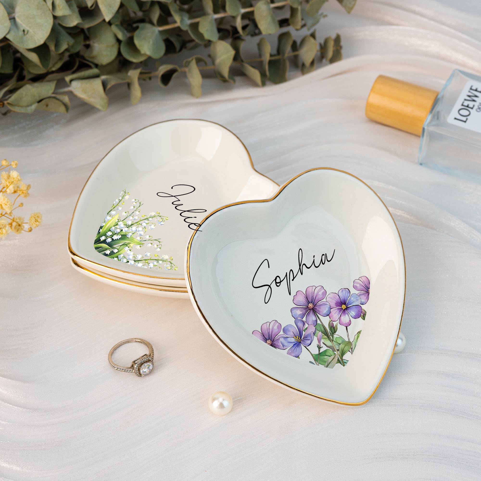 Personalized Birth Flower Jewelry Dish with Name - Ceramic jewelry plates are suitable for various home environments, such as bedrooms, living rooms, study rooms, etc. At the same time, it can also be given as a gift to friends and relatives to express their hearts and blessings.