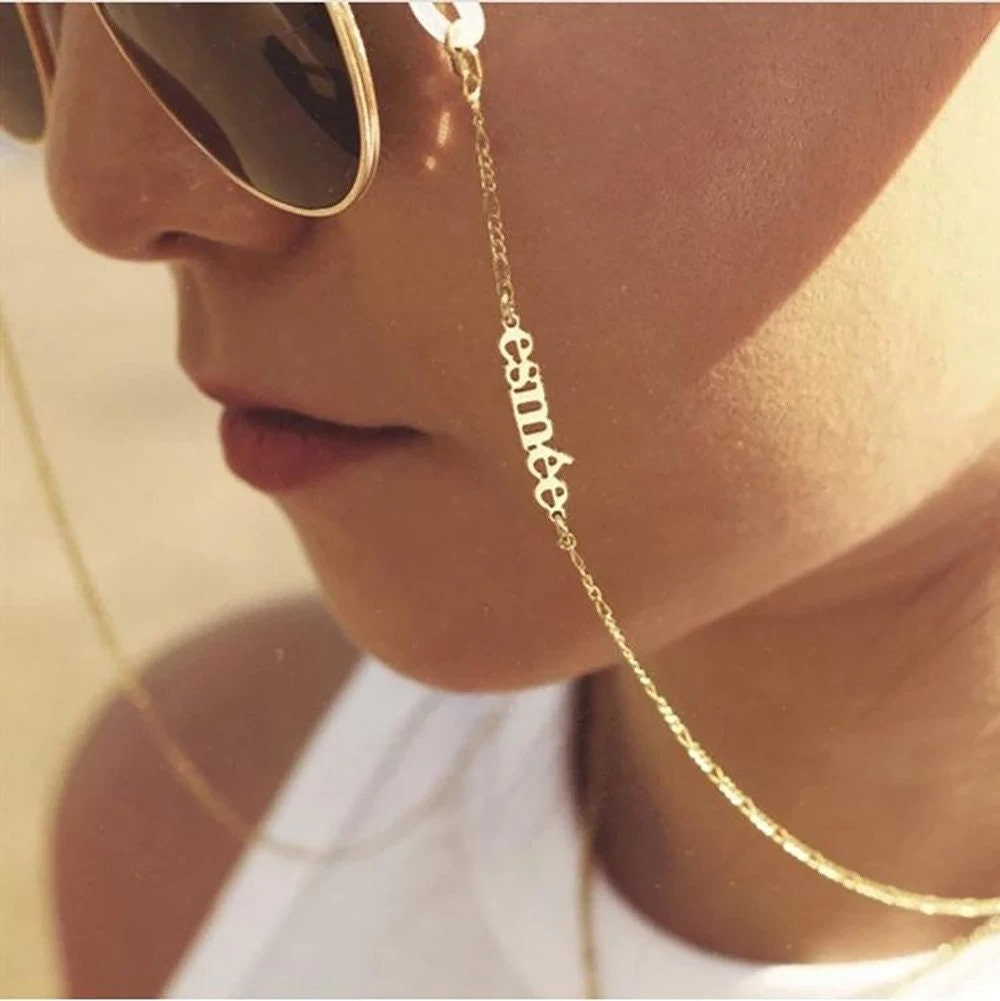 The stainless steel construction ensures that this chain is long-lasting and resistant to tarnishing, making it a practical and stylish addition to your eyewear collection. Whether you're wearing glasses or sunglasses, this custom name chain is a fashionable and functional way to keep your eyewear safe and secure. Elevate your eyewear game with our custom name chain for glasses and sunglasses.