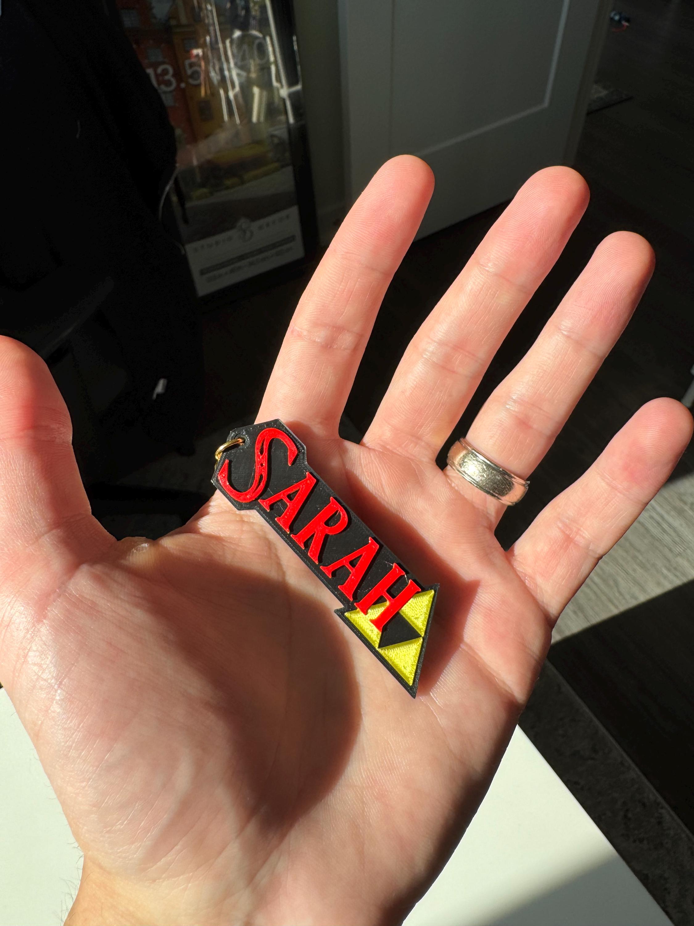 ⚔️ Carry a piece of Hyrule with you wherever you go! This custom Hylian name keychain lets you carry your name (or any word) in the iconic fantasy script loved by RPG gamers. Expertly 3D-printed and hand-finished, each keychain features your name translated into Hylian letters – the mysterious runes from a beloved adventure saga – making it a subtle yet unmistakable Zelda-inspired keepsake for fans. It’s the perfect personalized gamer gift for birthdays, anniversaries, or any fan of epic adventures who already has it all.