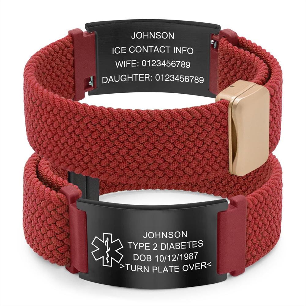 Unlike printed bracelets that can wear off, our laser engraving technology ensures your information remains clear and legible for years. The engraved details are permanently fused into the metal, providing reliable long-term identification.