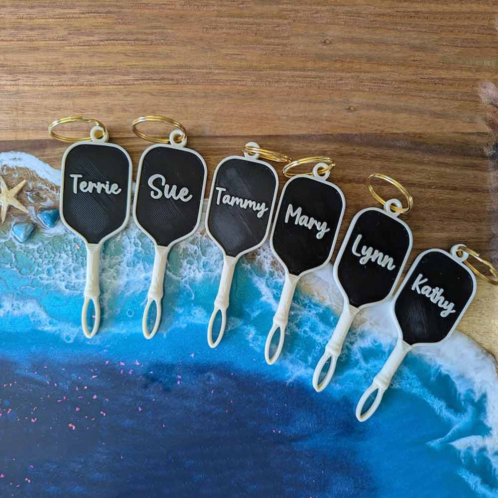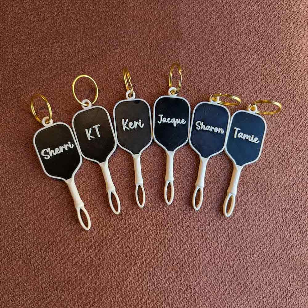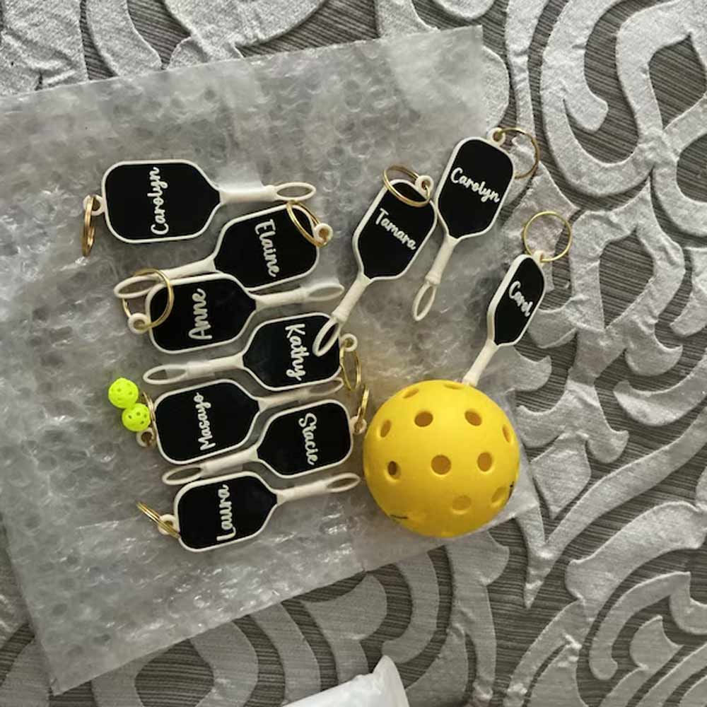 This handy keychain serves as a ball holder - the ball goes on and off easily (works best with Franklin X-40 type balls). It is also customizable for that special personal touch! Note: Not including the ball