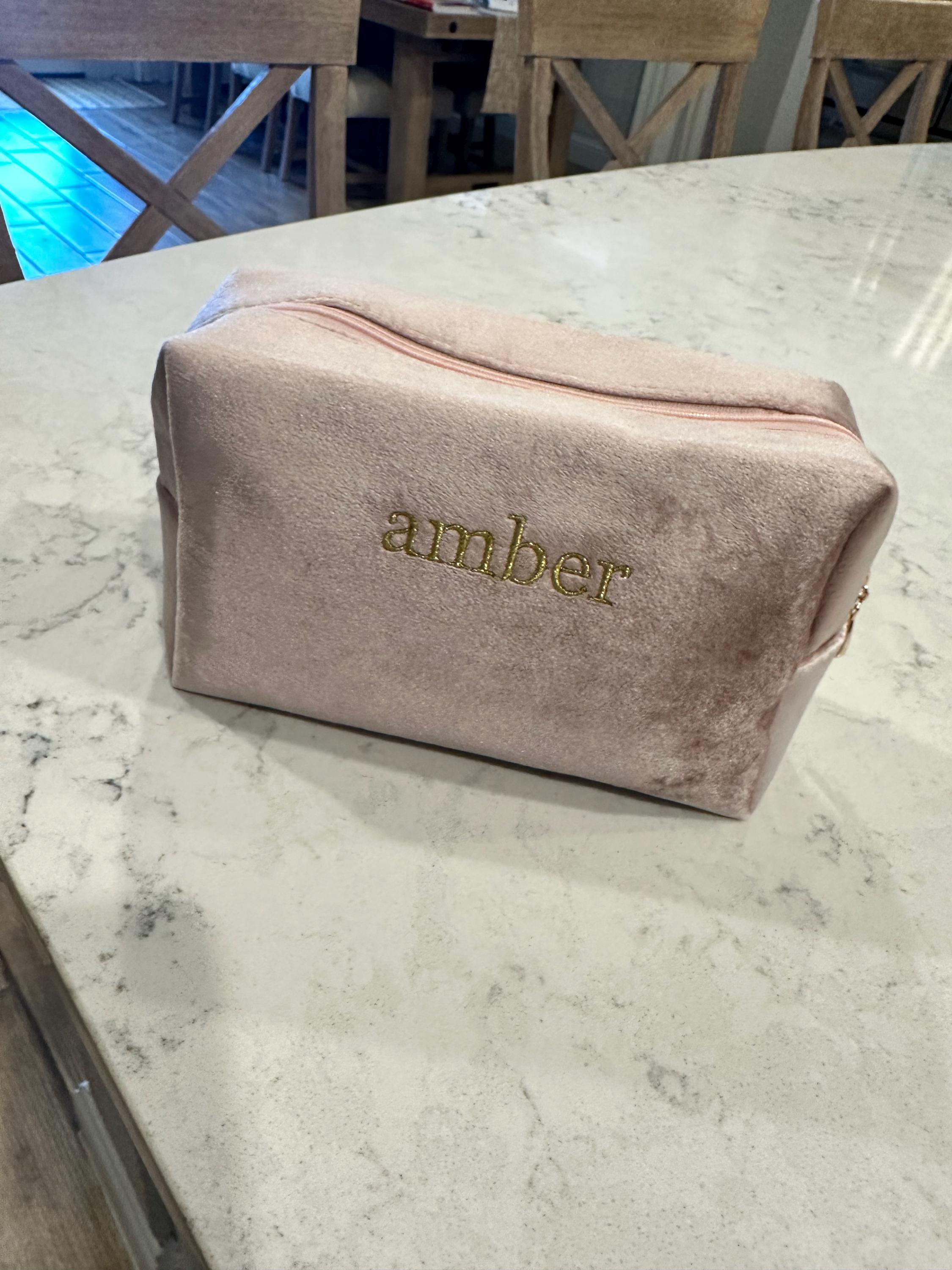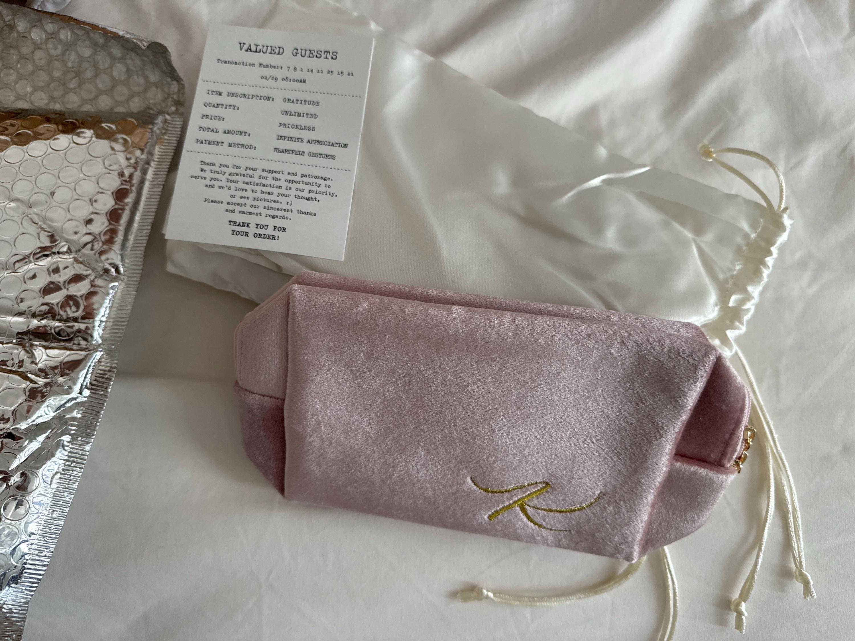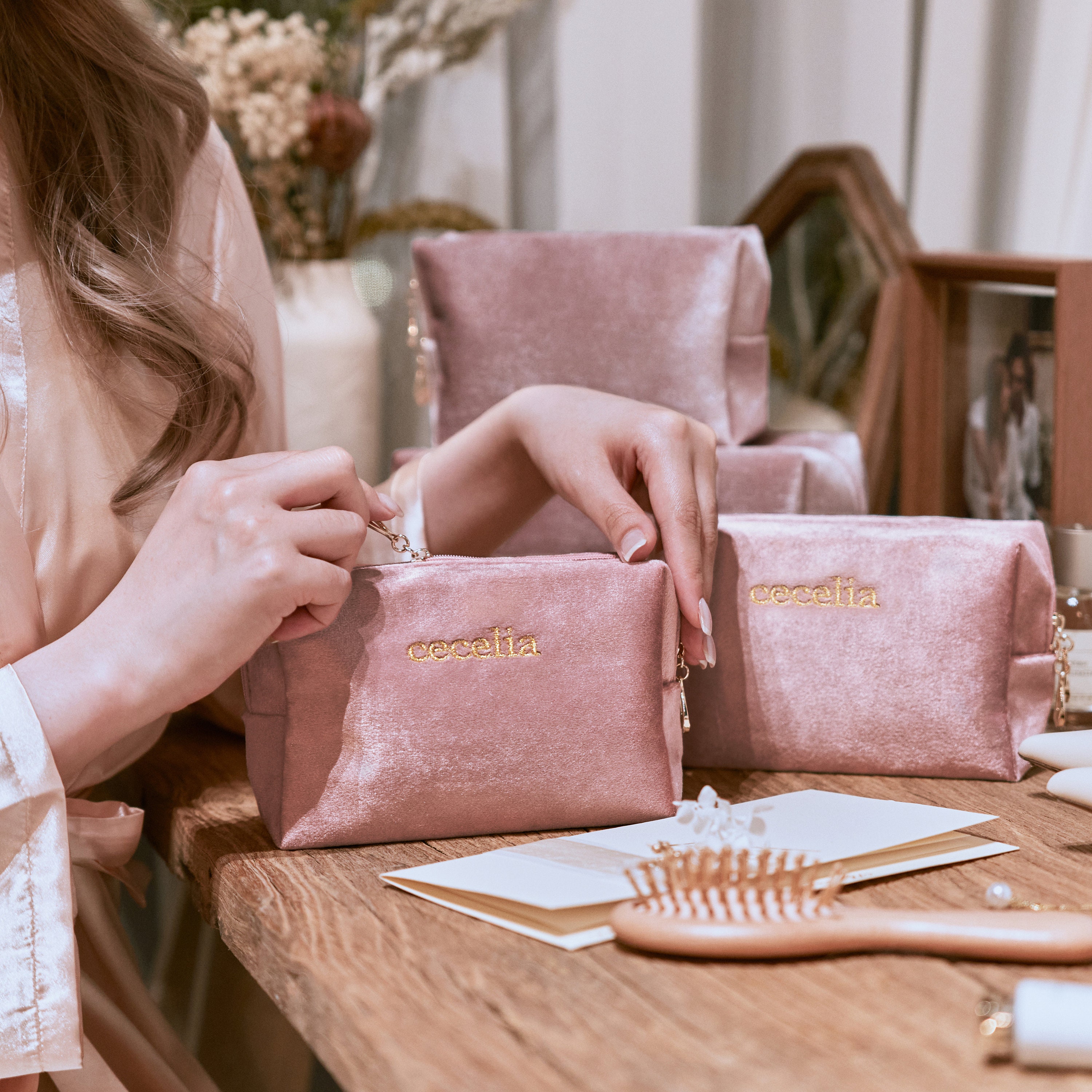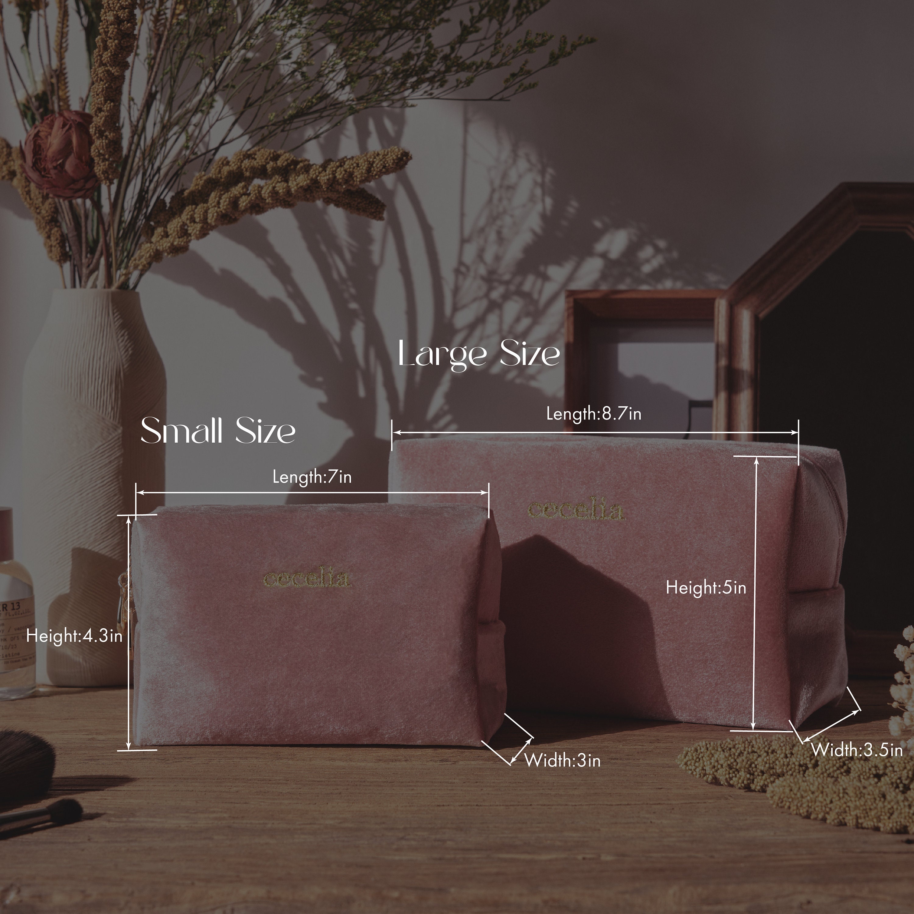 Looking for a standout gift? Dive into our personalized velvet makeup bags! Crafted from exquisite Italian velvet and topped with sleek metal zippers, they're available in two sizes: