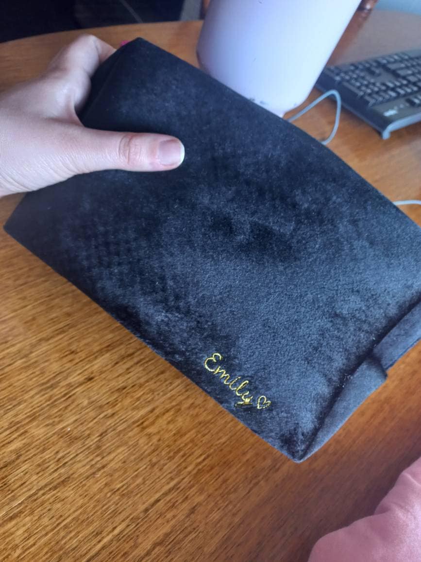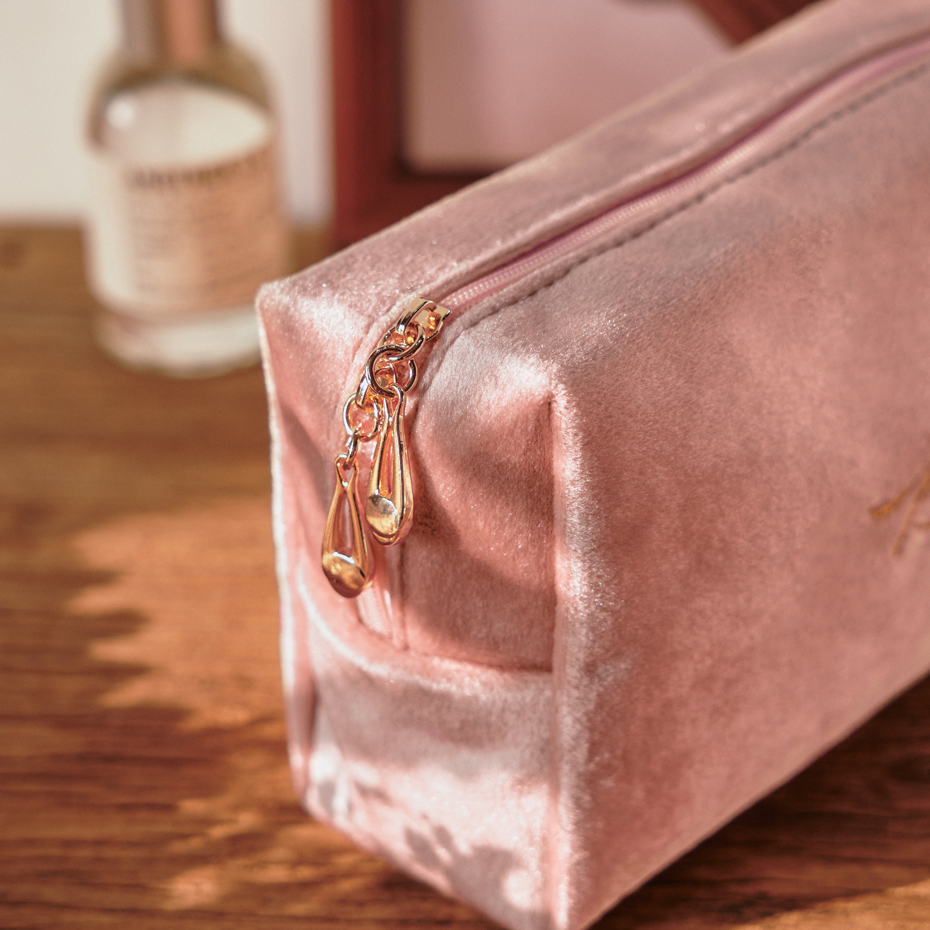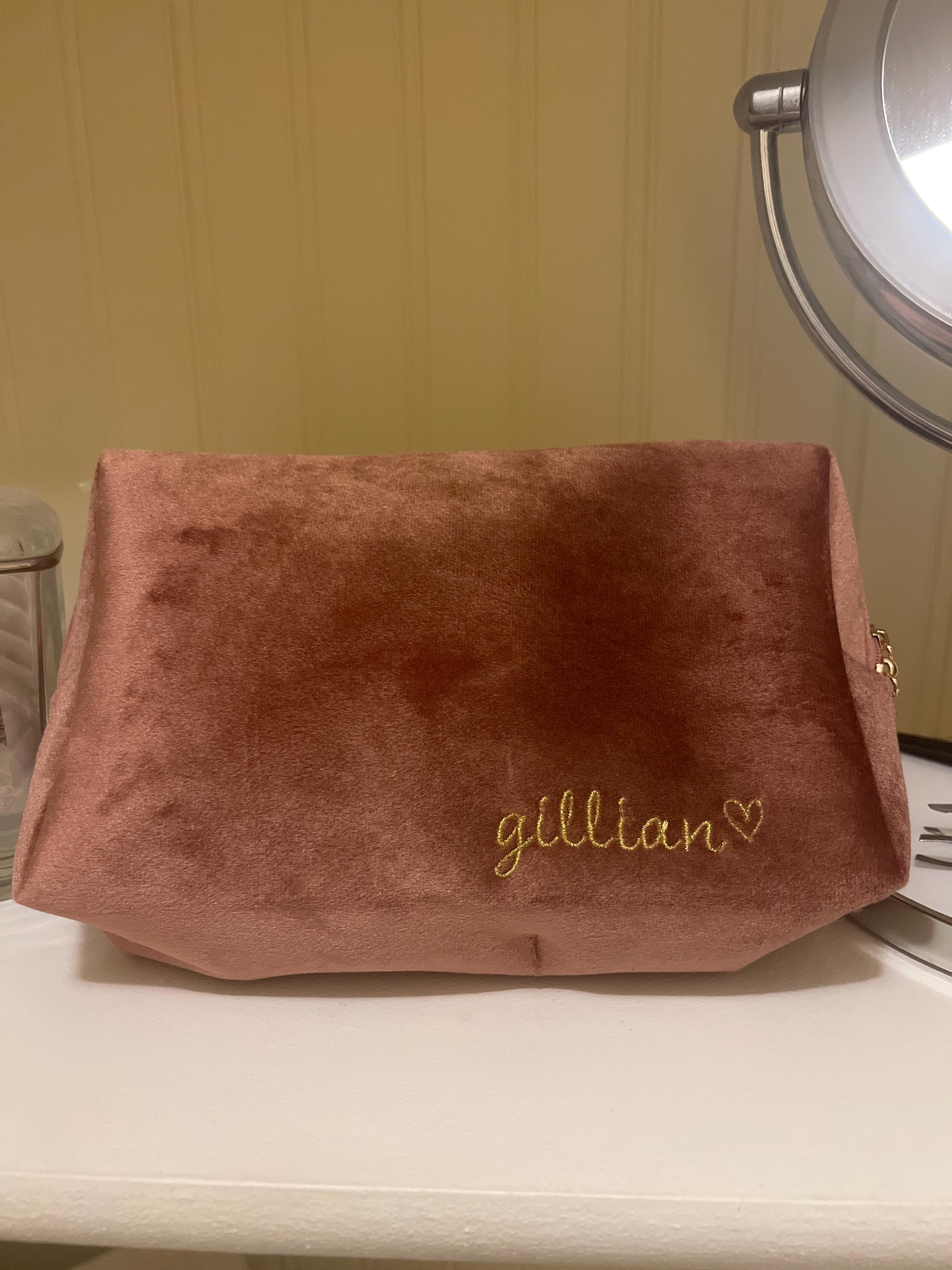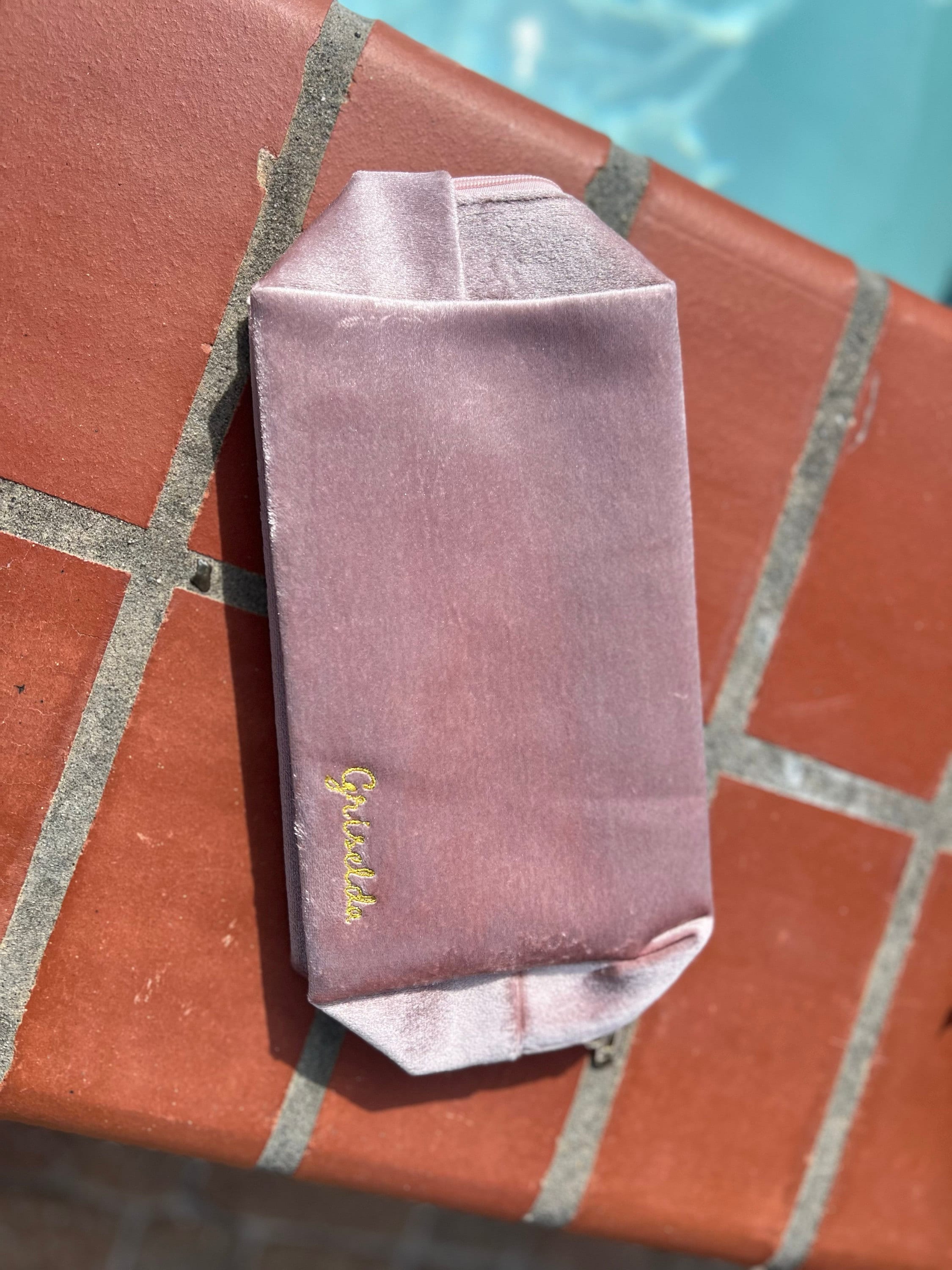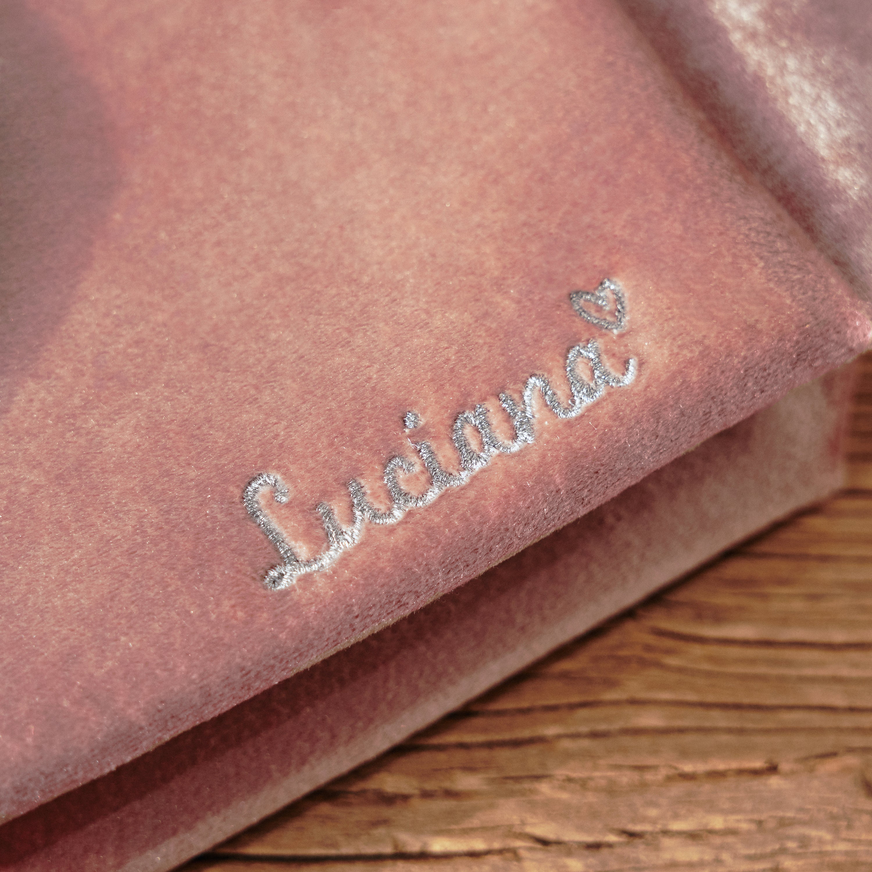 Looking for a standout gift? Dive into our personalized velvet makeup bags! Crafted from exquisite Italian velvet and topped with sleek metal zippers, they're available in two sizes: