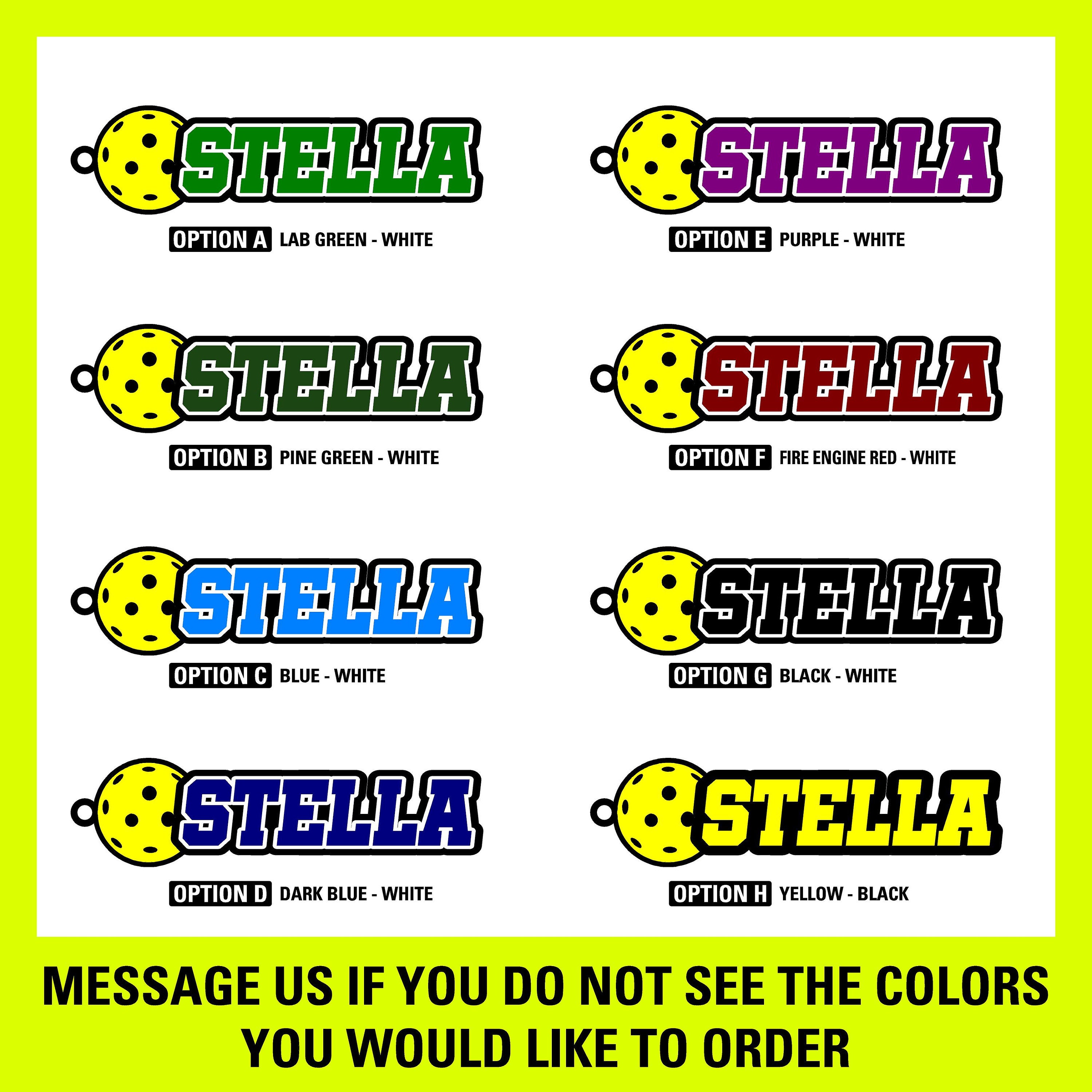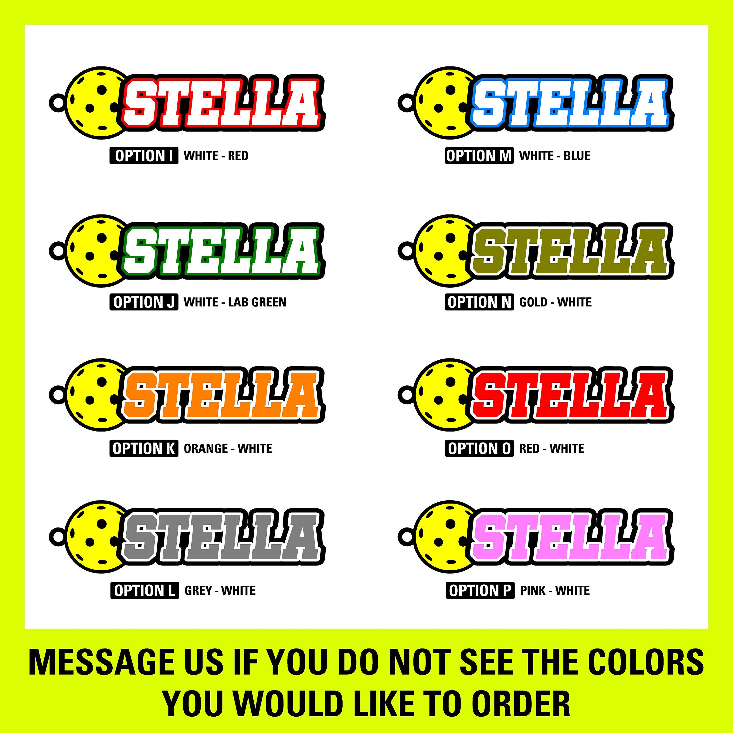 Elevate your keychain's design with a striking bright yellow pickleball, adding a pop of color that captures the essence of this beloved sport. Please note that the pickleball color is fixed and cannot be changed, maintaining a vibrant and eye-catching appearance.