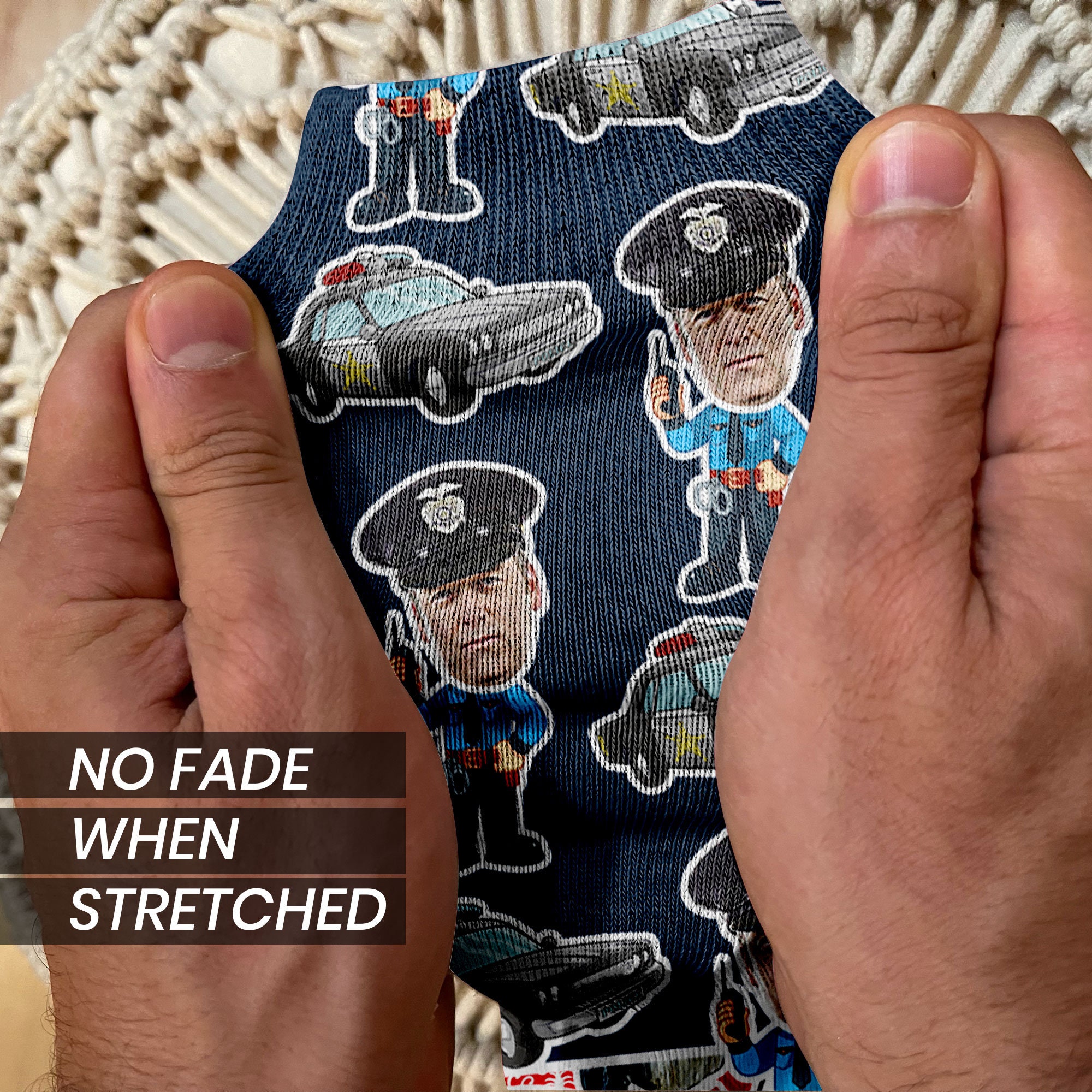 We know how hard it may be to find a truly unique gif for coworkers, bosses, dad, husband and friends that simply love to be a law enforcement officer so we came up with these fully customizable cartoon police socks for you!