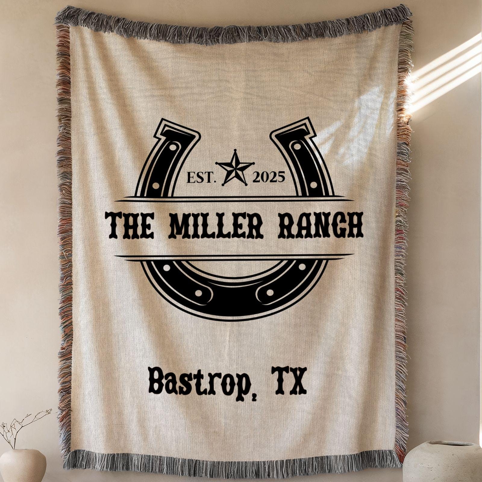 Bring warmth and charm to any ranch home with this custom woven blanket. Personalized for families, grandparents, or cowboy lovers, it’s a thoughtful gift and keepsake that celebrates your ranch life in style. Perfect as a unique family or home gift.