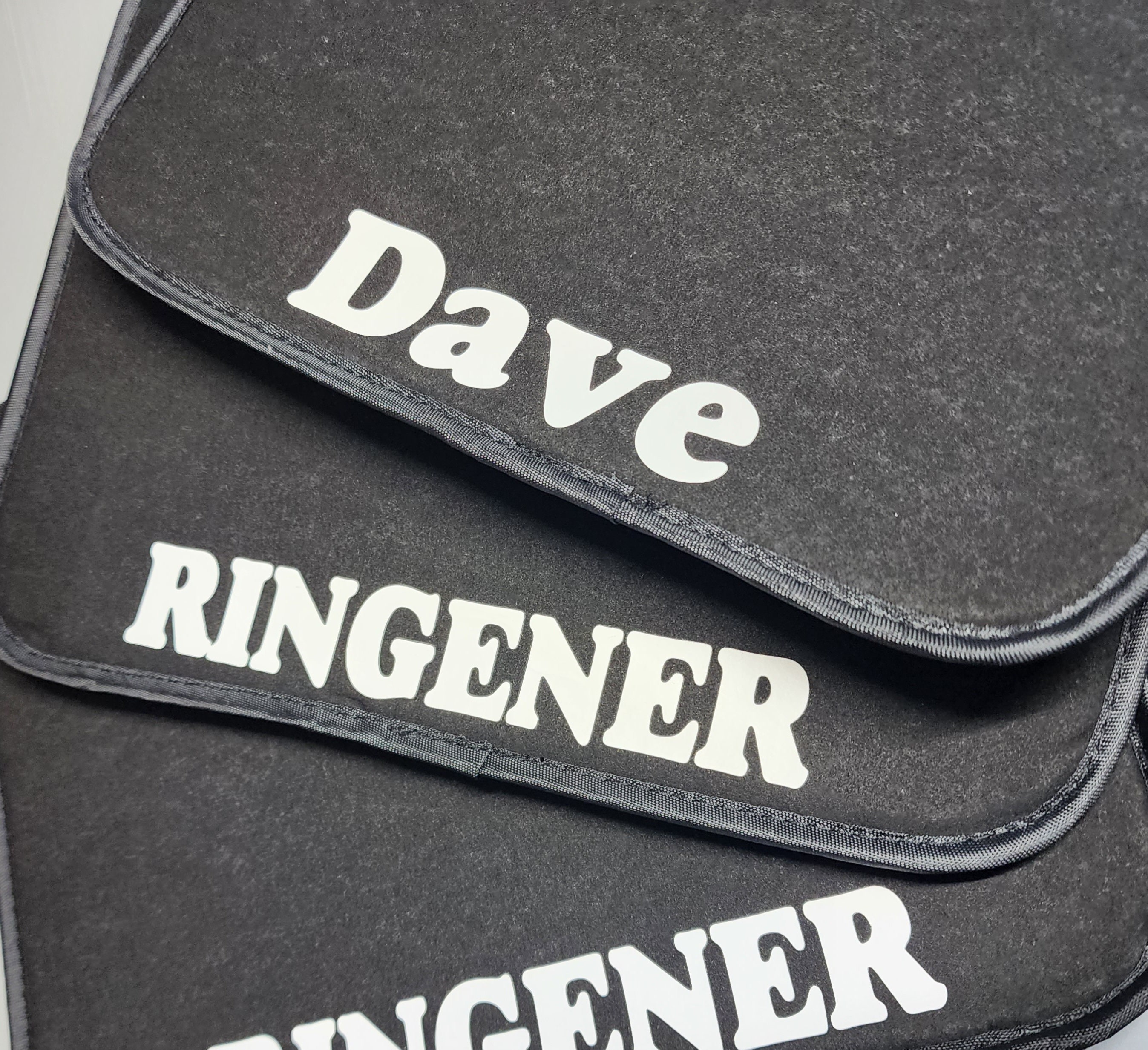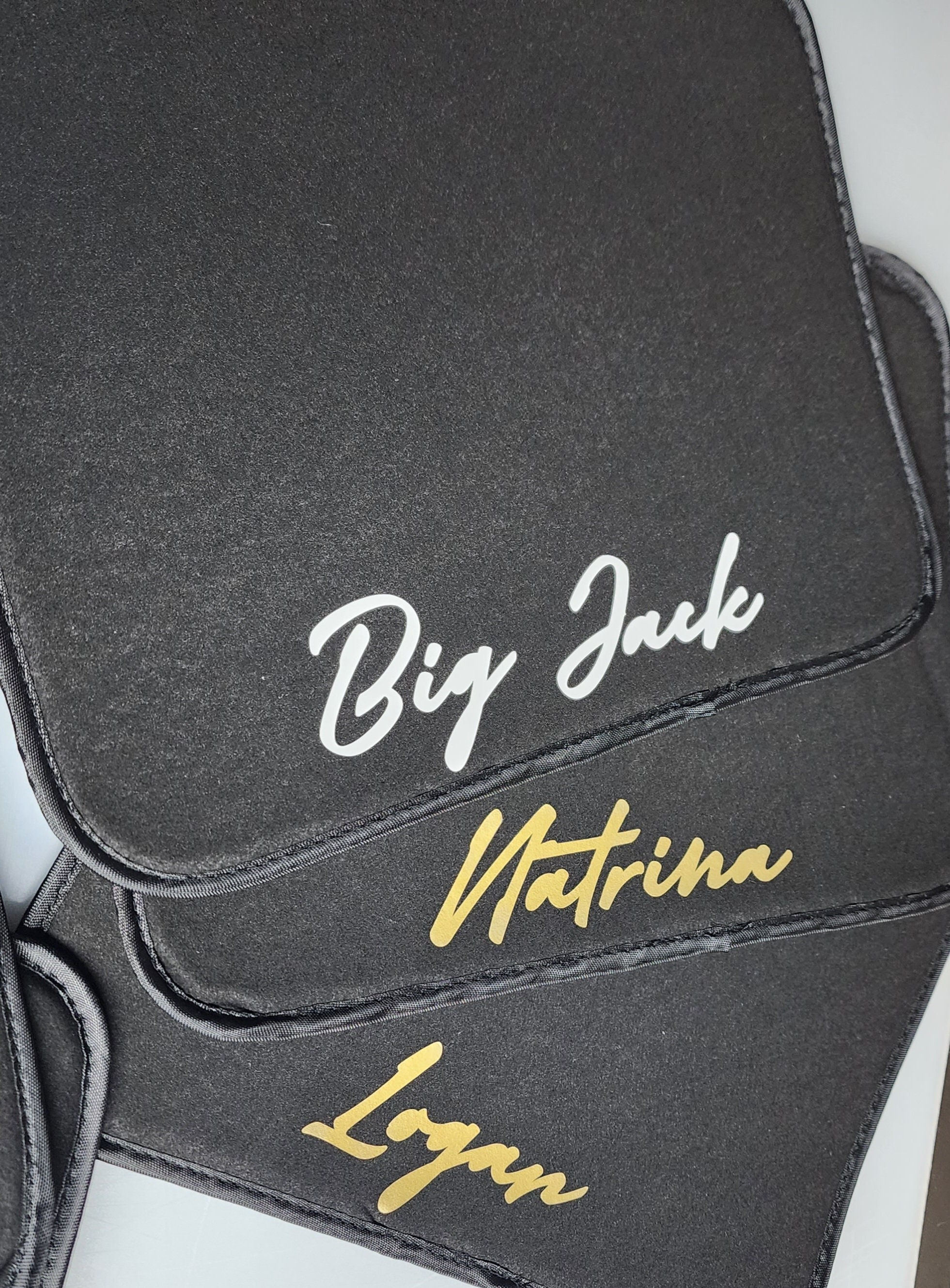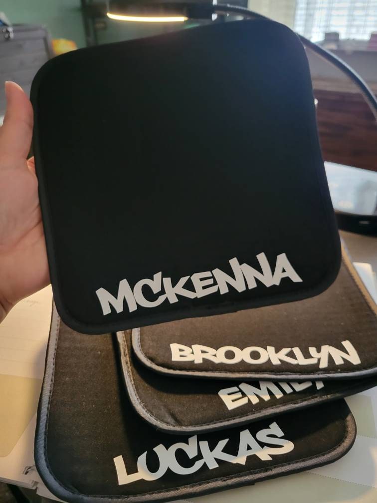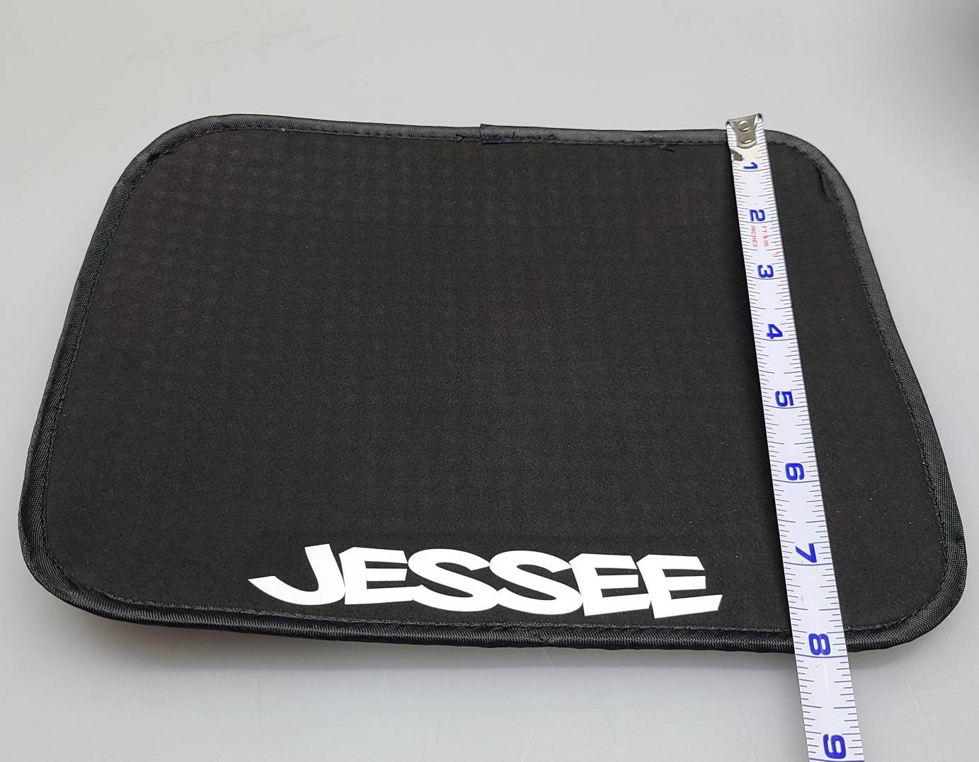 Name will be at the bottom of the shammy. About 1" tall lettering.