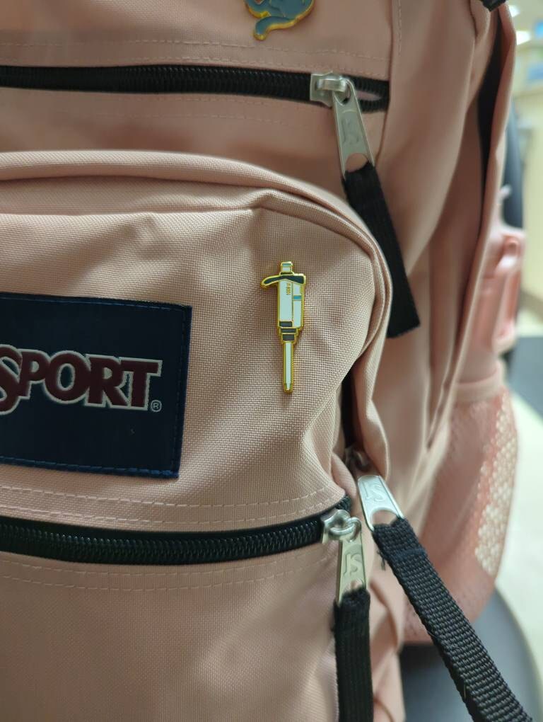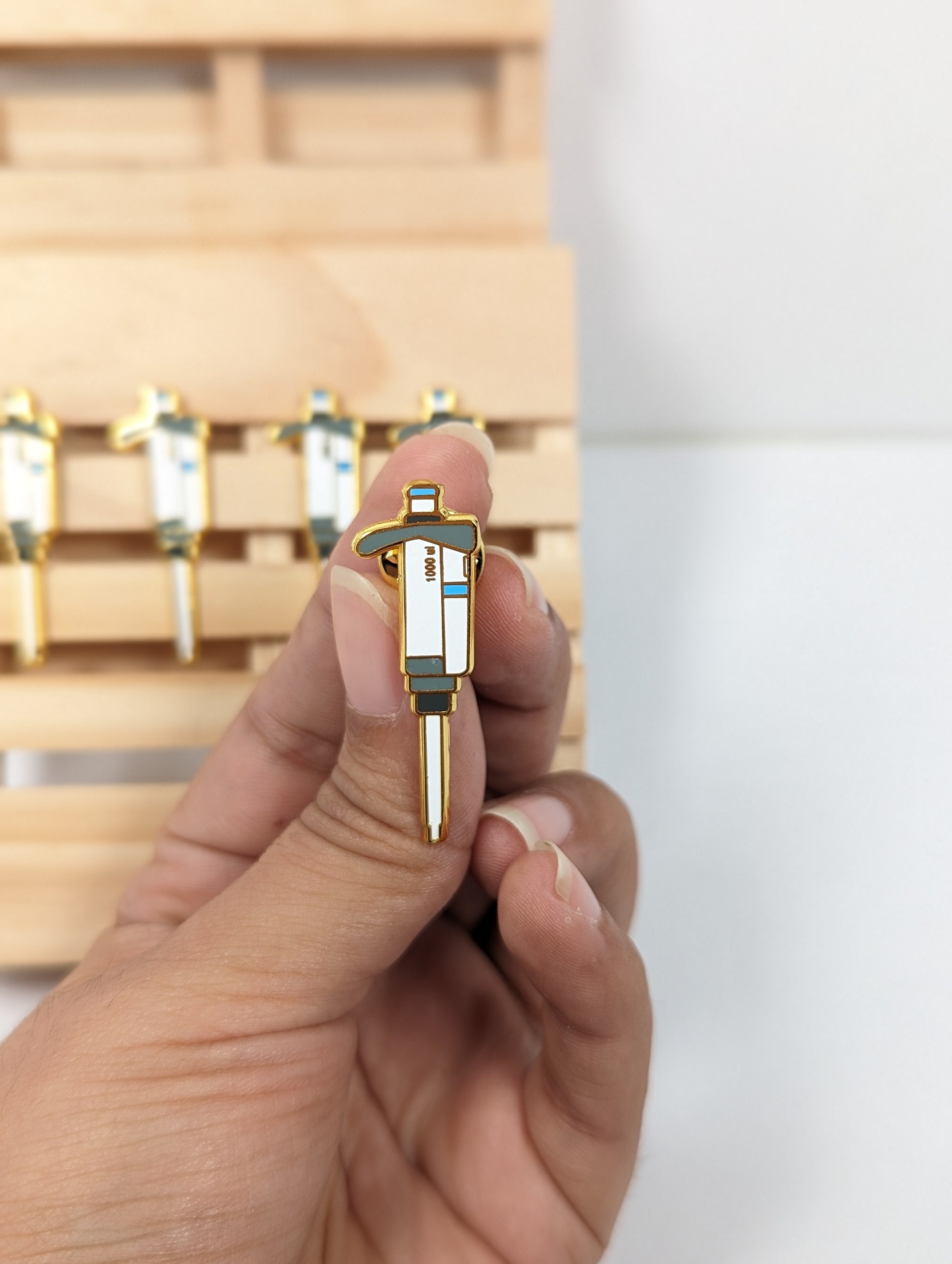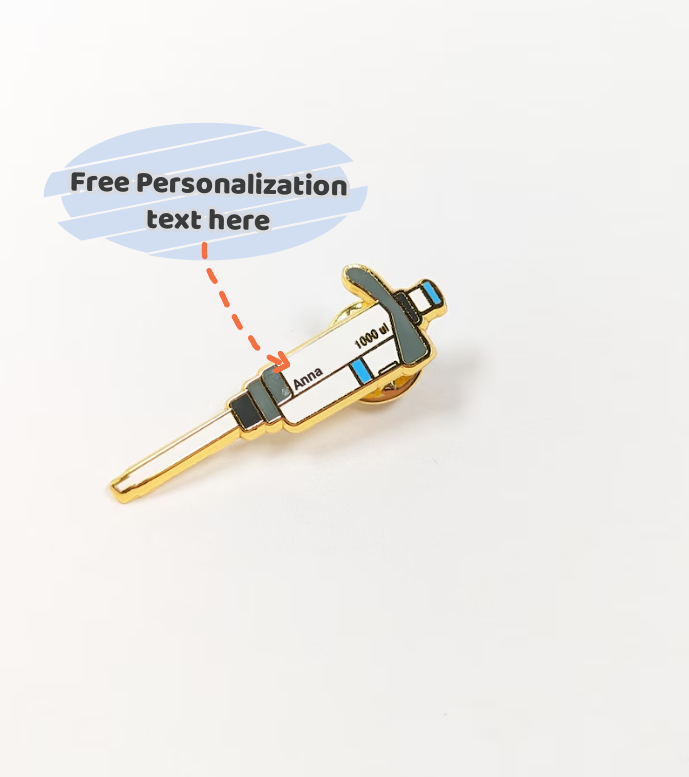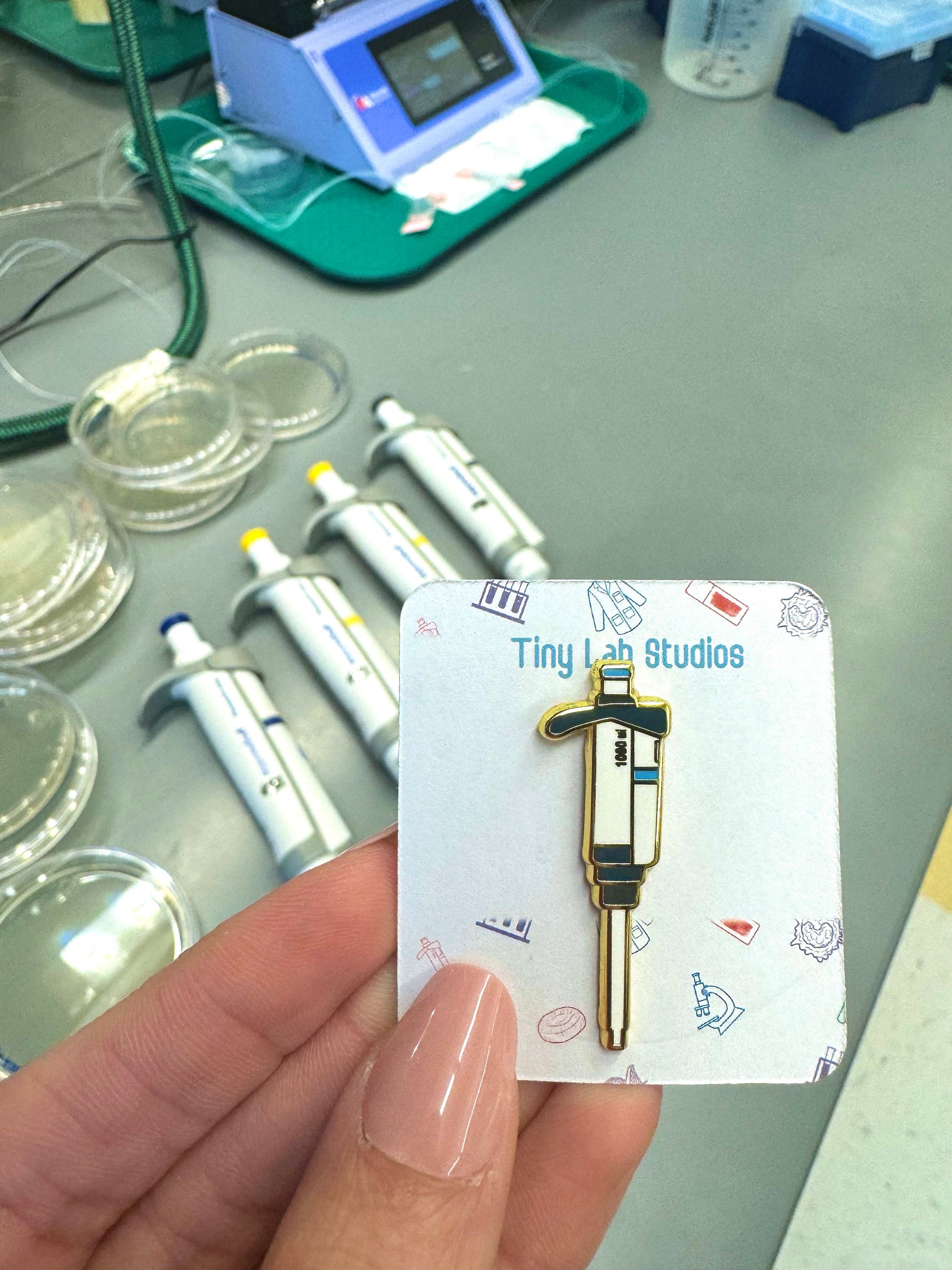 This micropipette won't need any calibration! One of the best friends of every lab tech made into a cute pin. Add this super cute 1000 uL manual micropipette to your lanyard/badge to show off in the lab or to simply add to your collection. It's the perfect gift for that awesome tech, chemist, or student who dreams with these pipettes. This is a light blue 1000 uL micropipette hard enamel pin with a gold plating and a gold metal backing for extra security. Add on a magnetic backing to show off in your locker!