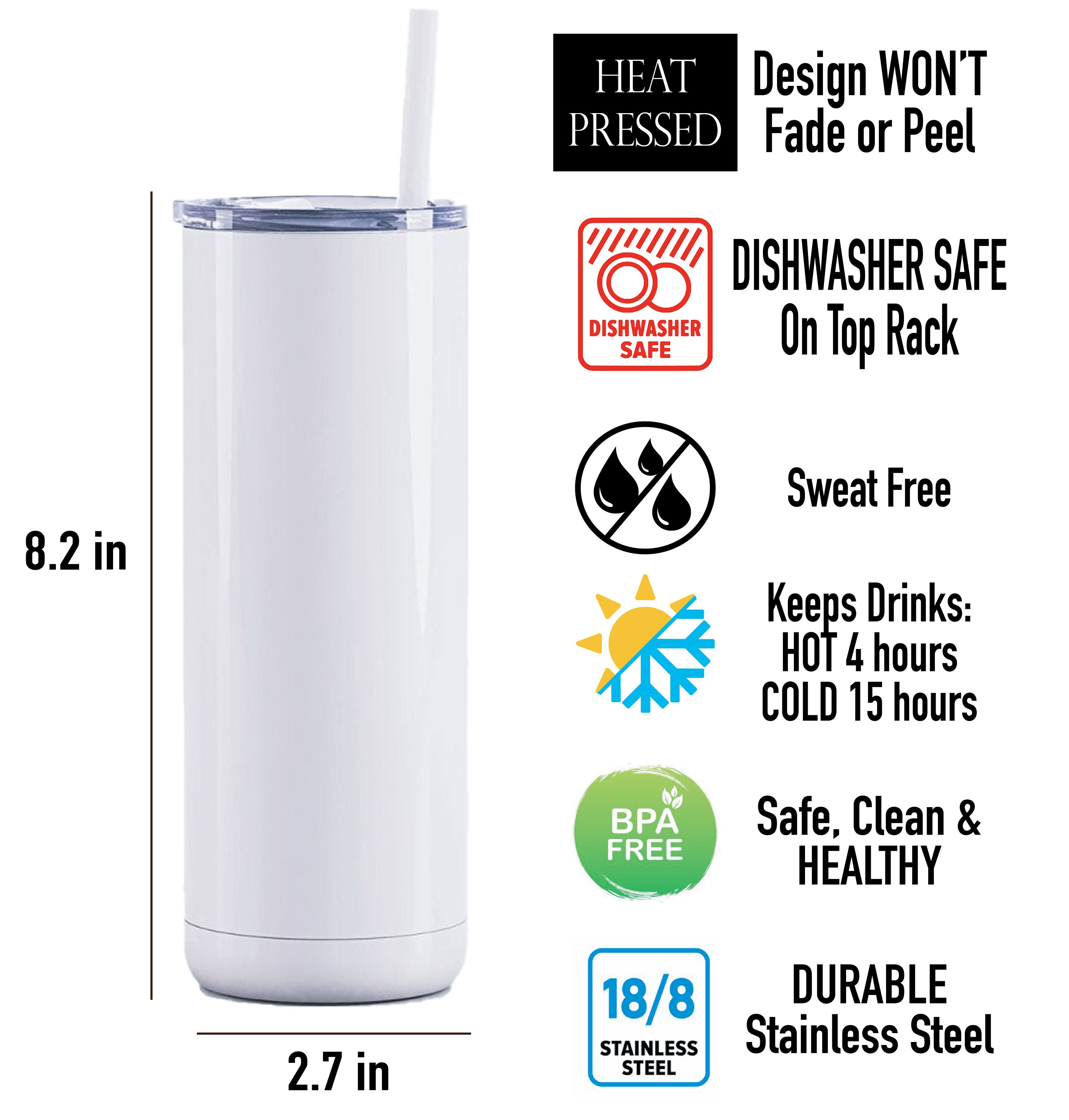 Our sublimation tumblers are professionally heat-pressed and the ink is deposited directly into the tumbler for a smooth finish that won't wash or peel off. Hand-washing is encouraged to preserve the longevity of your tumbler.