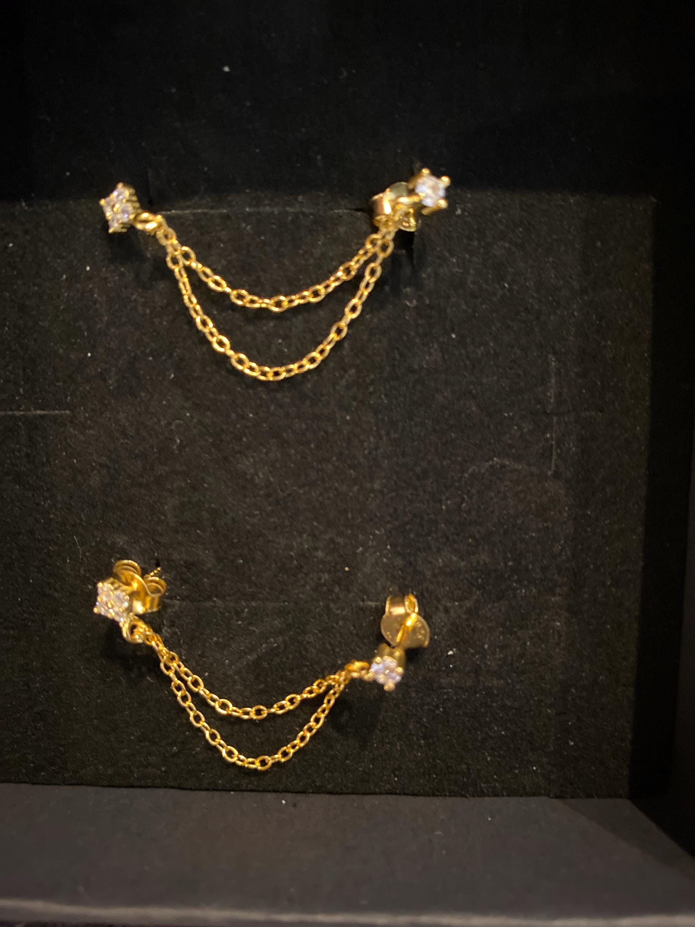 - Chic Design: Features a combination of diamond studs and gold dangling chains, creating a unique and elegant look.