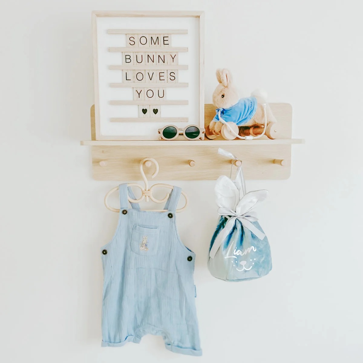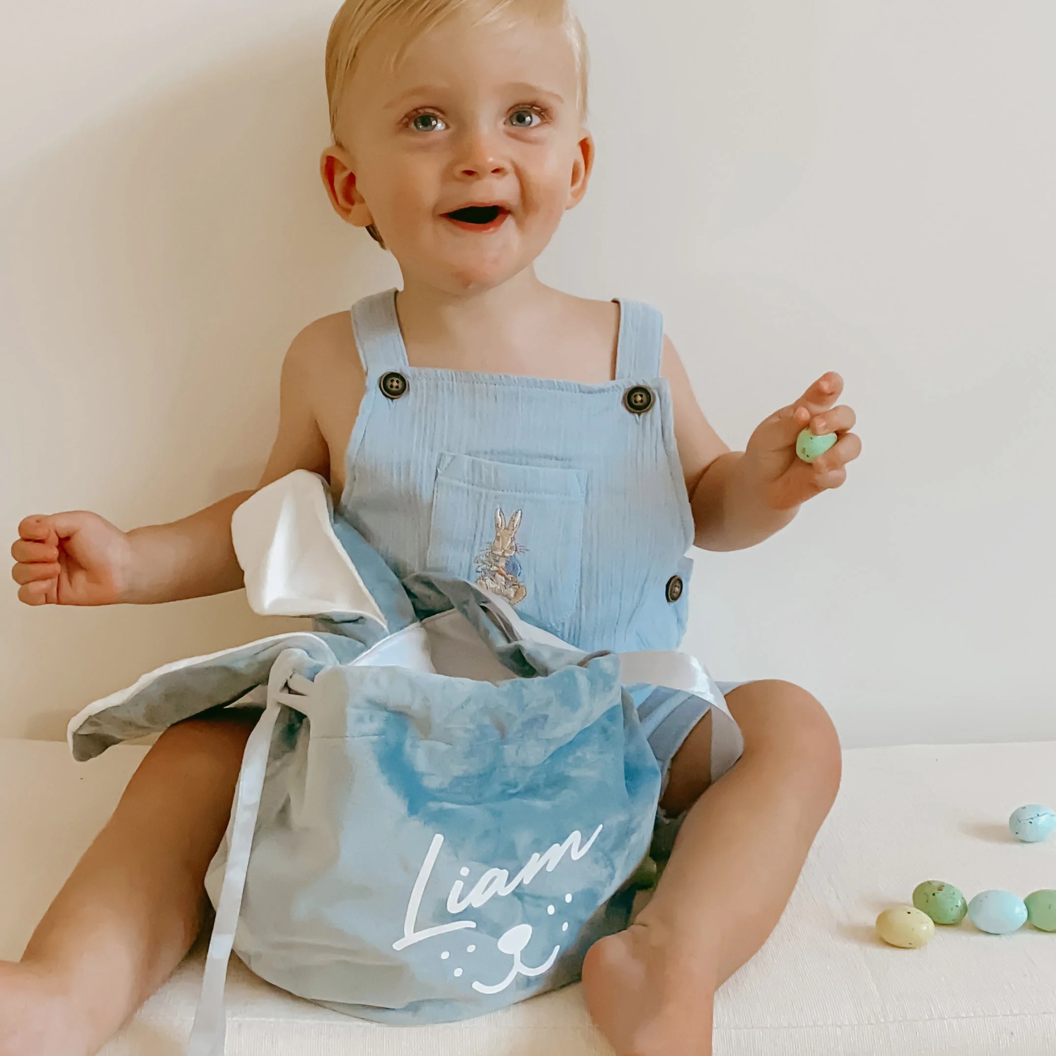 These adorable personalised bunny pouches are sure to delight your little ones on Easter morning. This gorgeous design is made from the softest velvet and boasts a fully enclosed satin ribbon drawstring to keep those Easter goodies secured. Generous sizing is 18cm diameter at the base and 18cm high... plus the ears add another 17cm.