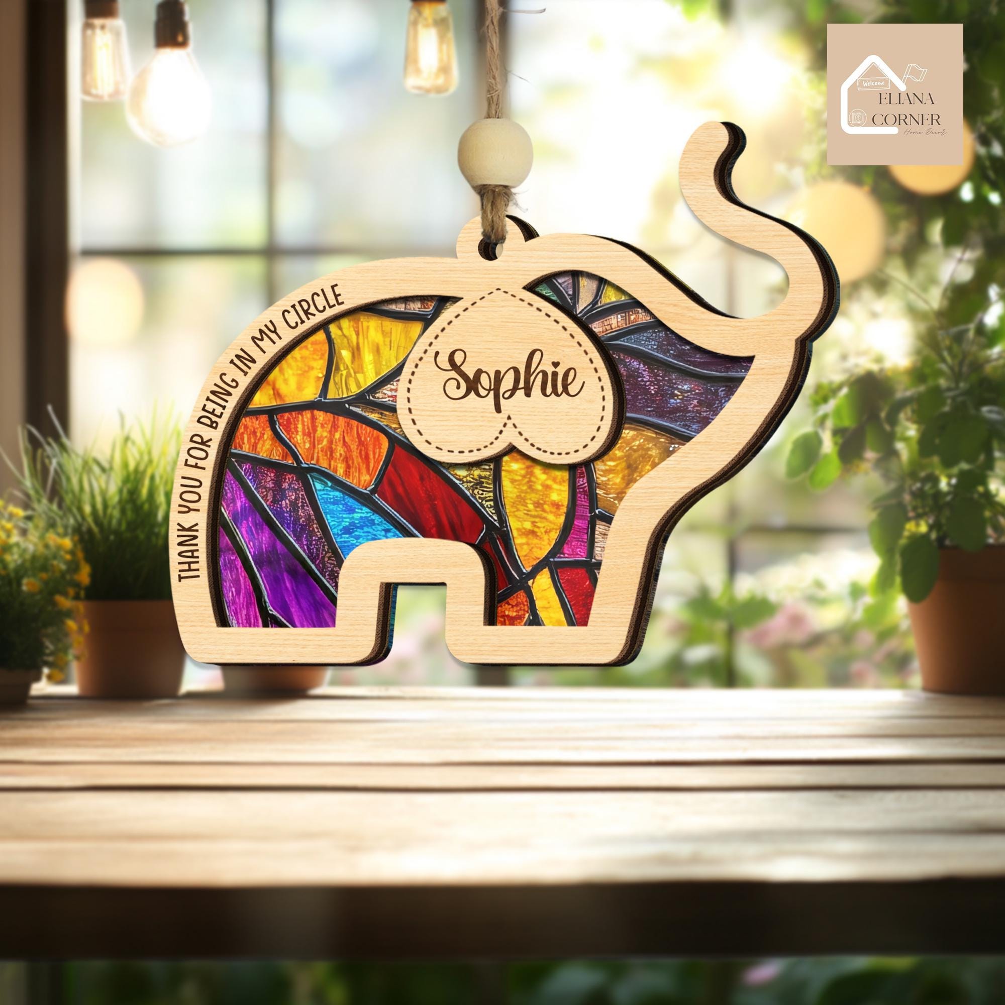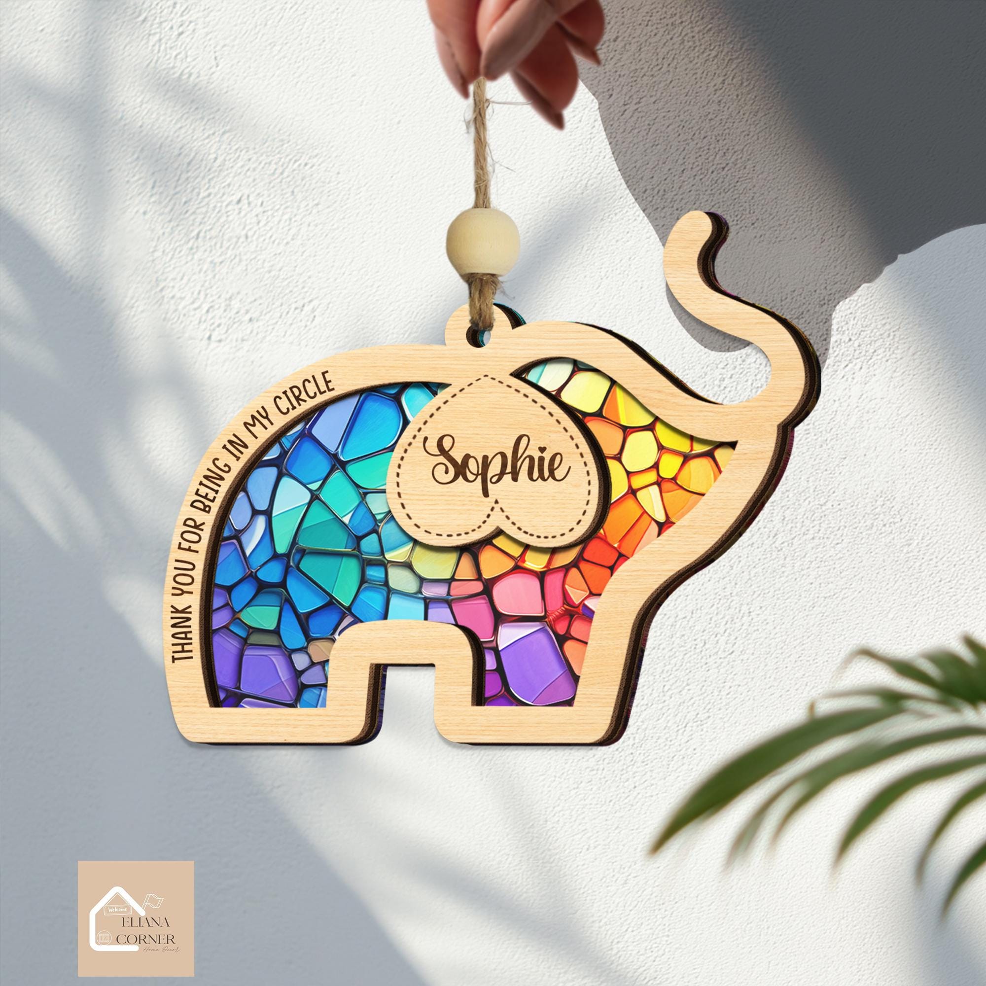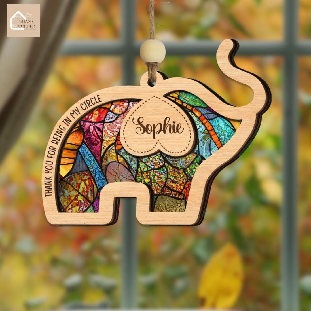 Elephant Friendship Suncatcher Ornament, Friend Ornament, Bestie Ornament, Personalized Best Friend Suncatcher, Friendship Thank You Gift
