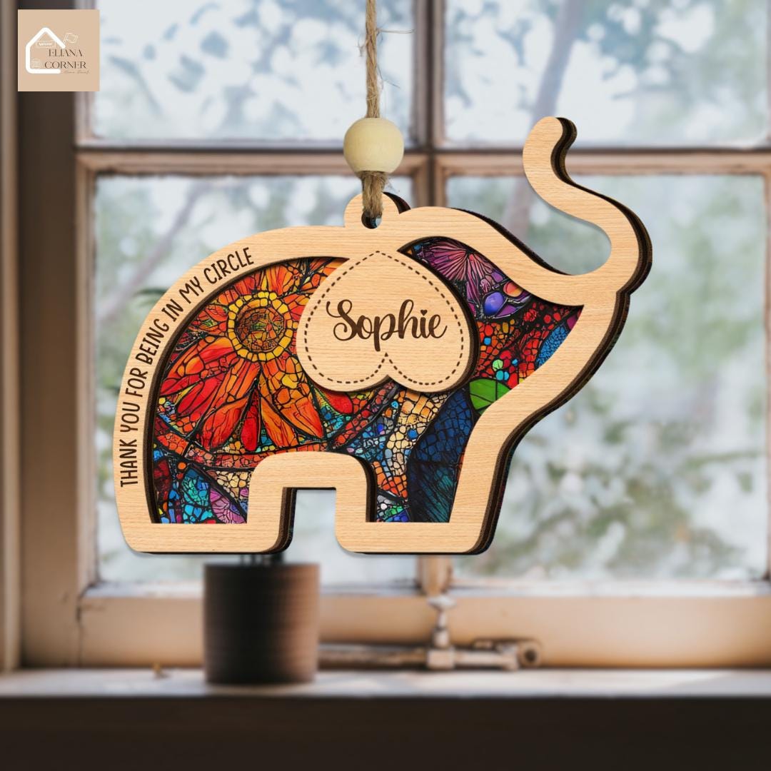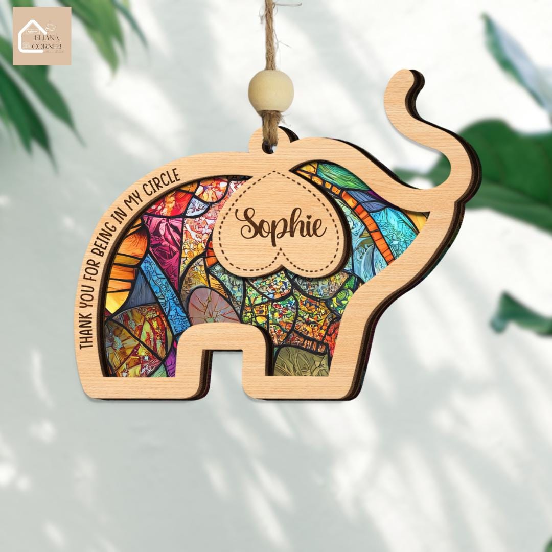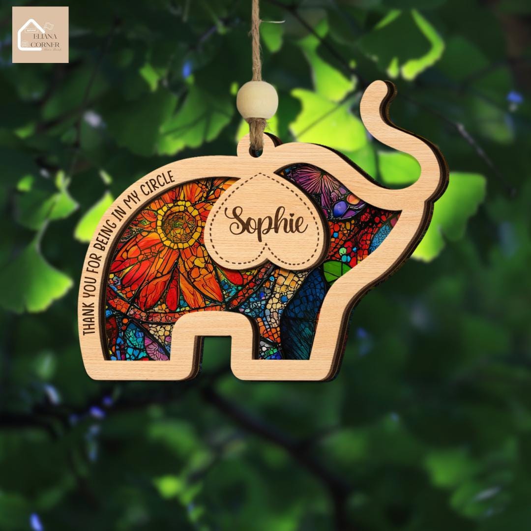 Elephant Friendship Suncatcher Ornament, Friend Ornament, Bestie Ornament, Personalized Best Friend Suncatcher, Friendship Thank You Gift