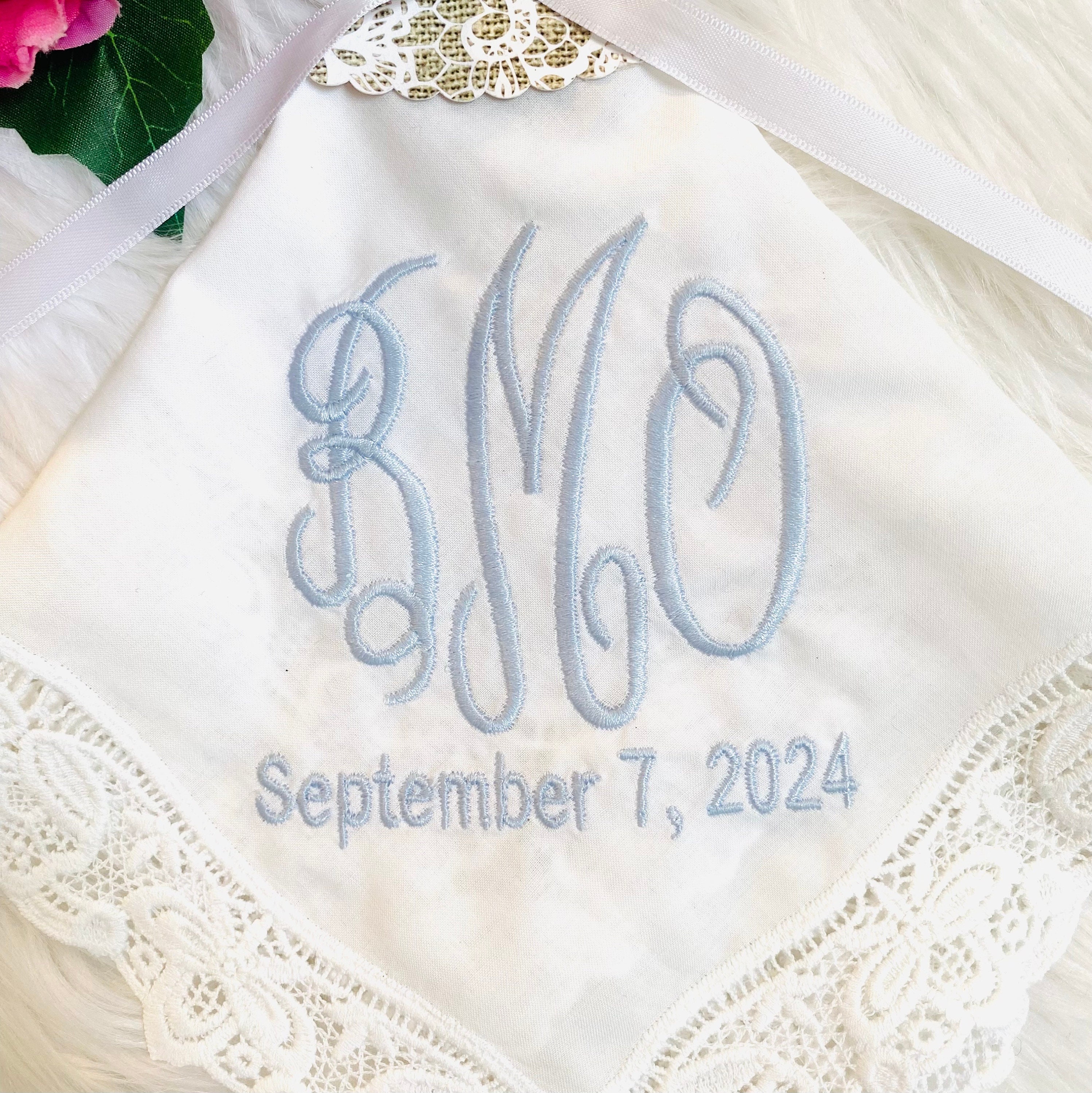 Personalized keepsakes to dry your tears of joy! Make your wedding extra special by getting your handkerchiefs personalized with a monogram. We offer very fast turnaround times.