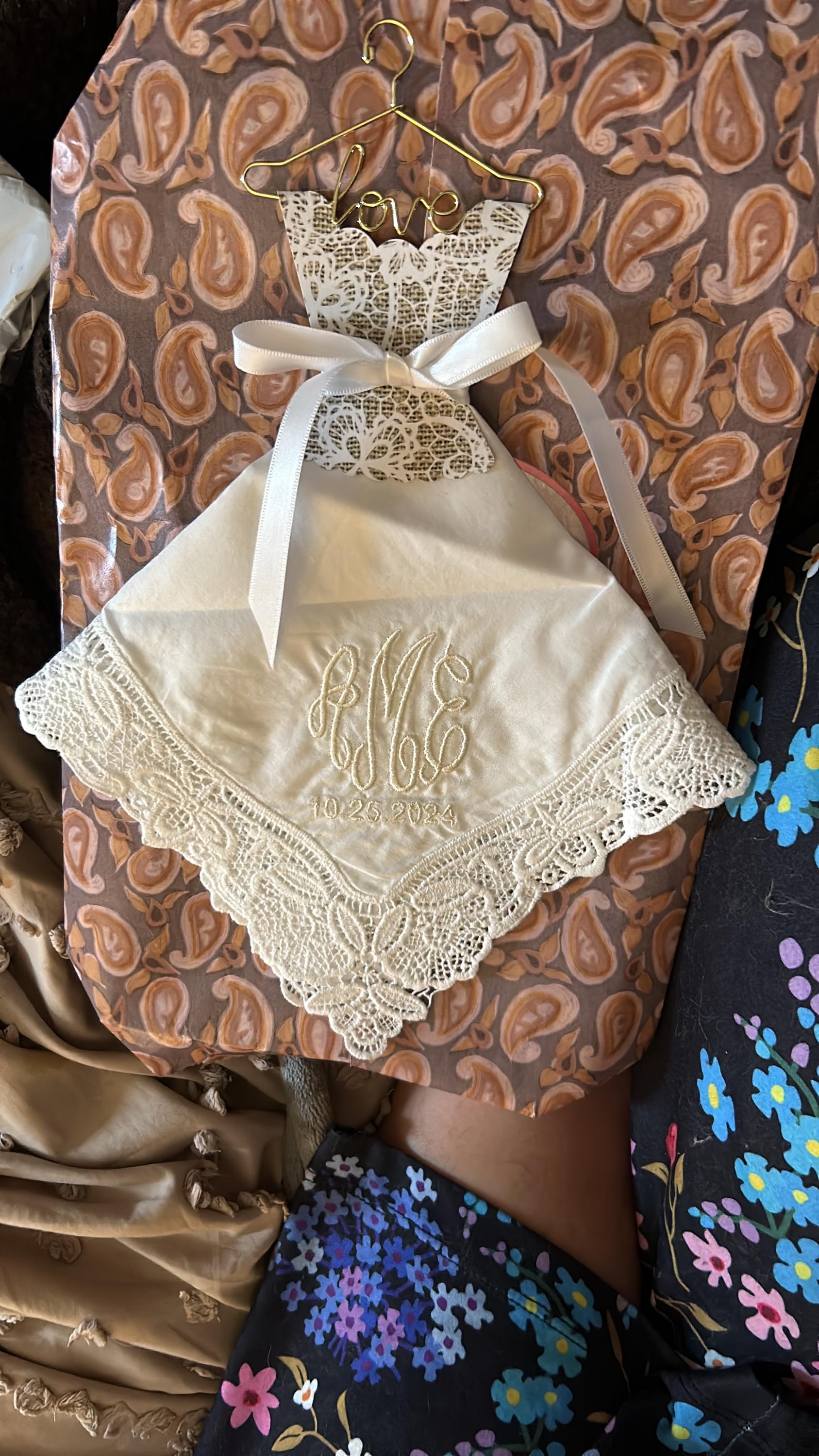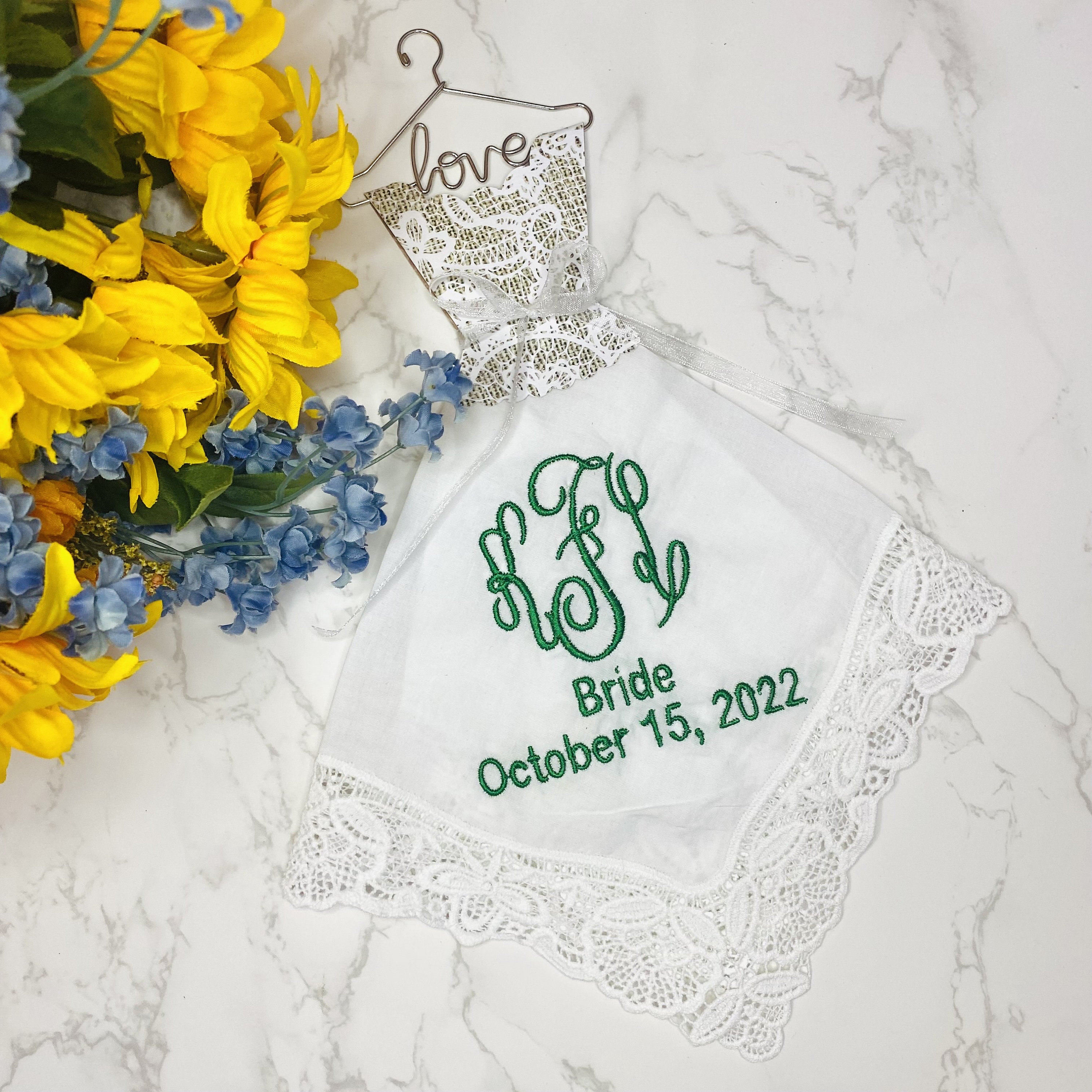 They make wonderful gifts for the bride and wedding party. Handkerchiefs are individually priced and includes the monogram.