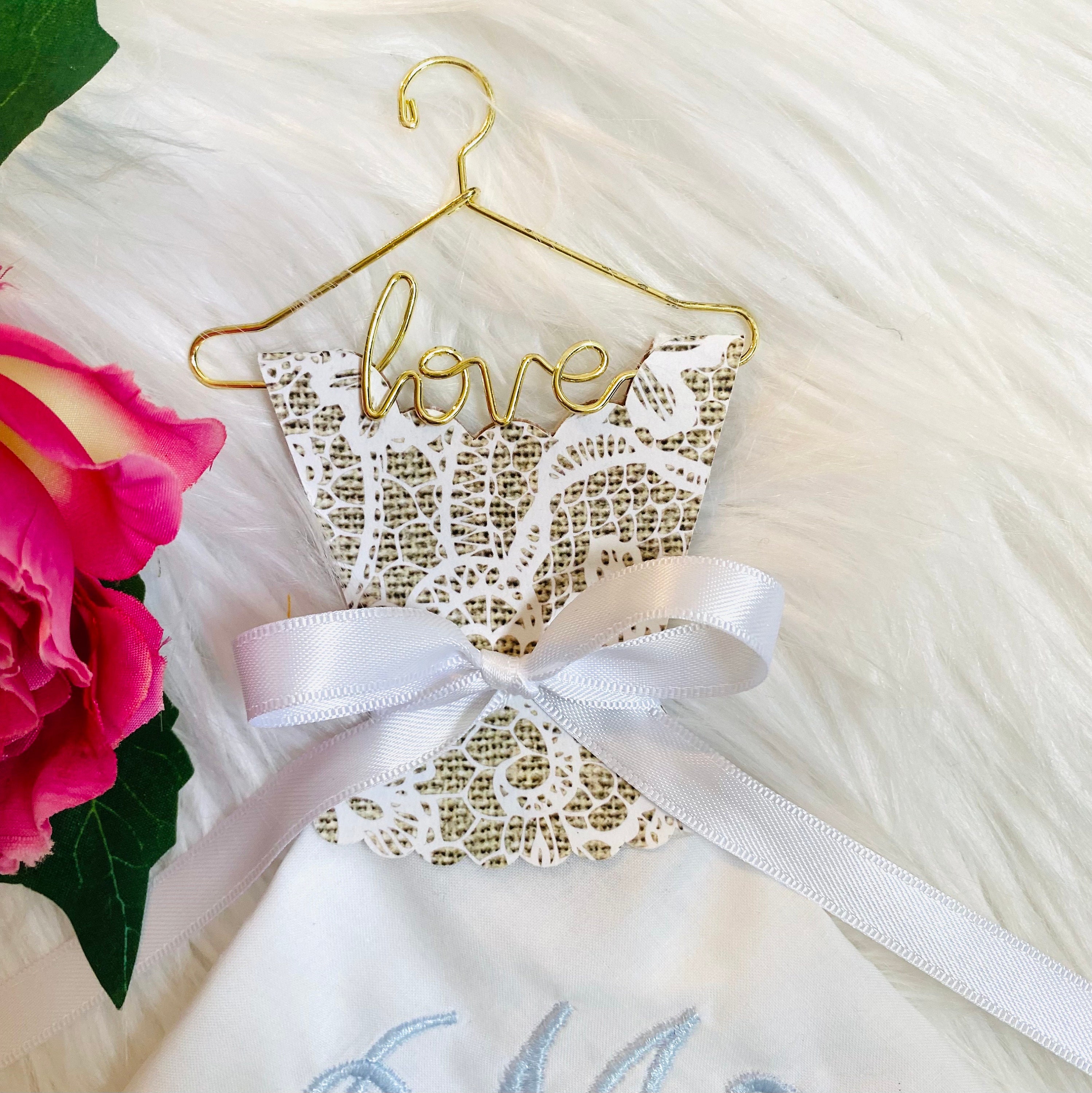 Our Bridal Embroidered Heirloom Handkerchief is stylishly folded to resemble a darling wedding dress.