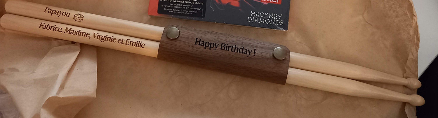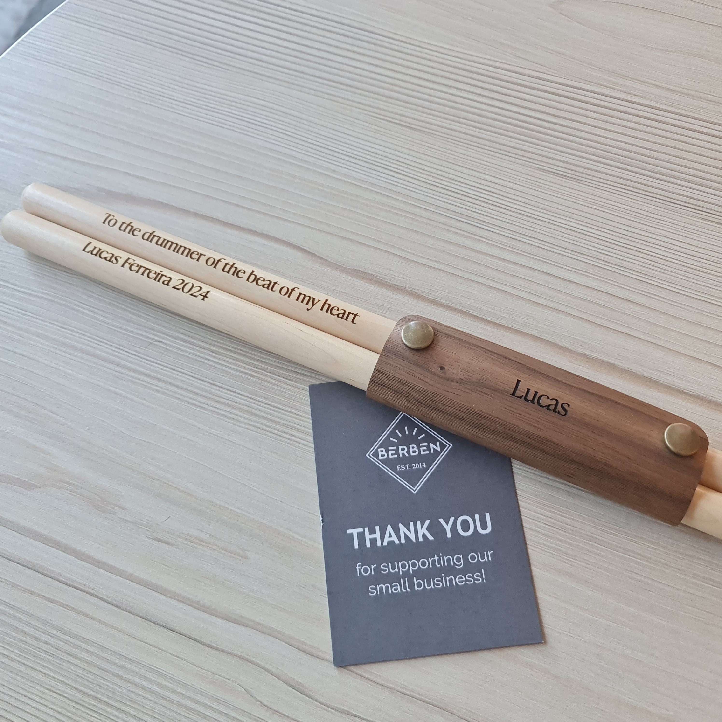 The perfect gift for every drummer: both drumsticks and the wooden holder can be engraved with a completely custom message! Wish them luck, quote their idol or commemorate your inside joke. It will put a smile on their face every time they play.