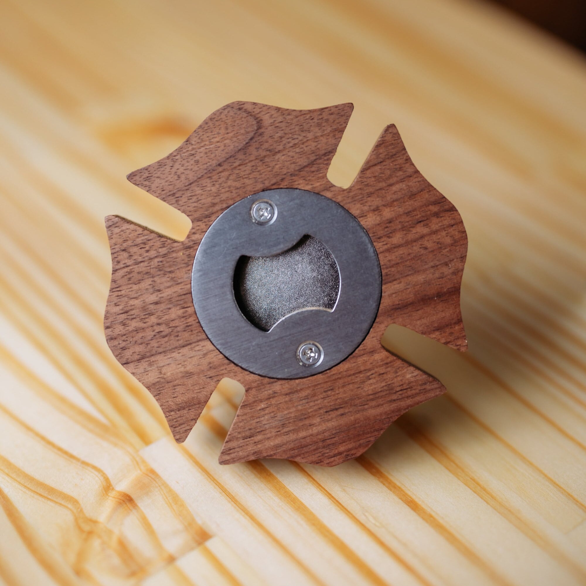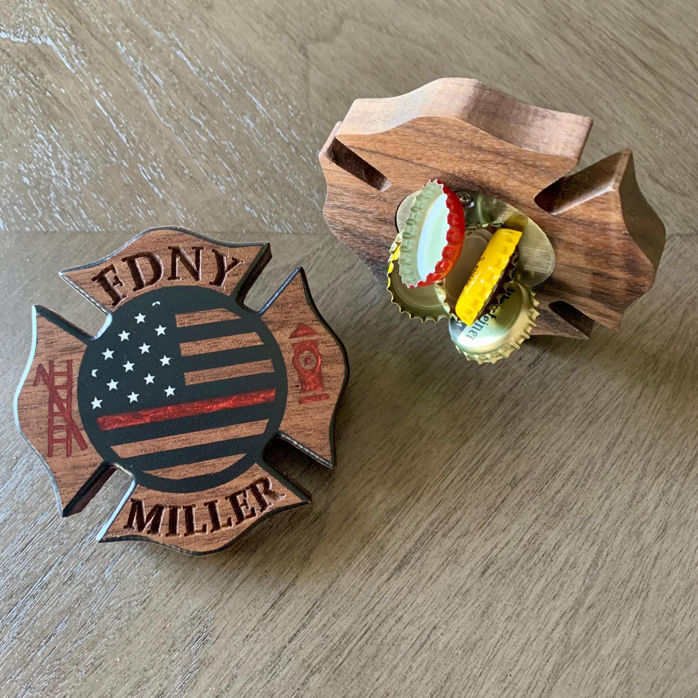 This firefighter thin red line bottle opener is the perfect gift for any fireman. Its not just dually functional but the Maltese cross design along with the resin inlay or engraving makes it aesthetically pleasing as well. Consider it a practical piece of art. Not only will it showcase your appreciation for that beloved fireman but it will also grab that little bottle cap at every pop of a bottle.