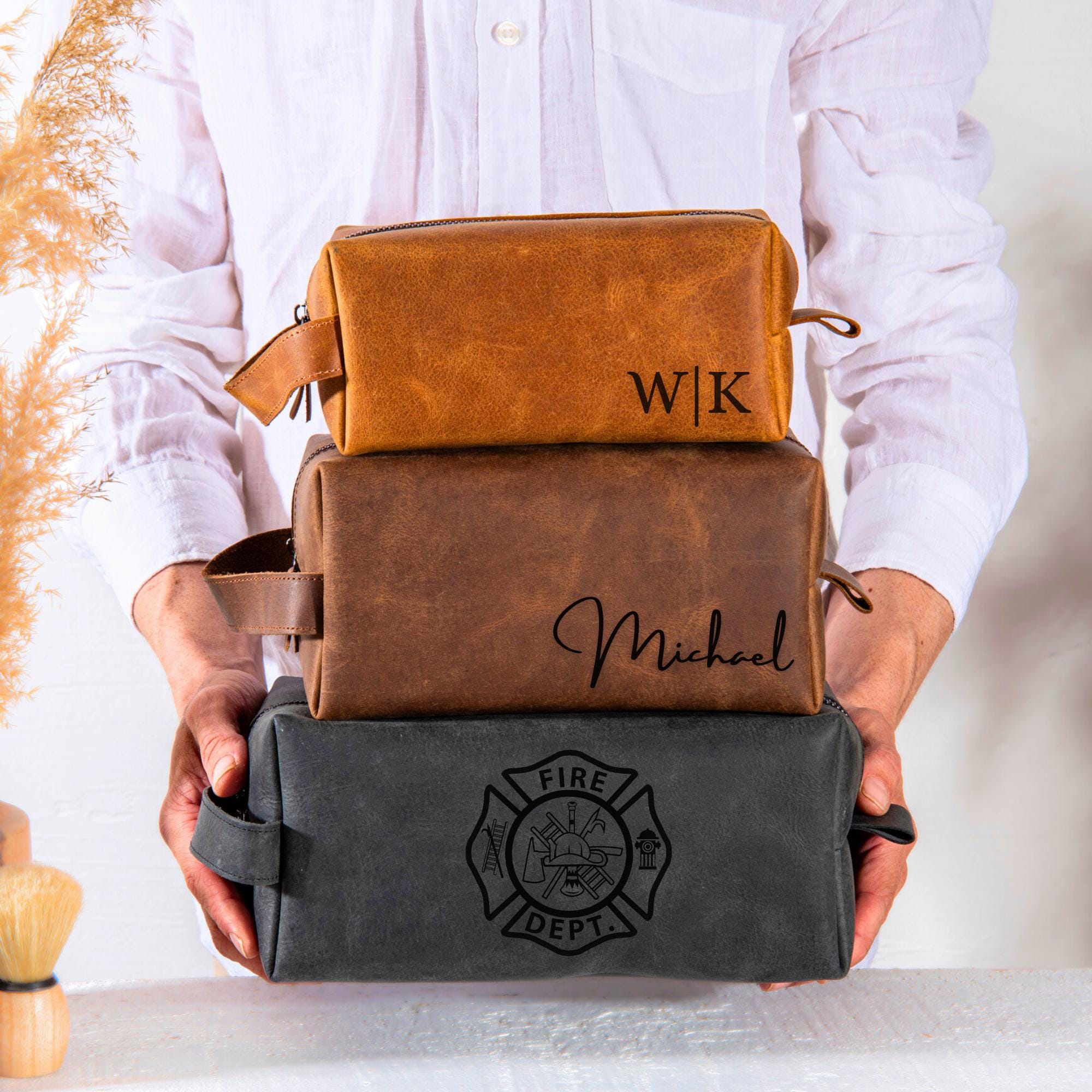 Our leather toiletry bags and Dopp kits make perfect gifts for men on Christmas, birthdays, and even weddings. Whether for your Best Man, Groomsmen, Boyfriend, Husband, Father, Dad, or Grandpa, these bags are a practical and stylish choice. They are built to last and are perfect for traveling the world or to and from the gym.
