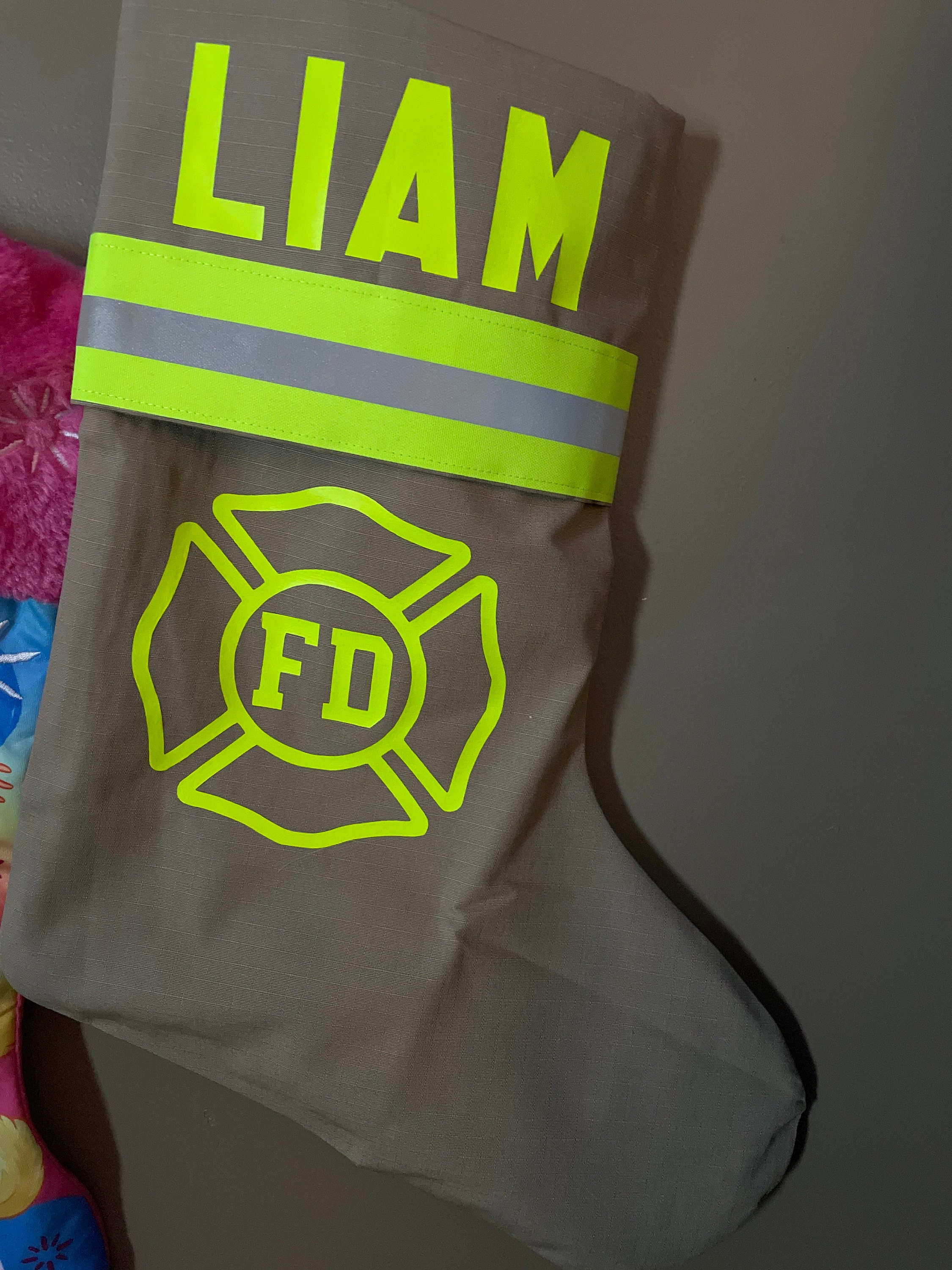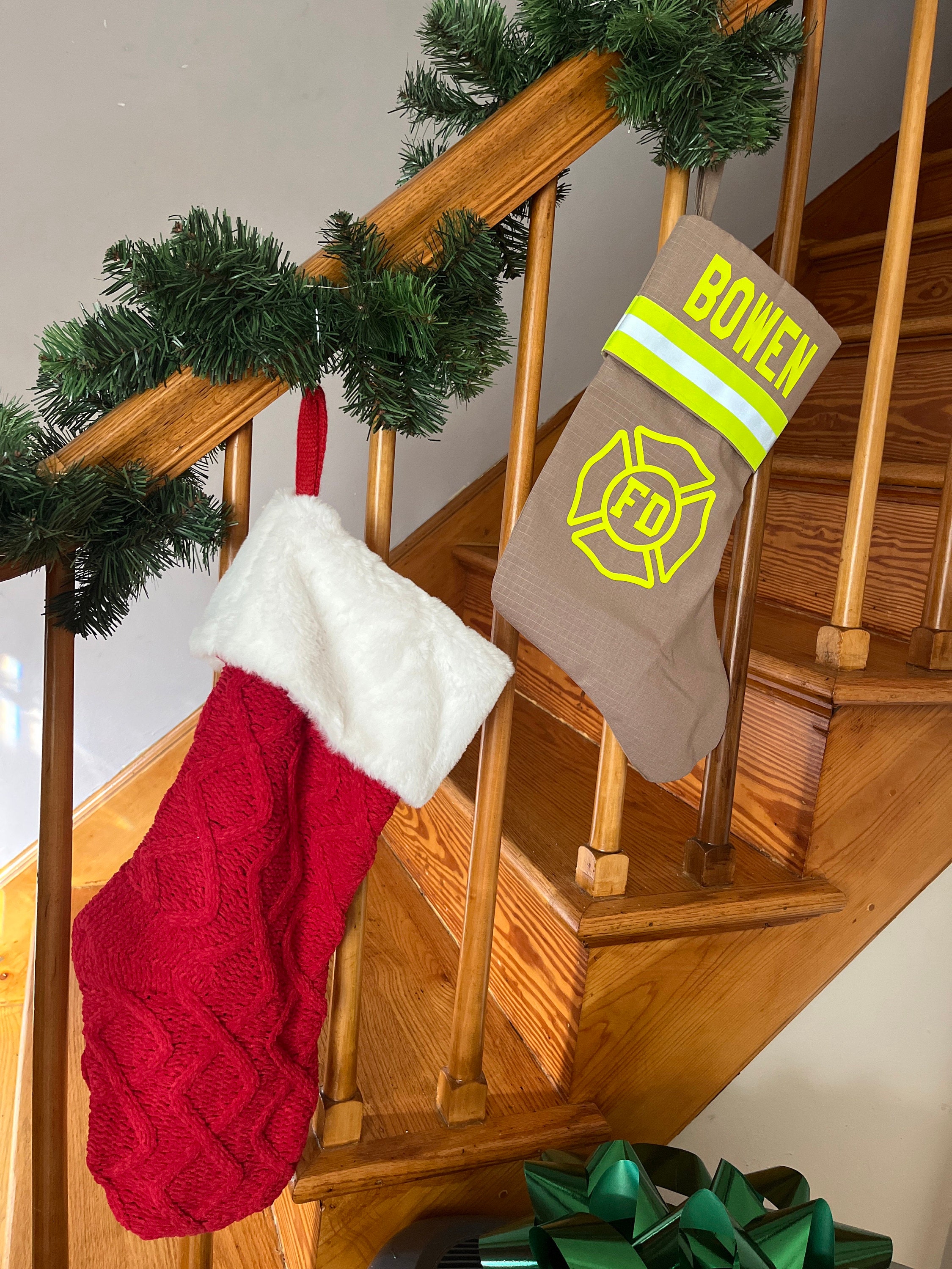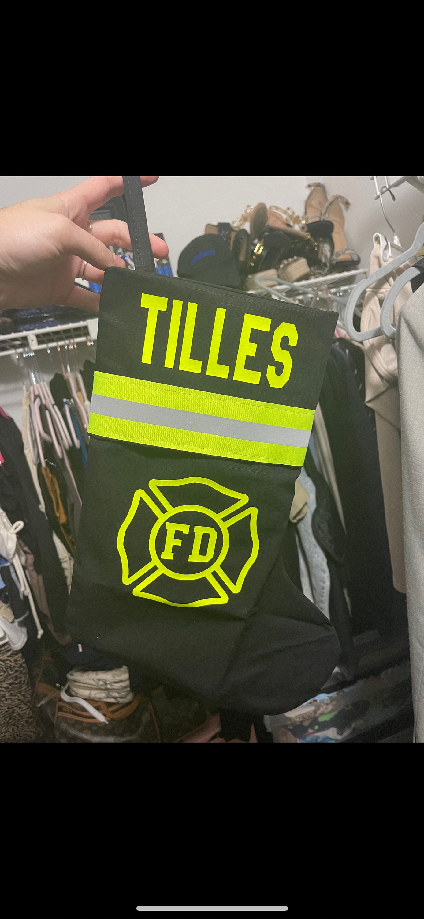 This Firefighter Christmas stocking is perfect for any firefighter. Wonderful firefighter Christmas gift for your firefighter.
