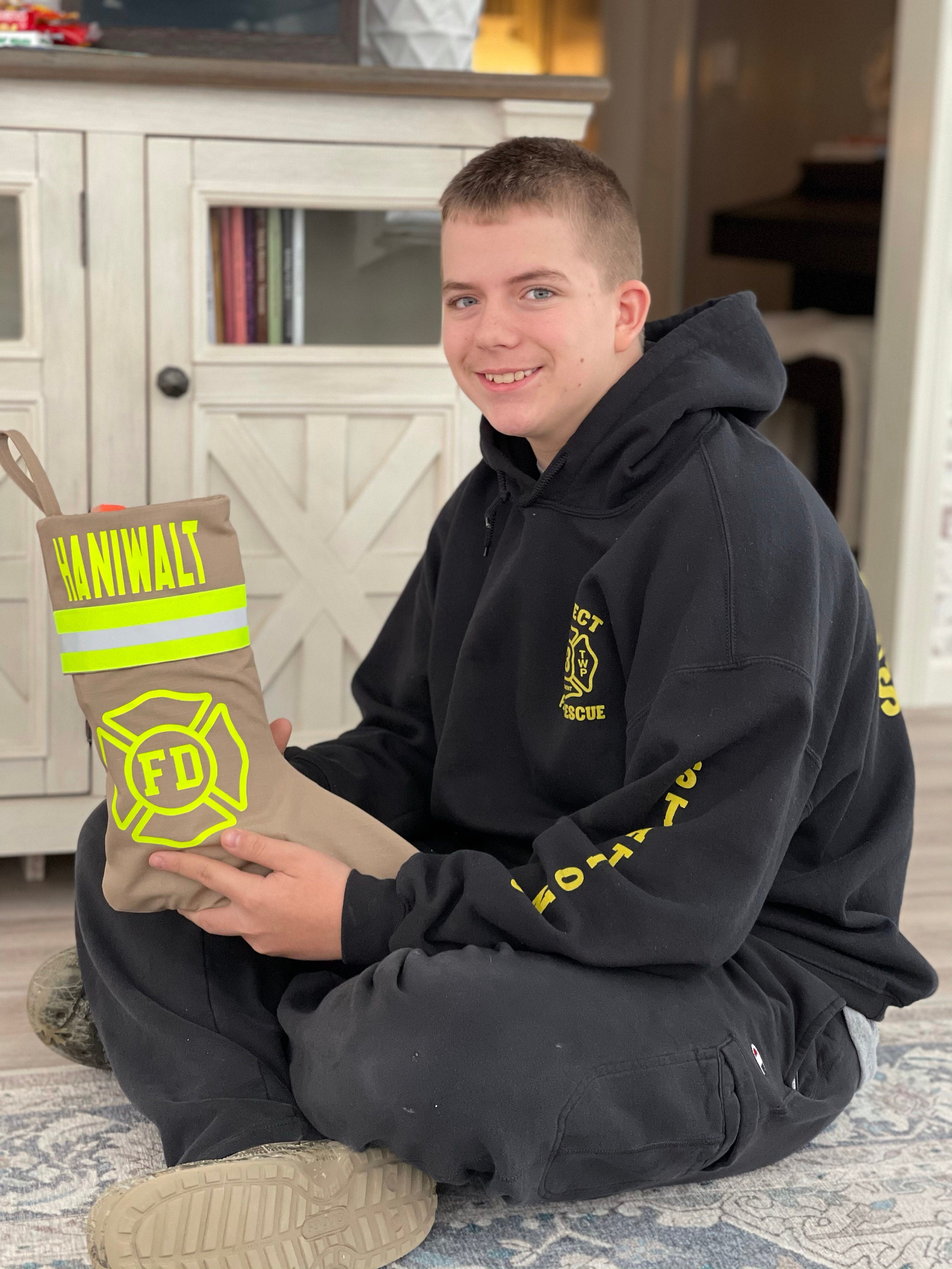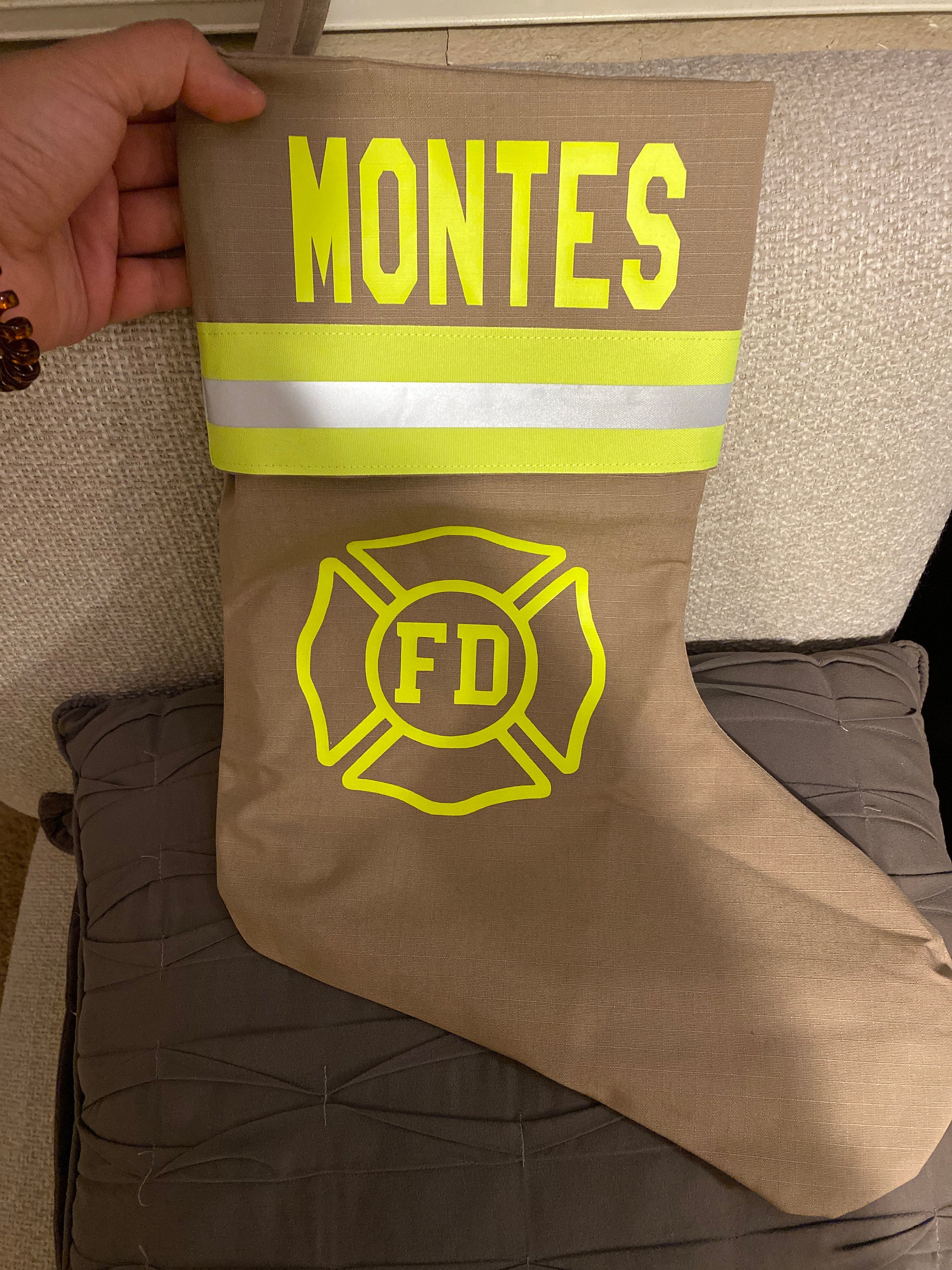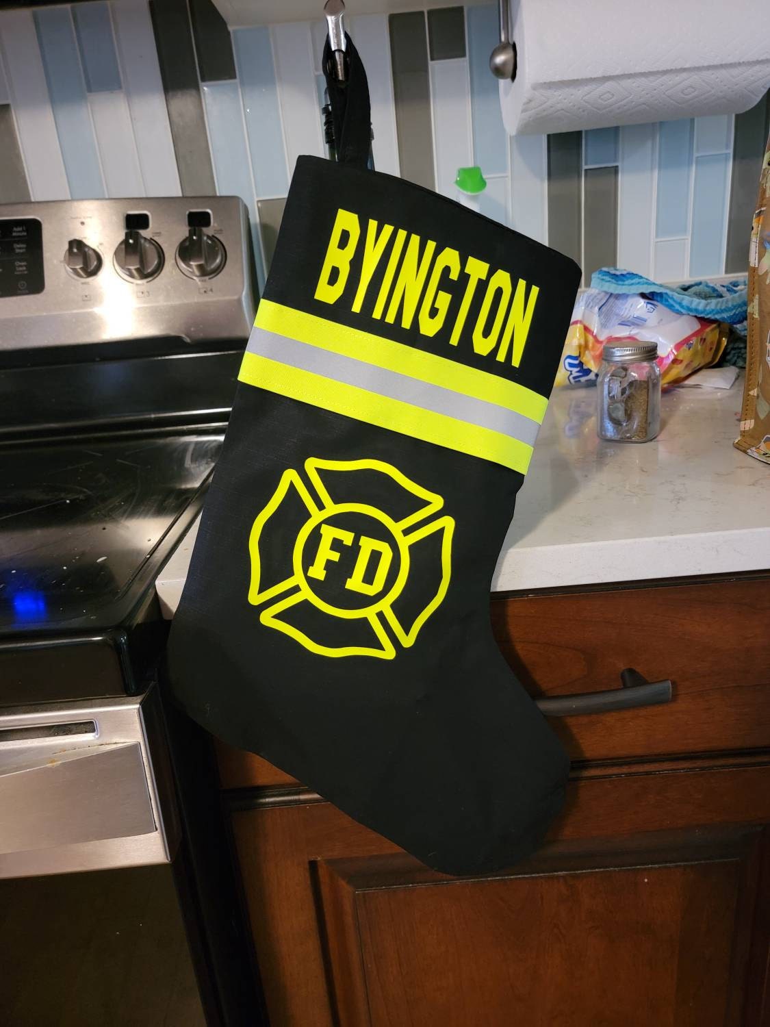 This Firefighter Christmas stocking is perfect for any firefighter. Wonderful firefighter Christmas gift for your firefighter.