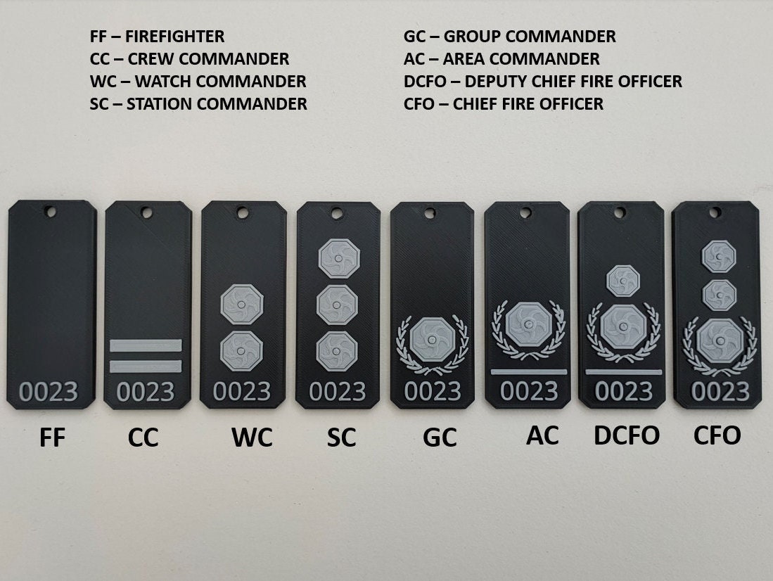 - These striking key rings/ bag tags are based on Firefighter to Chief Fire Officer Epaulettes.