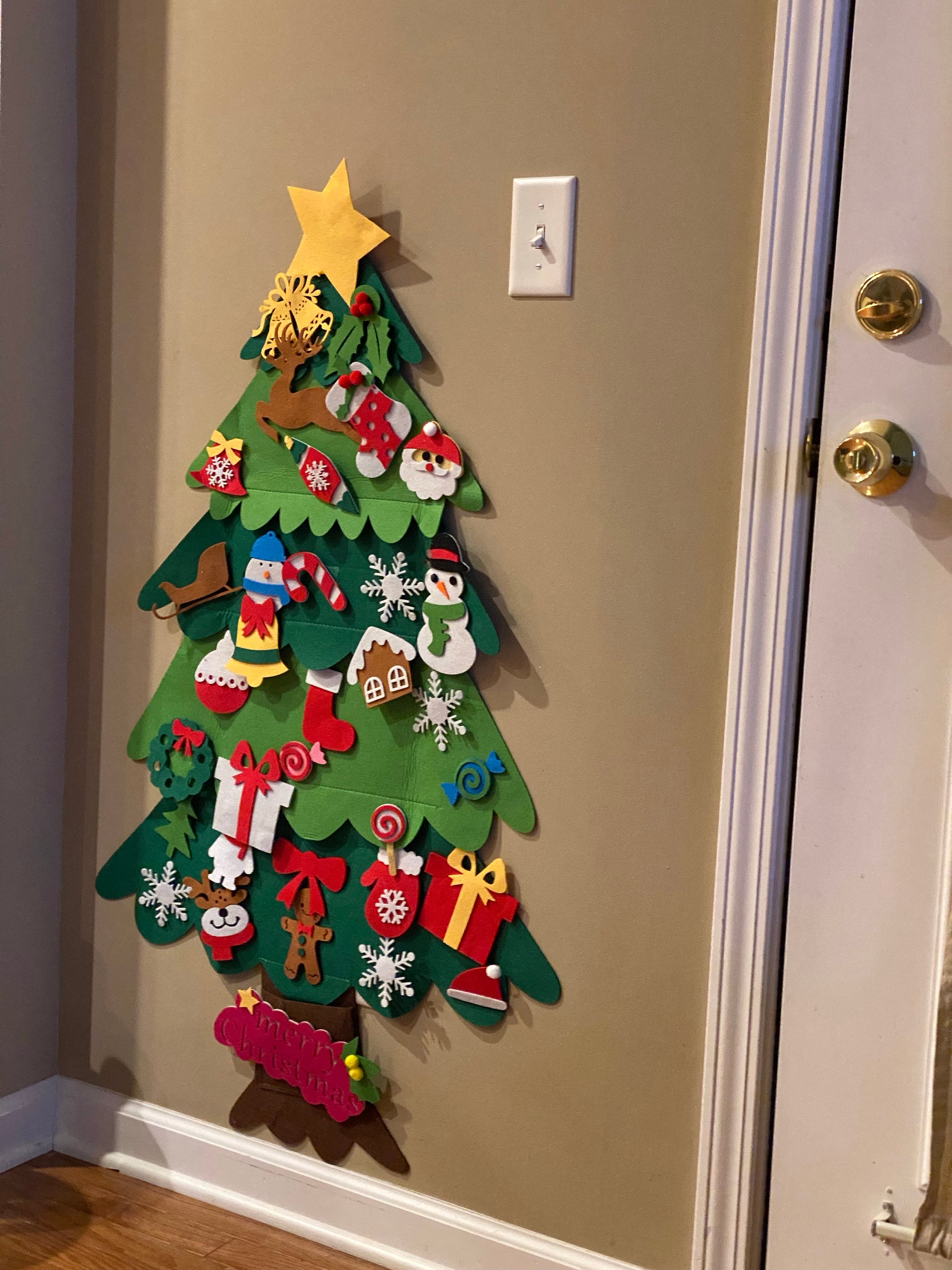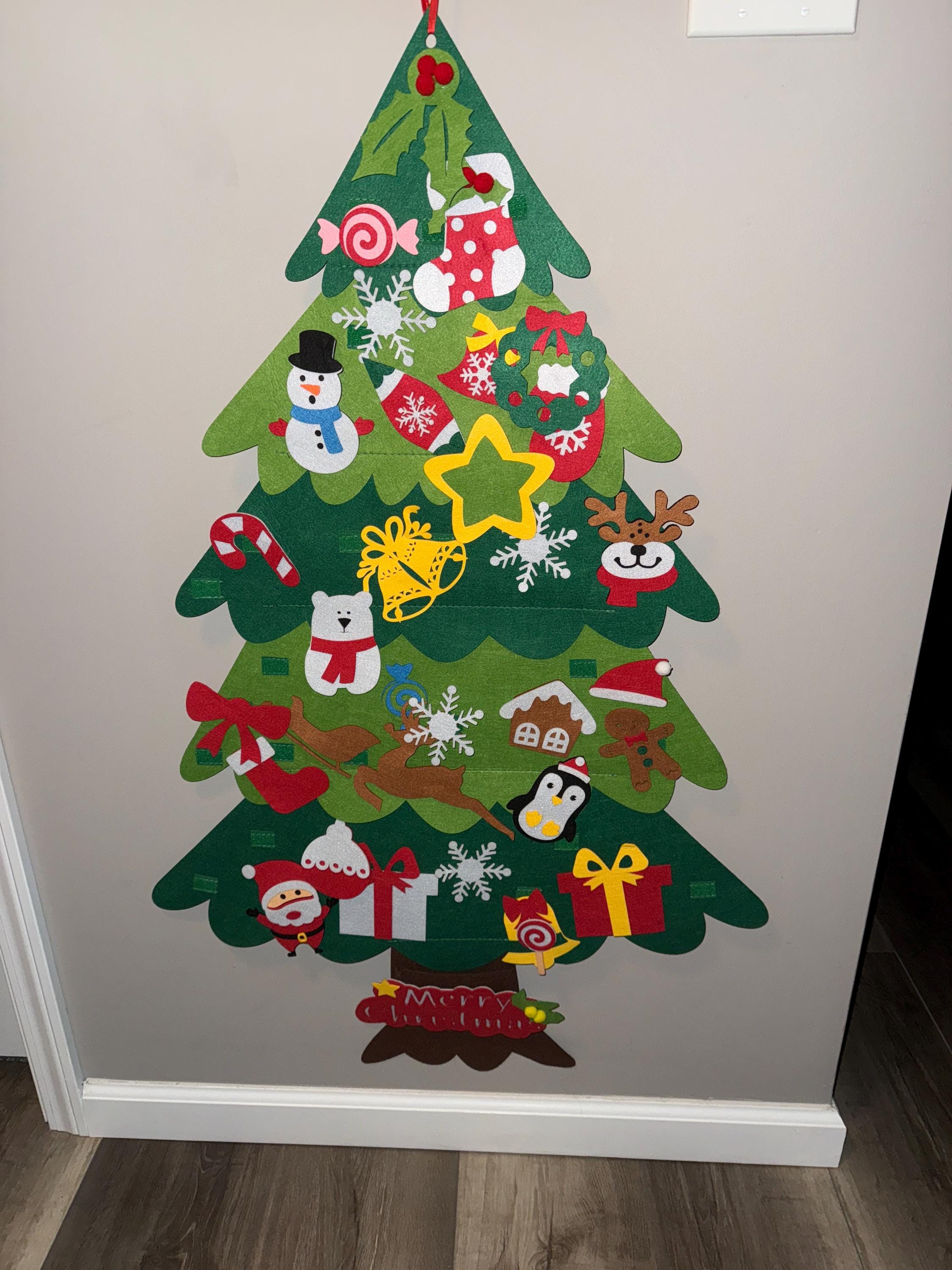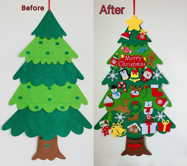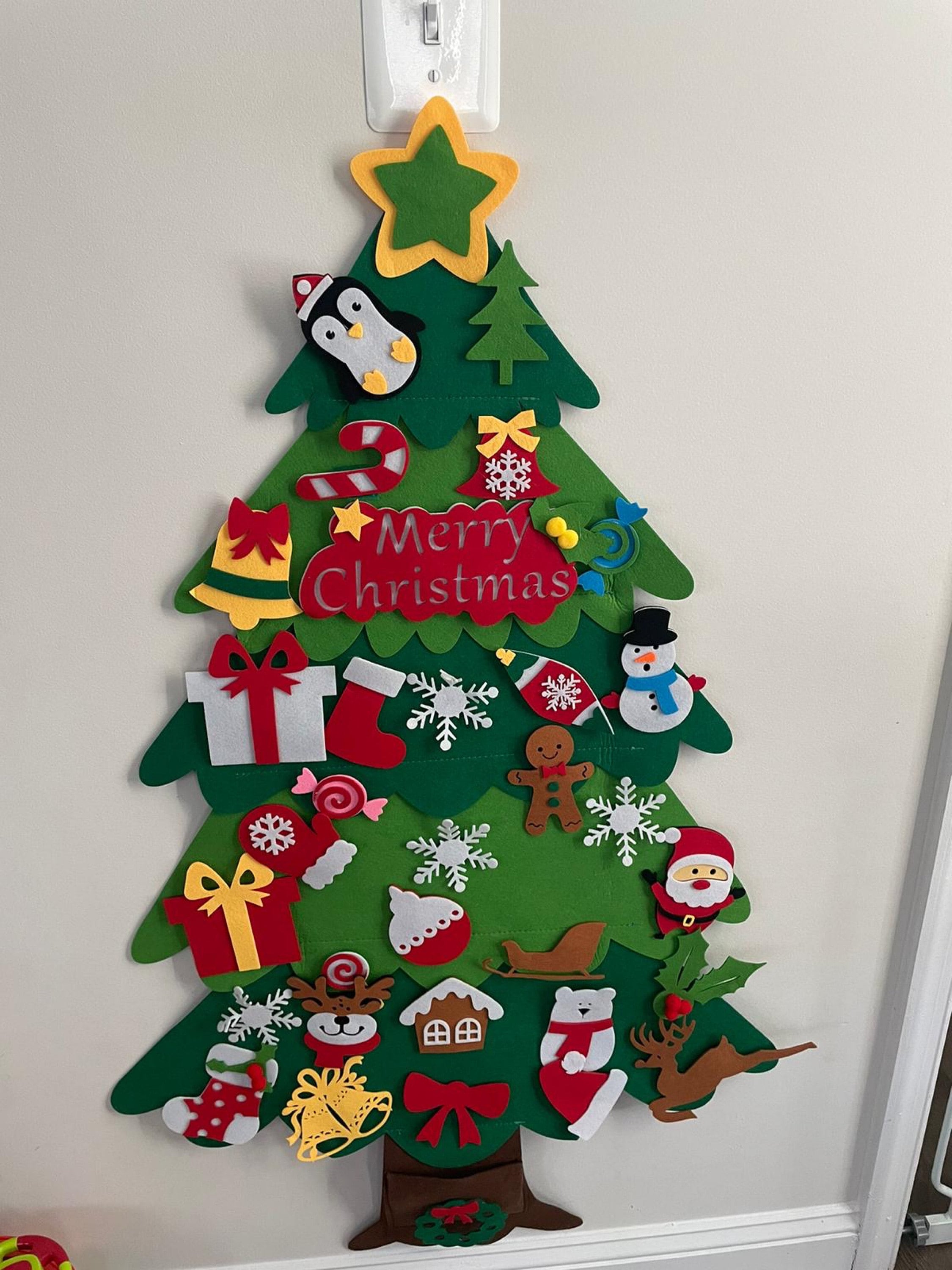 - Interactive Design: This felt Christmas tree is designed for kids to decorate, providing a creative and engaging holiday activity.