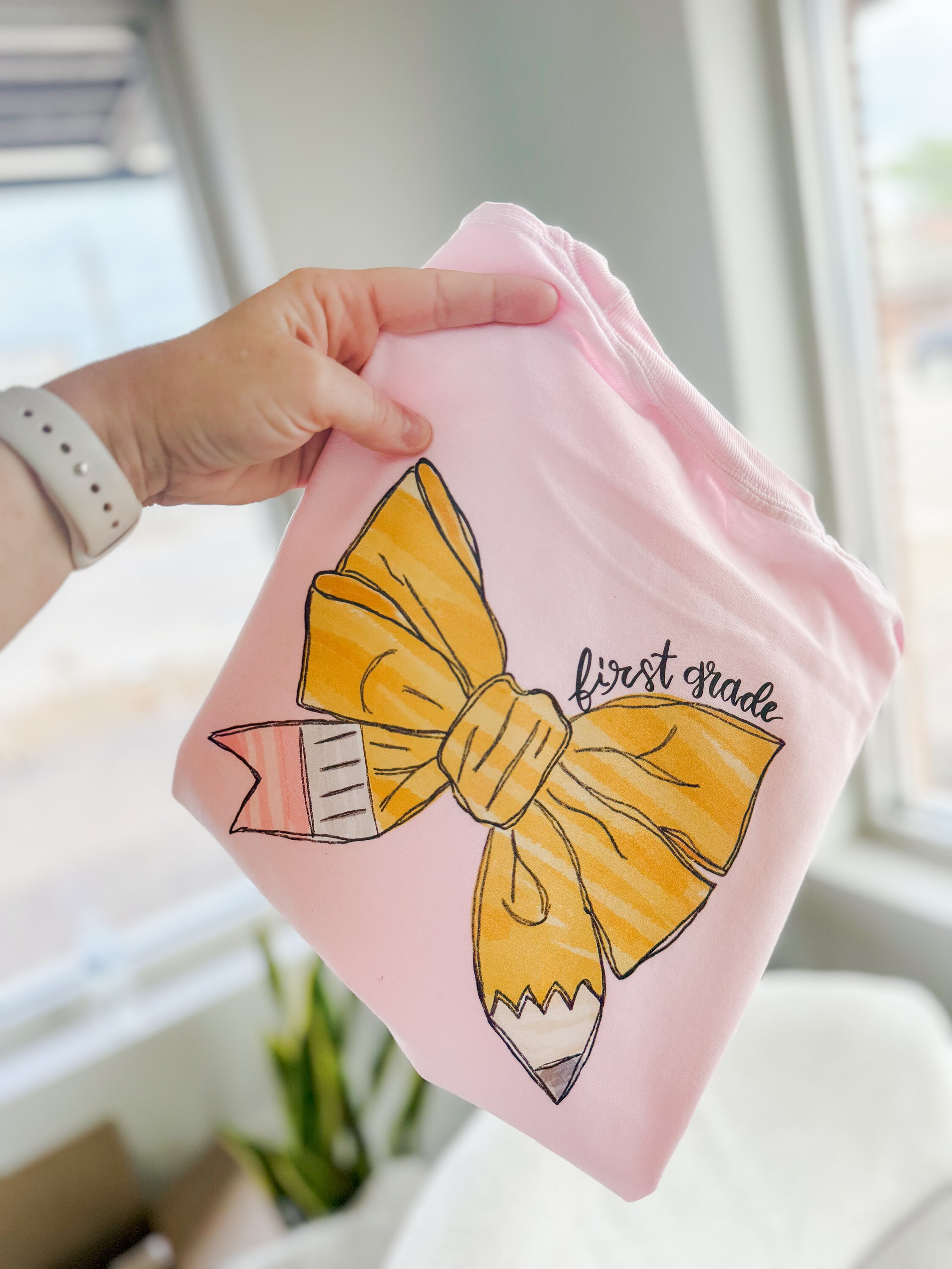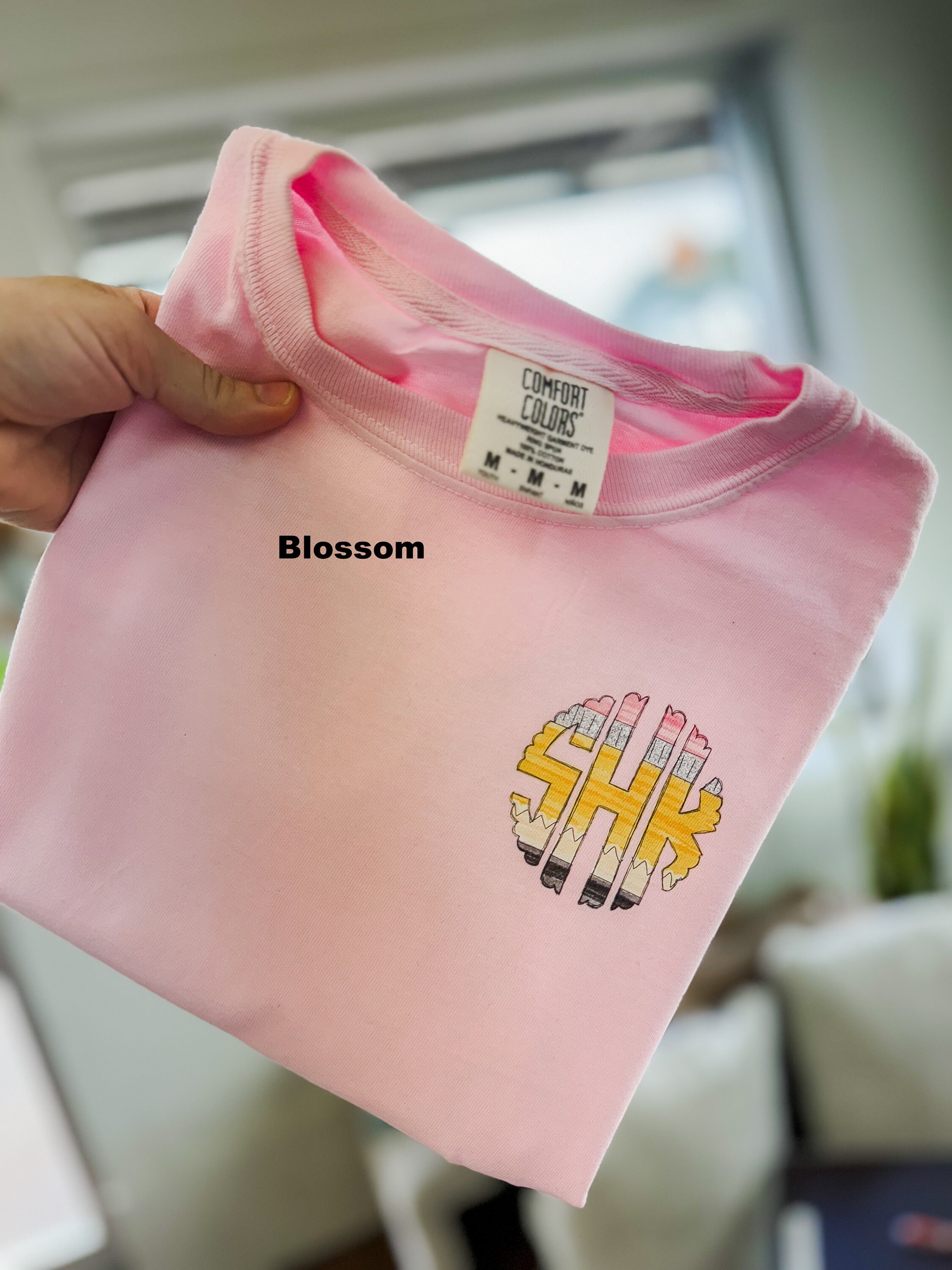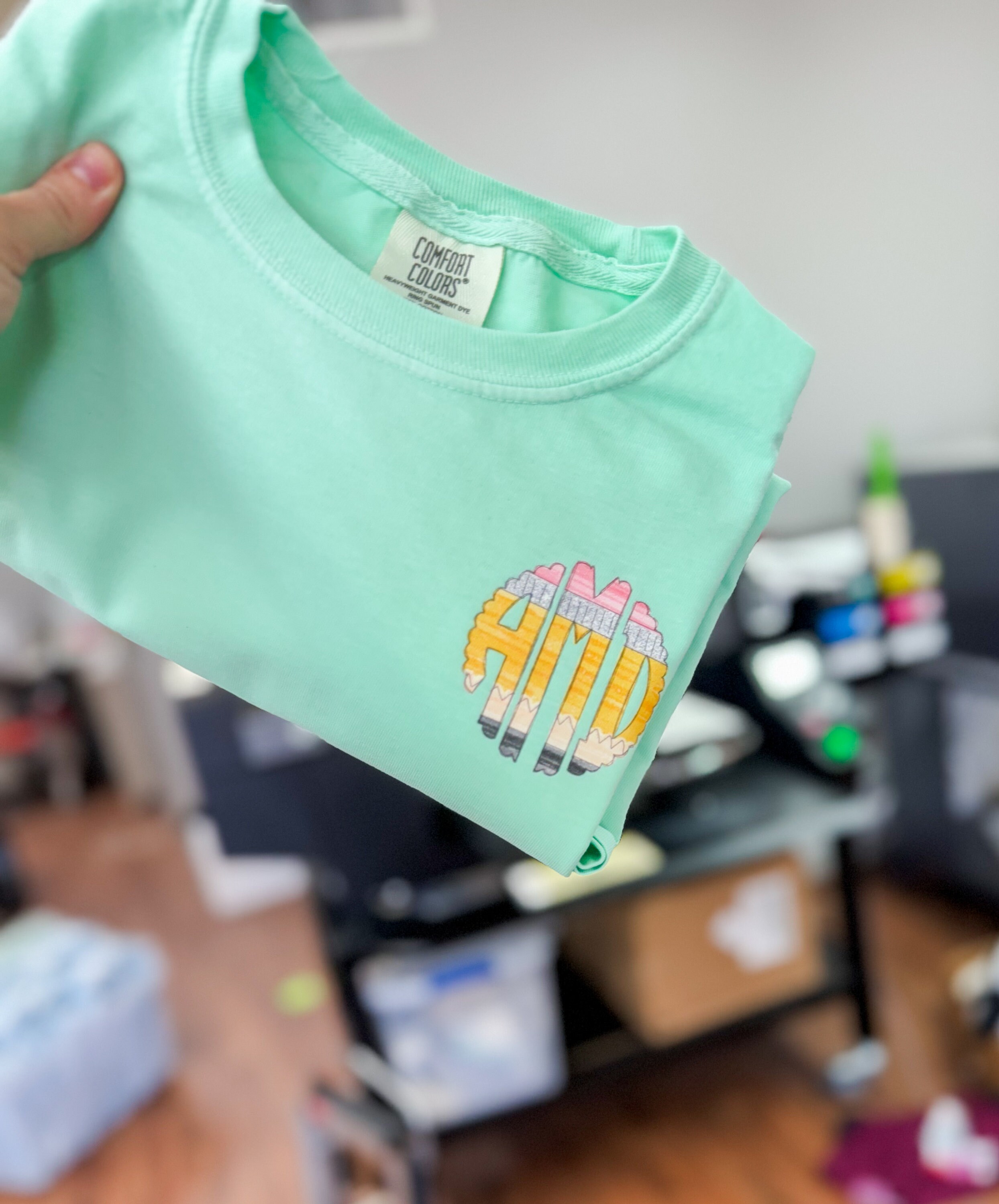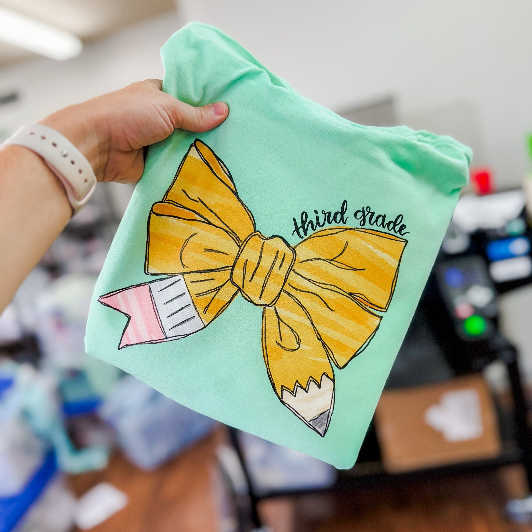 Customize your school shirt with grade and monogram! Printed with our brand new Direct-to-garment technology, our t-shirts will last you years of washes without any cracking or peeling.