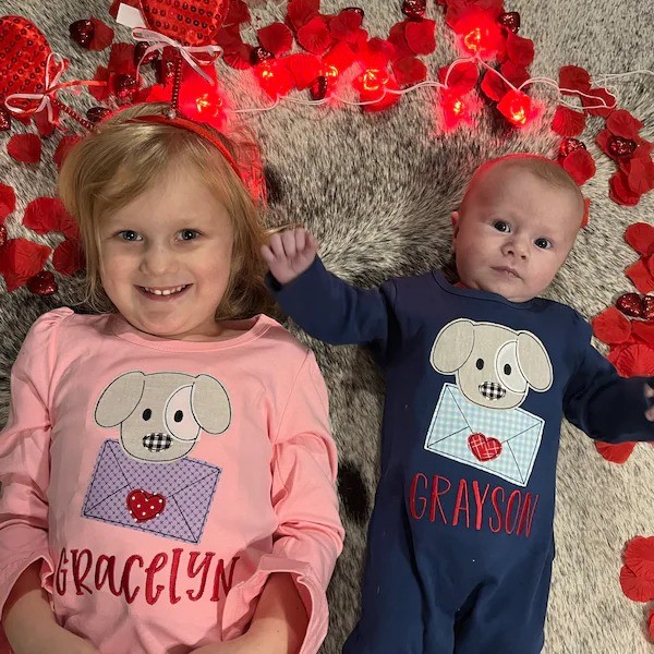 This top is perfect for your little one for Valentines day! Made from 100% cotton with a soft covering on the inside to prevent embroidery area from being scratchy!