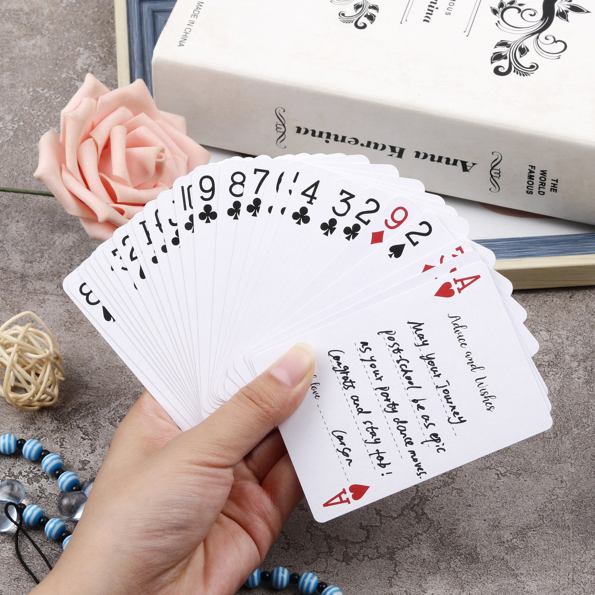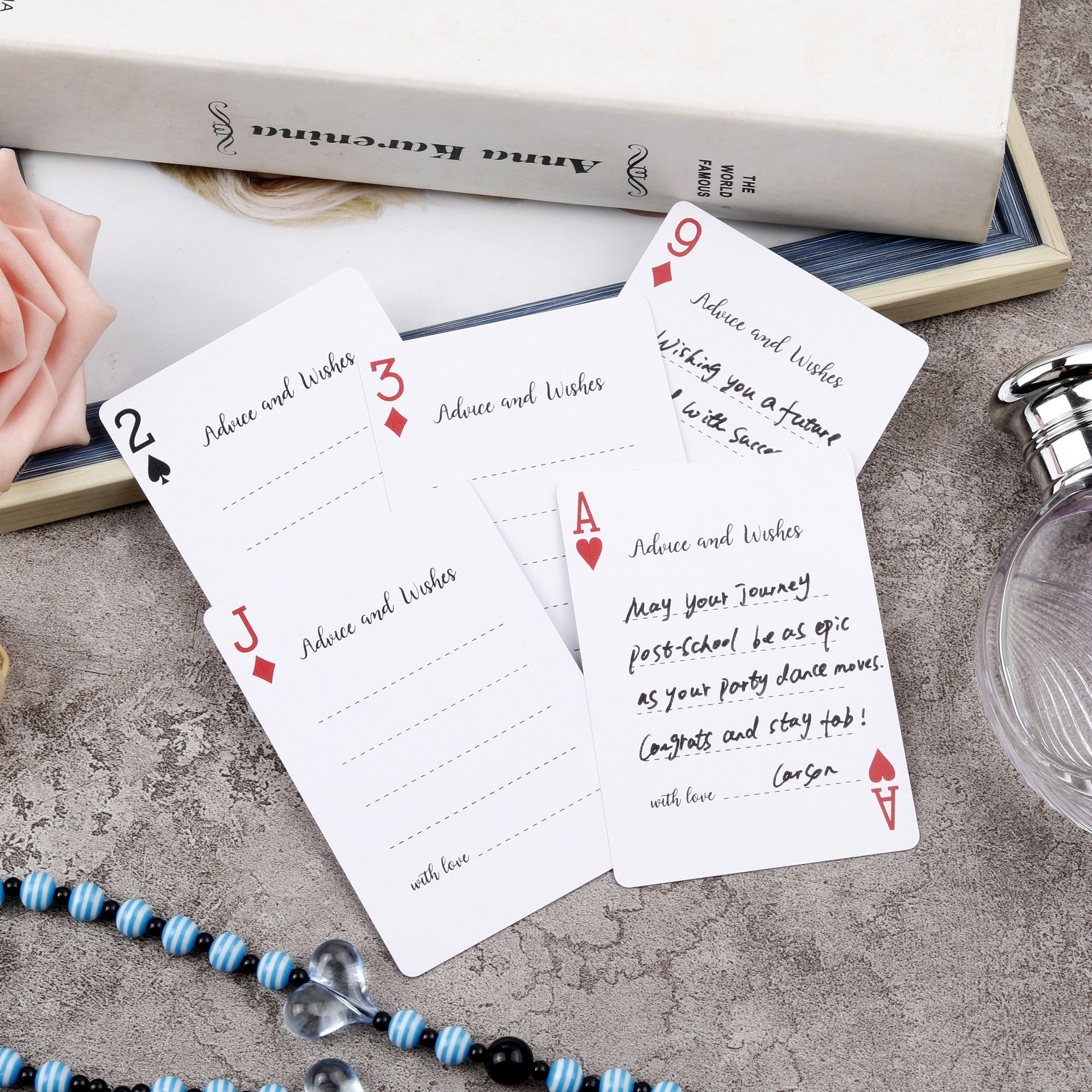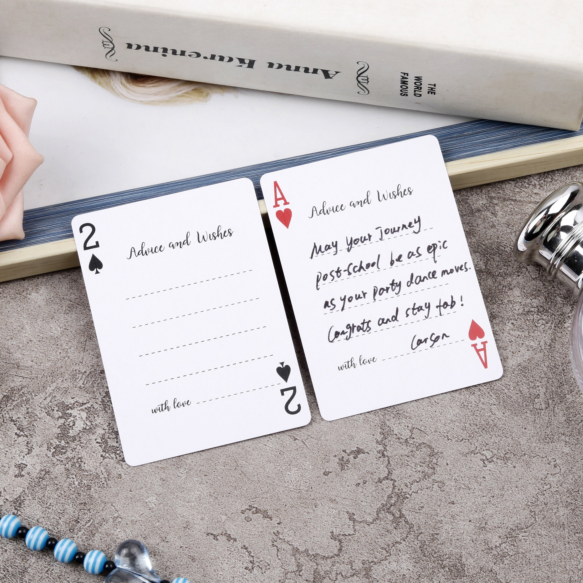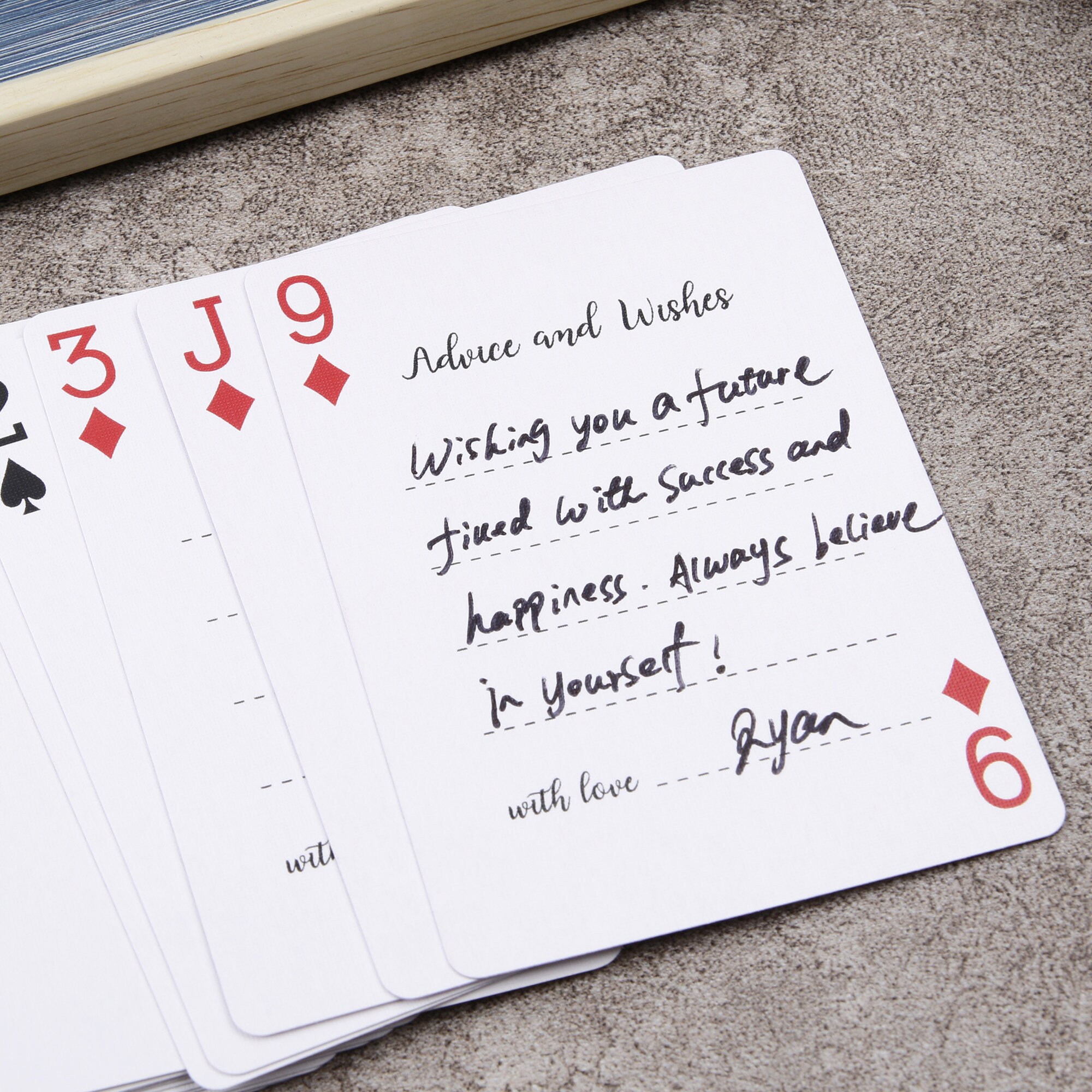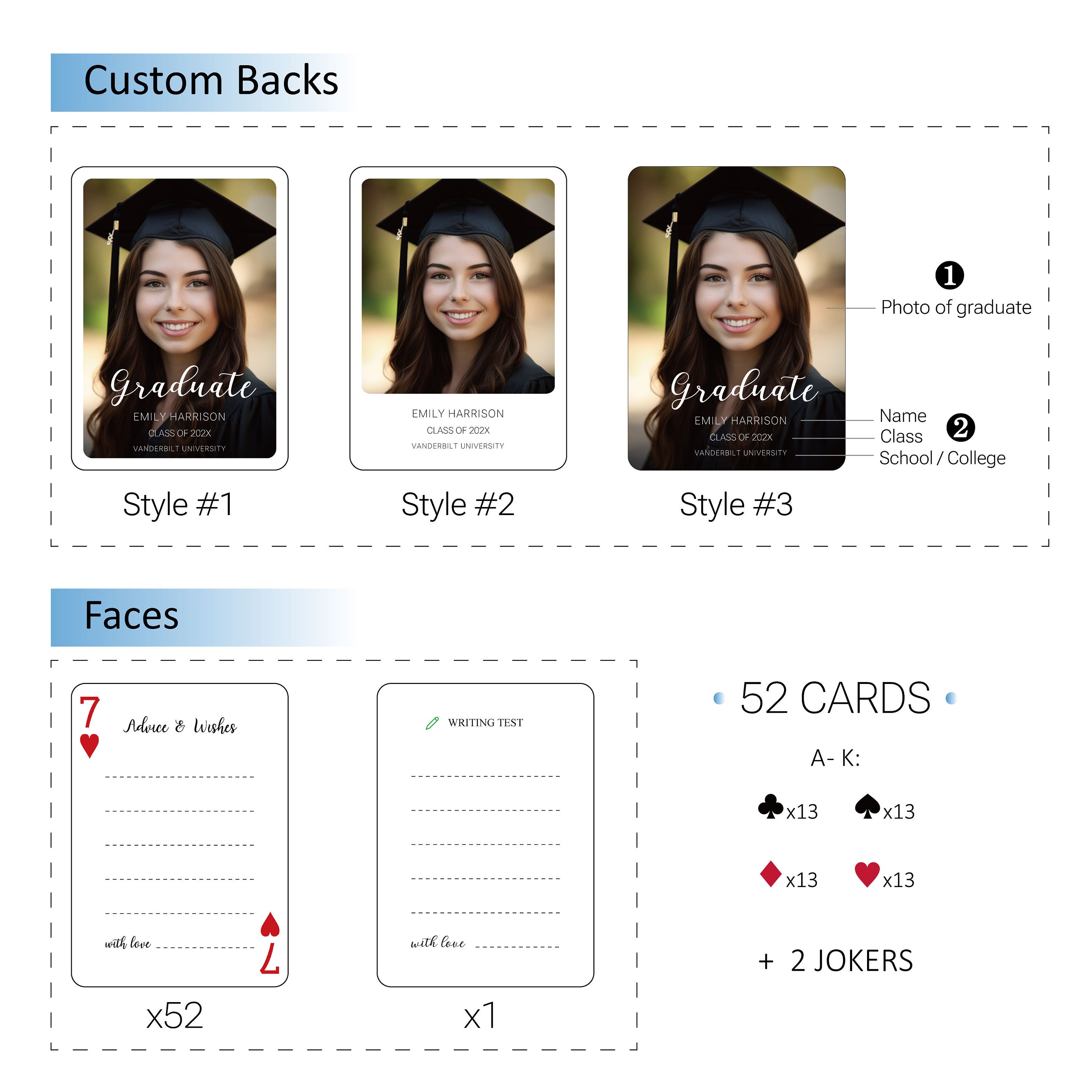 Guest Book Alternative - These personalized poker decks are designed to be a unique twist on traditional guest books. The back of each card features your stunning graduate photo, while the face / front with handwriting lines and diagonal suit symbols.
